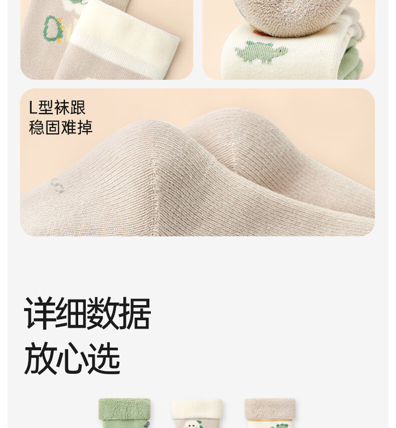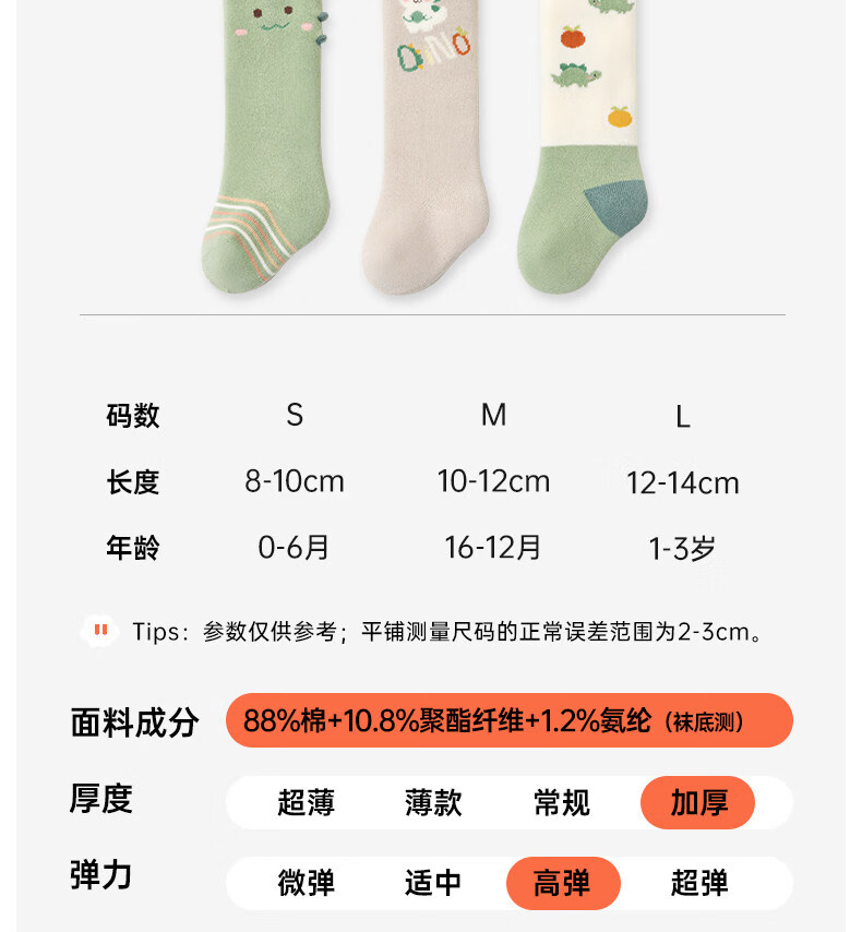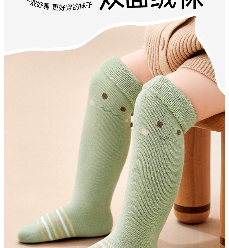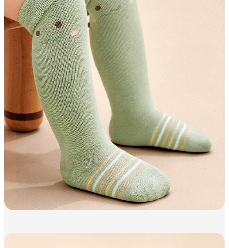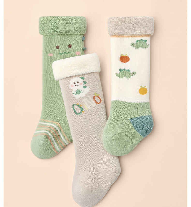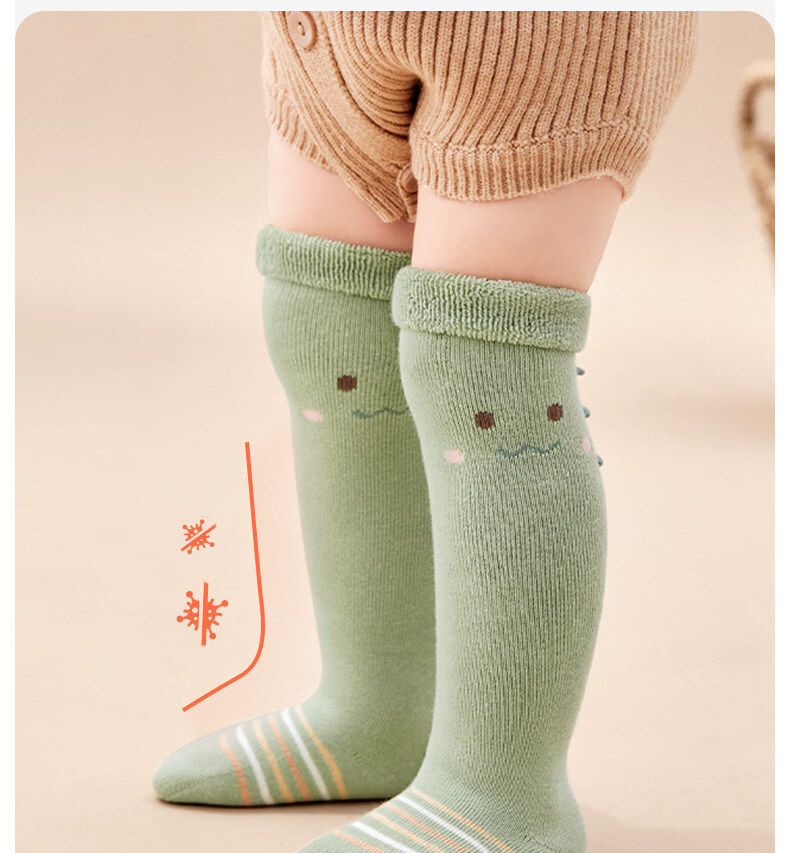 Cotton baby socks, autumn and winter cute thickened terry over-the-knee socks, warm cartoon 3 pairs of calf socks for babies 0 to 3 months old B5058-Cute Crocodile-3 pairs of terry socks over the knee, 1-3 years old - recommended foot length 12-14cm