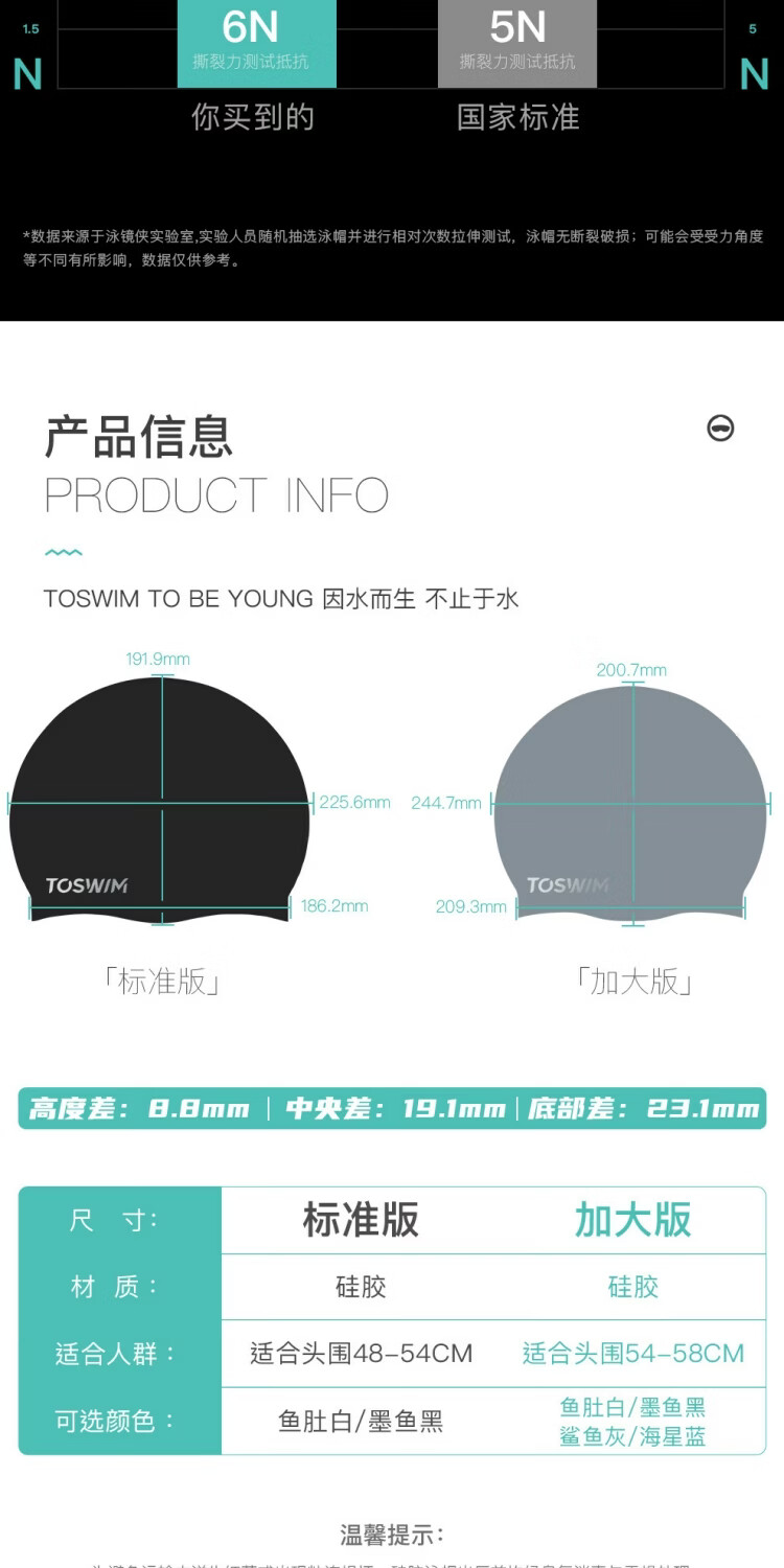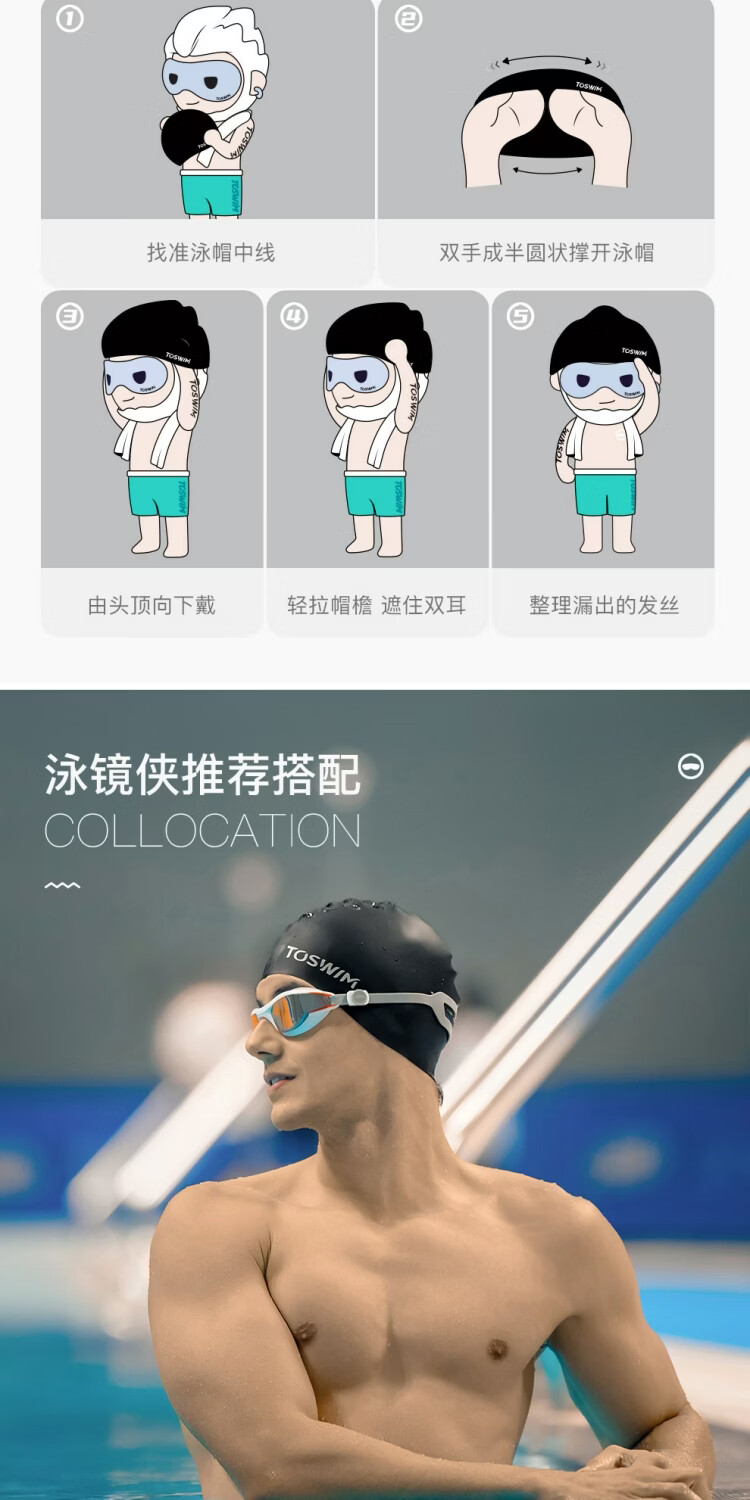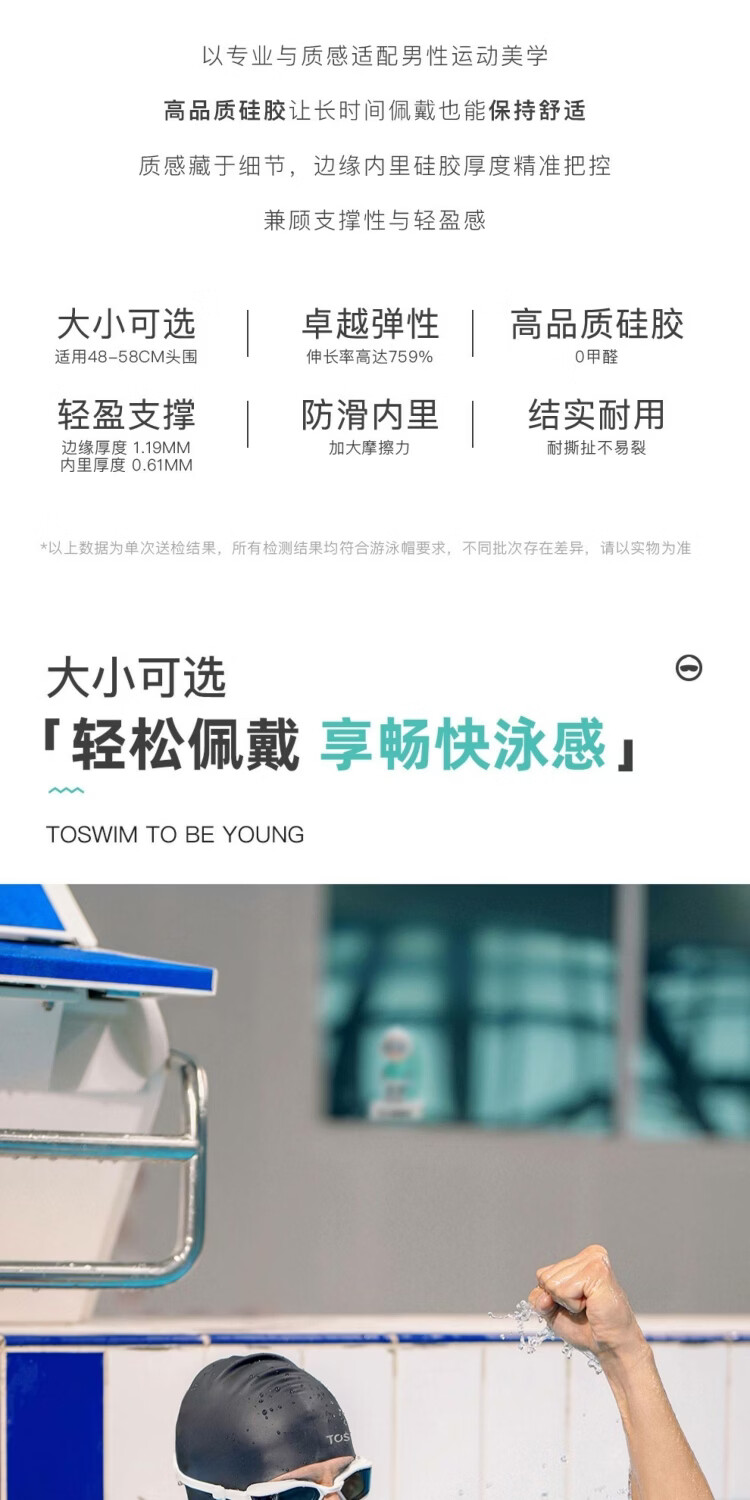 TOSWIM Tuosheng swimming cap for men and women, non-stretching for long hair, increased waterproof, professional large head circumference and ear protection silicone swimming cap, cuttlefish black, enlarged version, suitable for 54-60CM, can protect ears