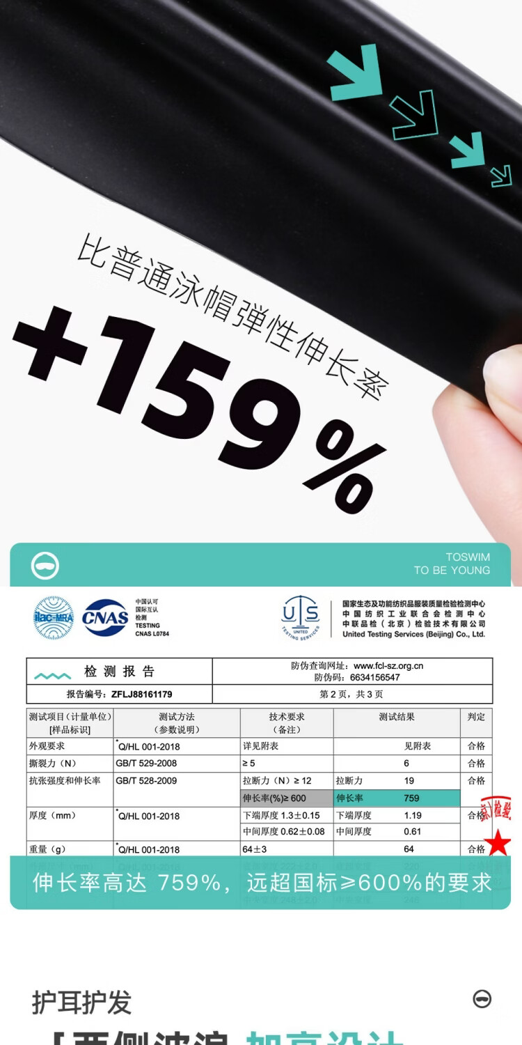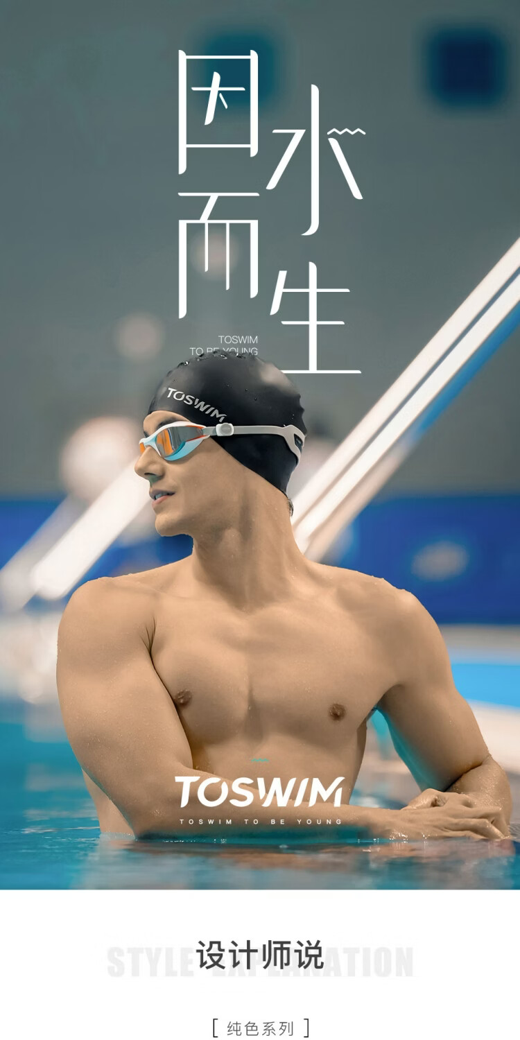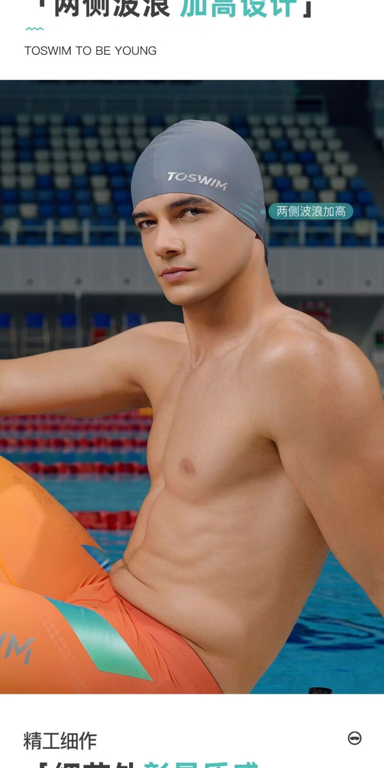 TOSWIM Tuosheng swimming cap for men and women, non-stretching for long hair, increased waterproof, professional large head circumference and ear protection silicone swimming cap, cuttlefish black, enlarged version, suitable for 54-60CM, can protect ears