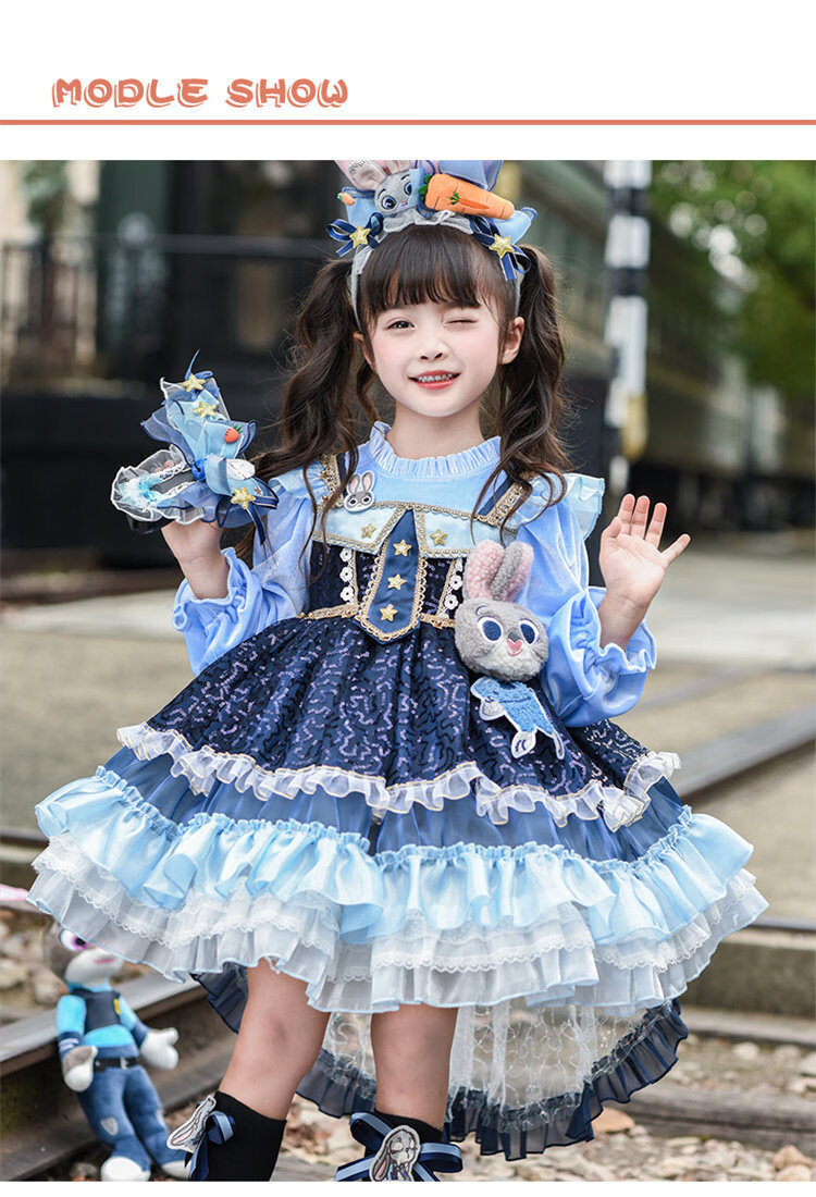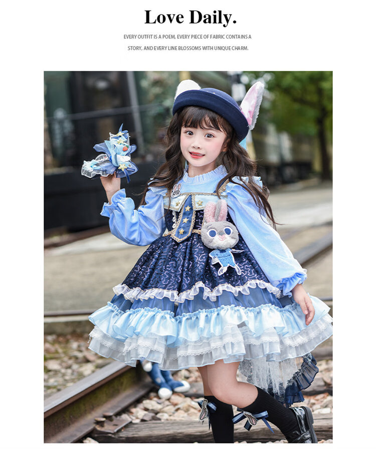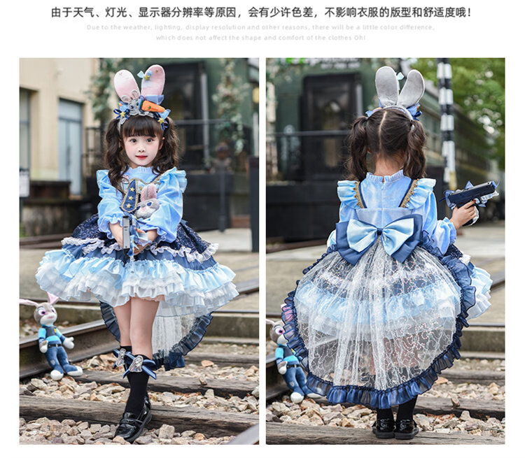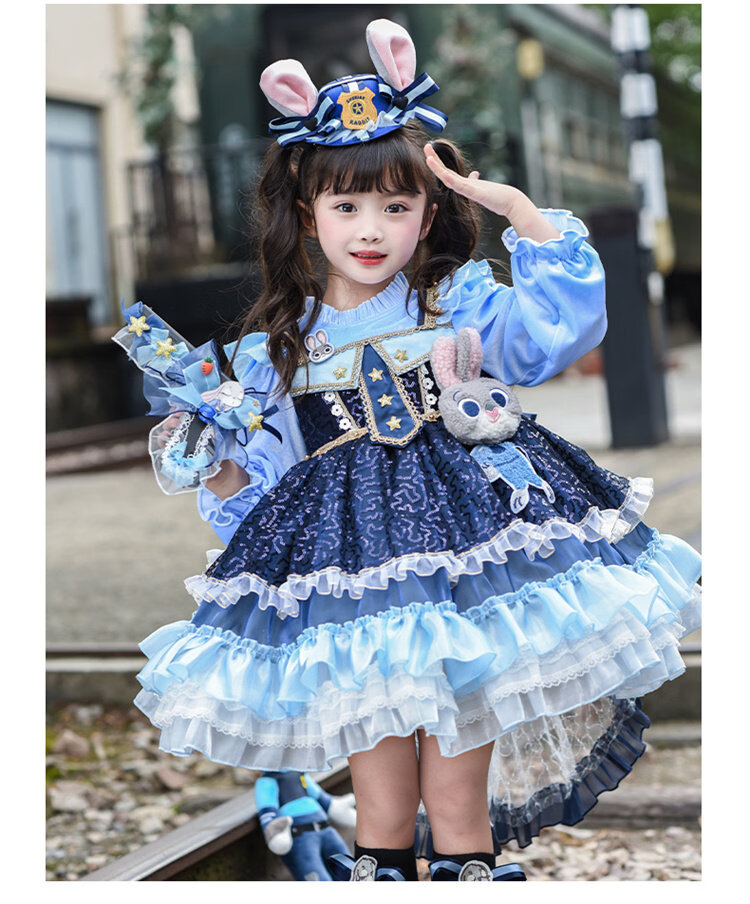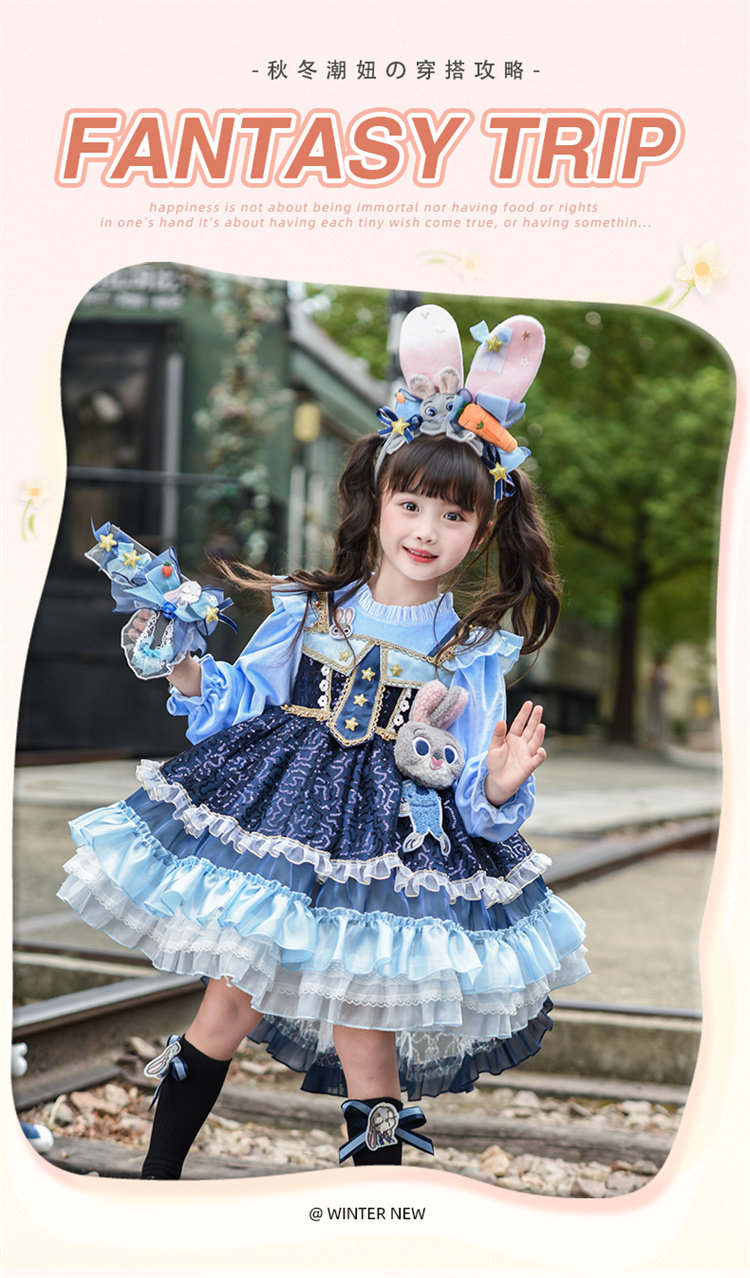 Chongyou Judy Rabbit Officer Dress Children's velvet winter girl's autumn and winter baby Lolita princess dress Rabbit pendant + headband + socks + panniers + rabbit velvet skirt Ready in stock with drag 100 cm