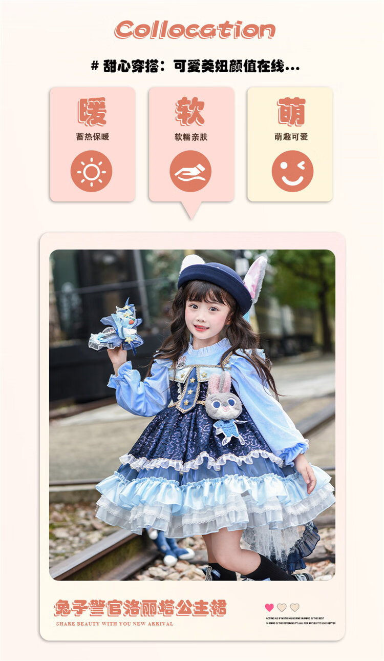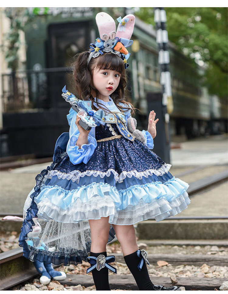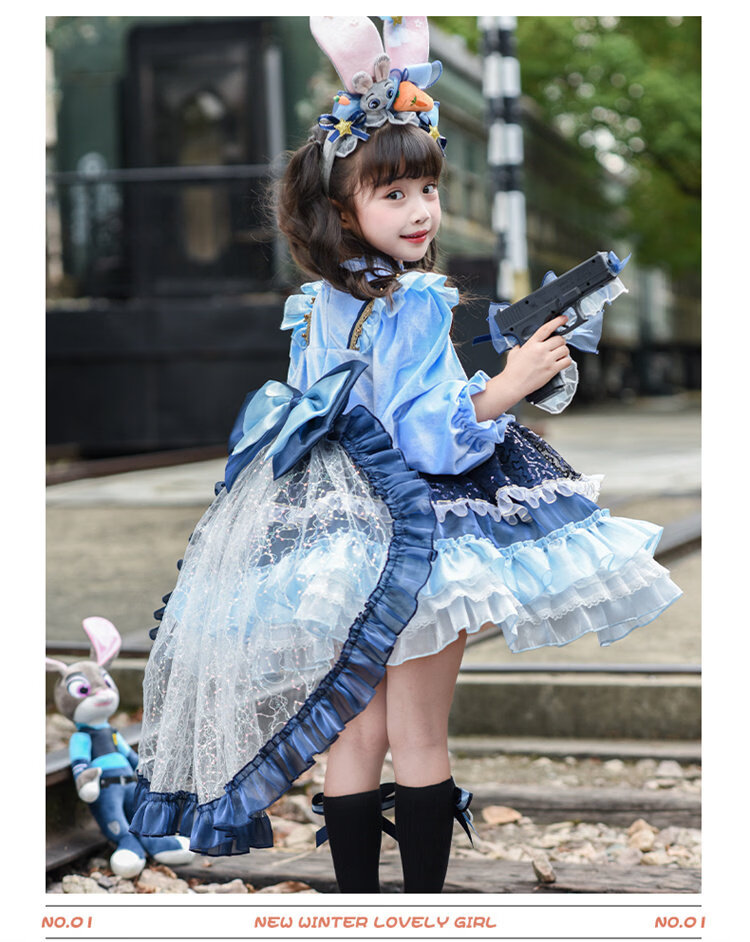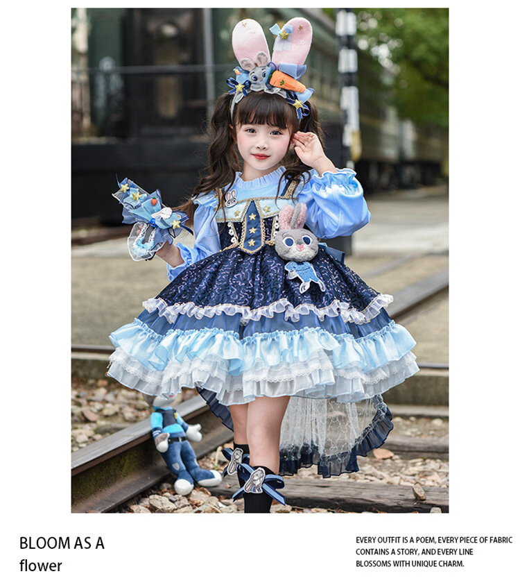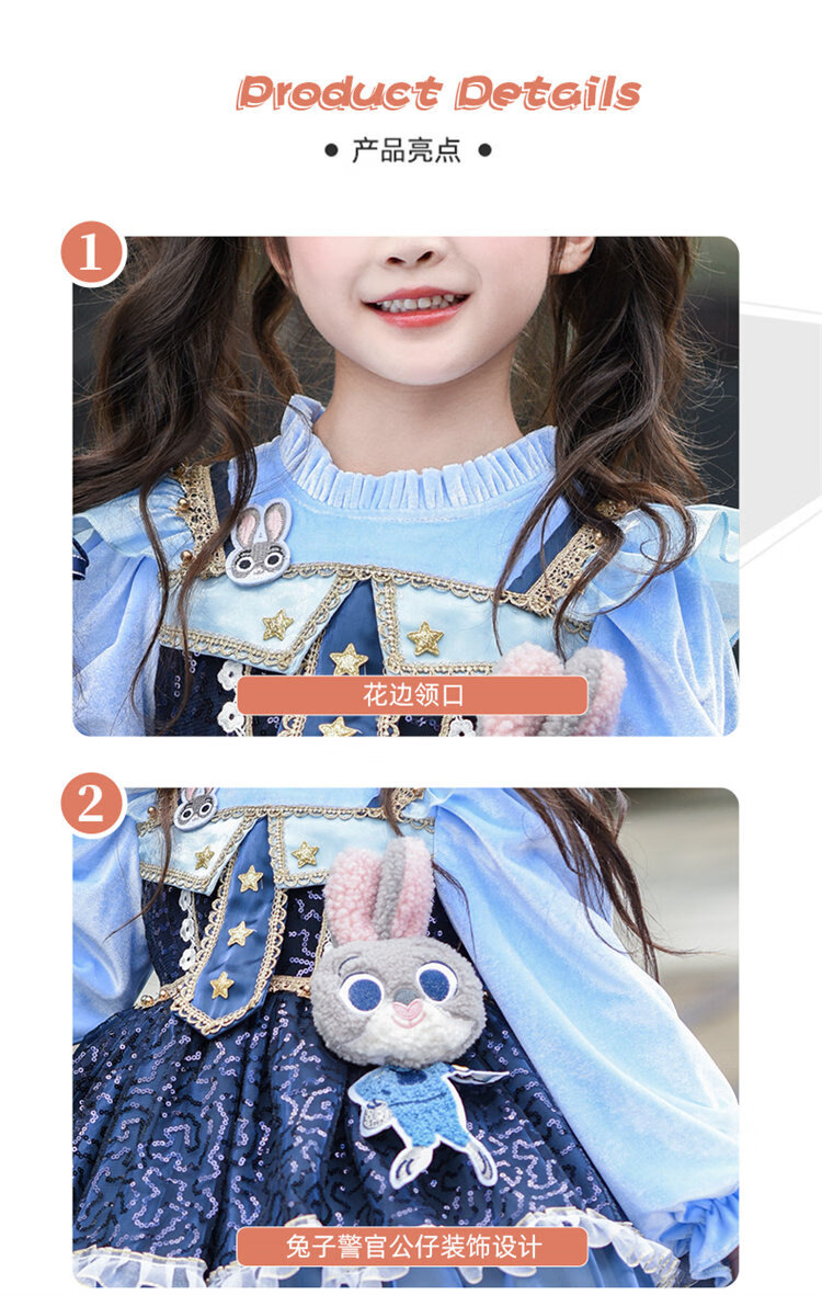 Chongyou Judy Rabbit Officer Dress Children's velvet winter girl's autumn and winter baby Lolita princess dress Rabbit pendant + headband + socks + panniers + rabbit velvet skirt Ready in stock with drag 100 cm