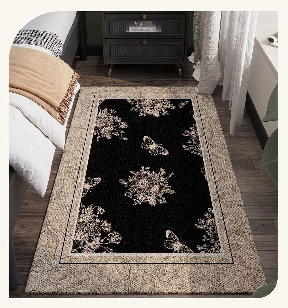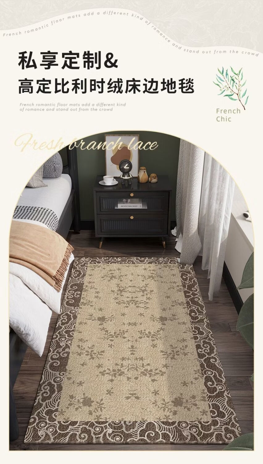 Fantasy bedroom bedside carpet retro style long blanket under the bed room non-slip floor mat household stain-resistant vacuum bed front mat 120x160cm upgraded Belgian velvet Muning