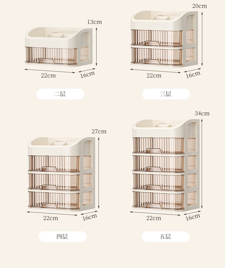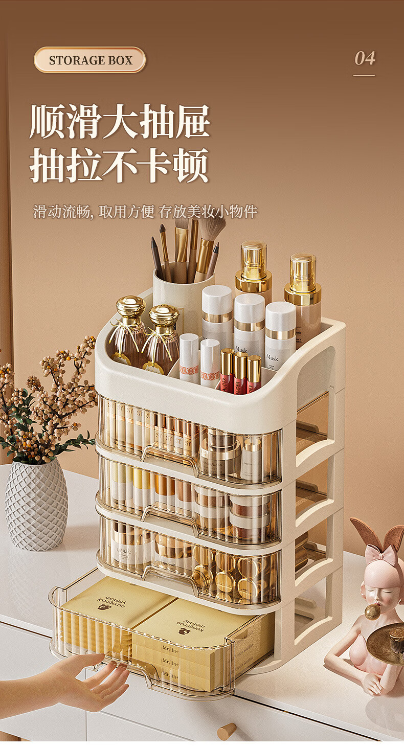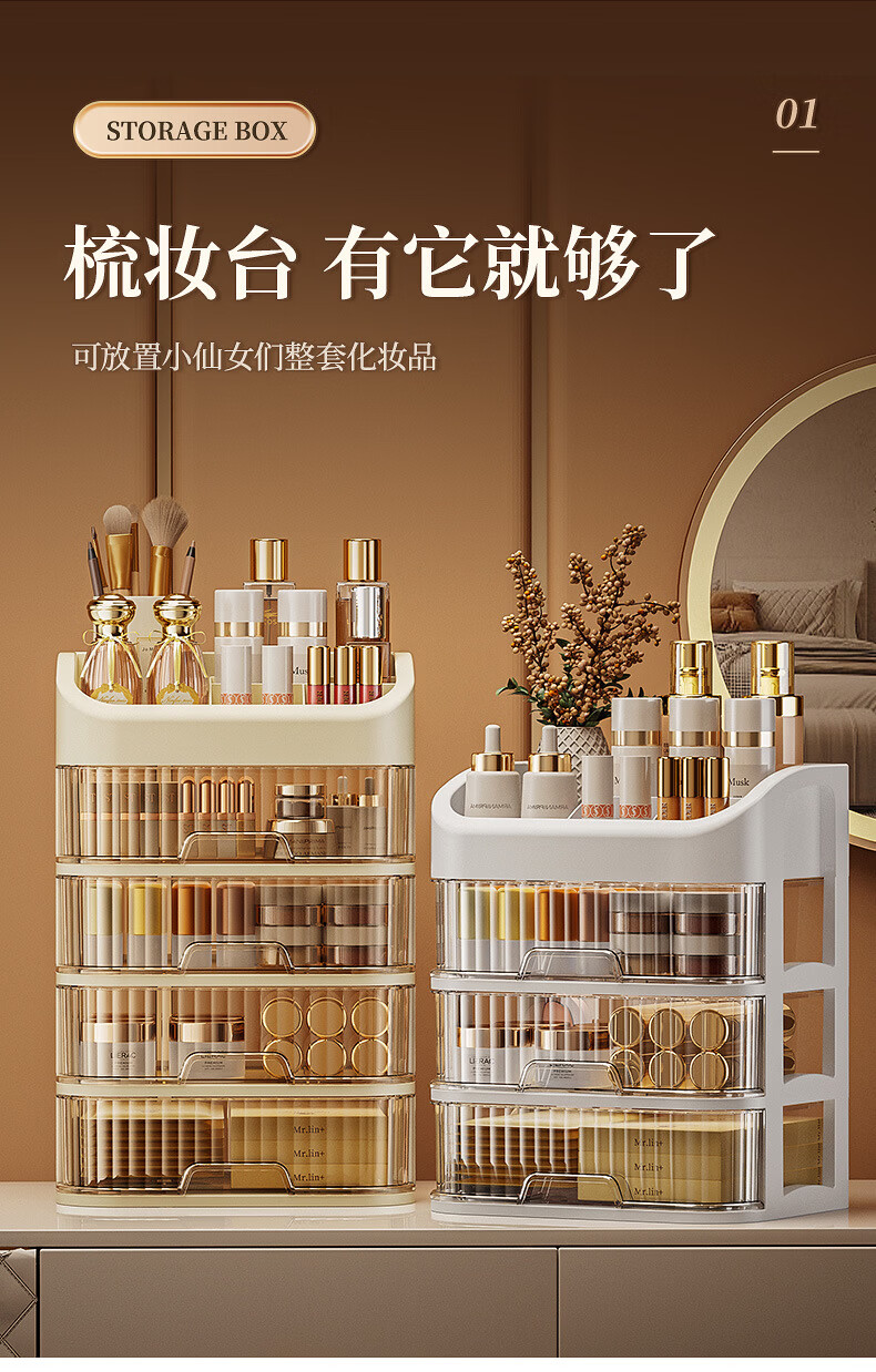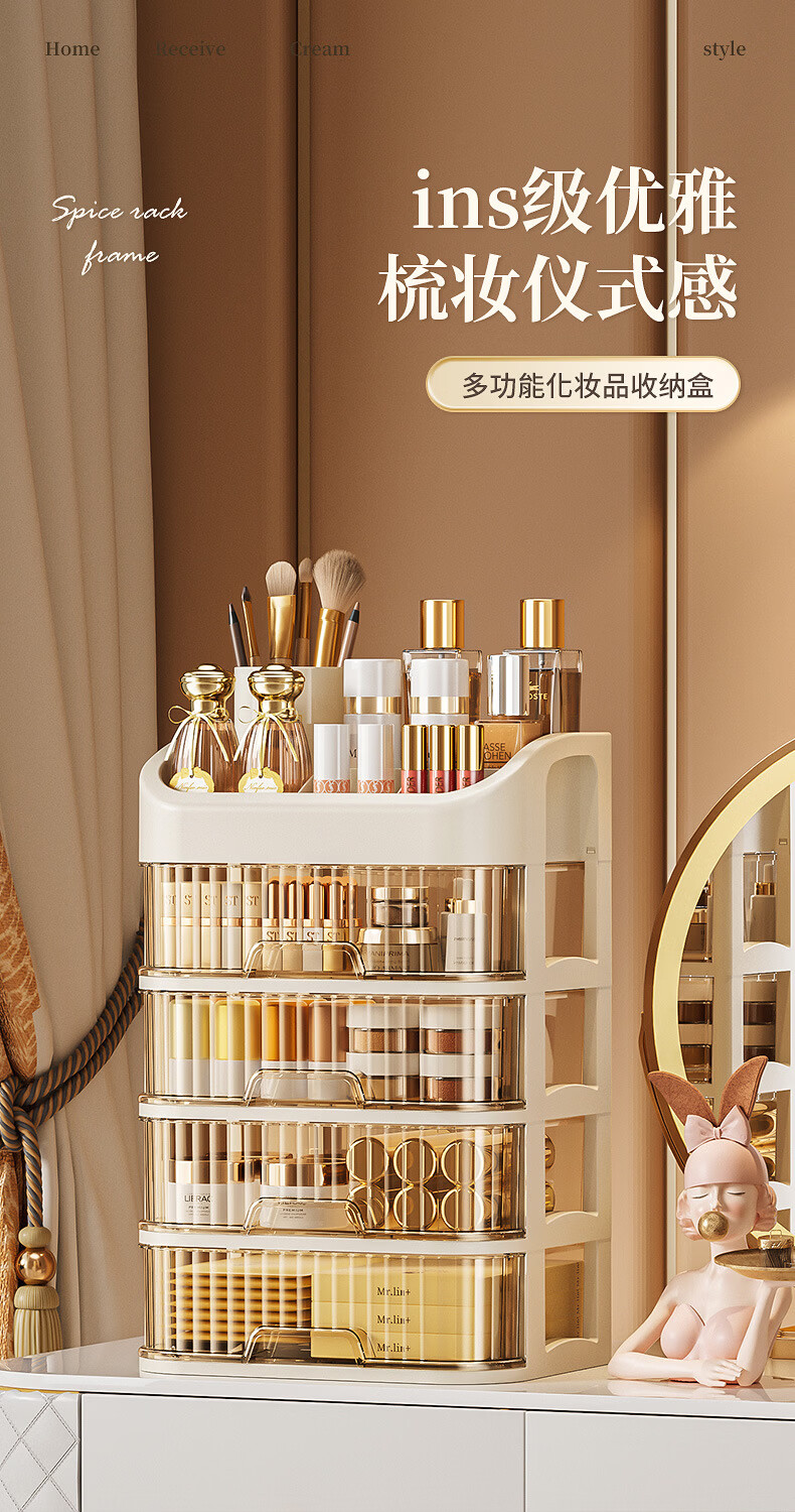 Strictly selected domestic products, light luxury cosmetics storage box, large capacity, dust-proof, skin care products, facial mask, lipstick, plastic comb, five-layer storage box (milk color)