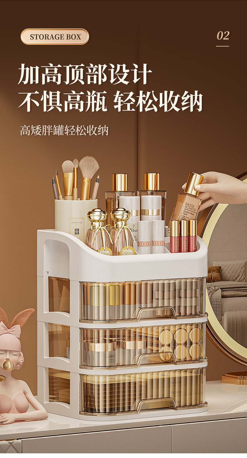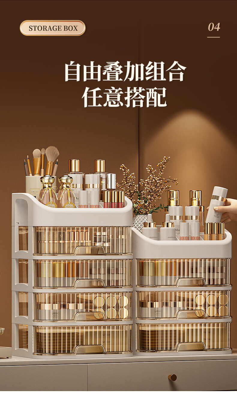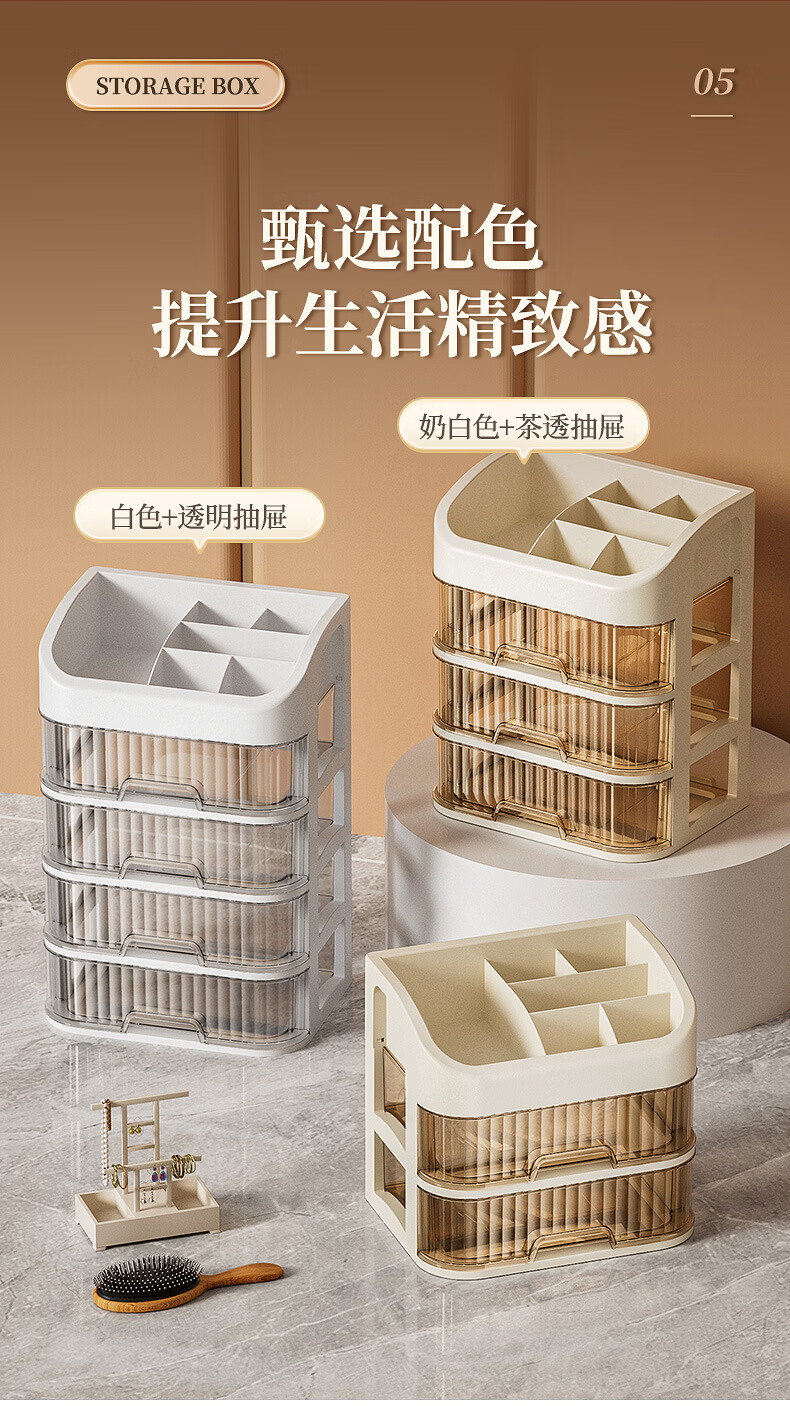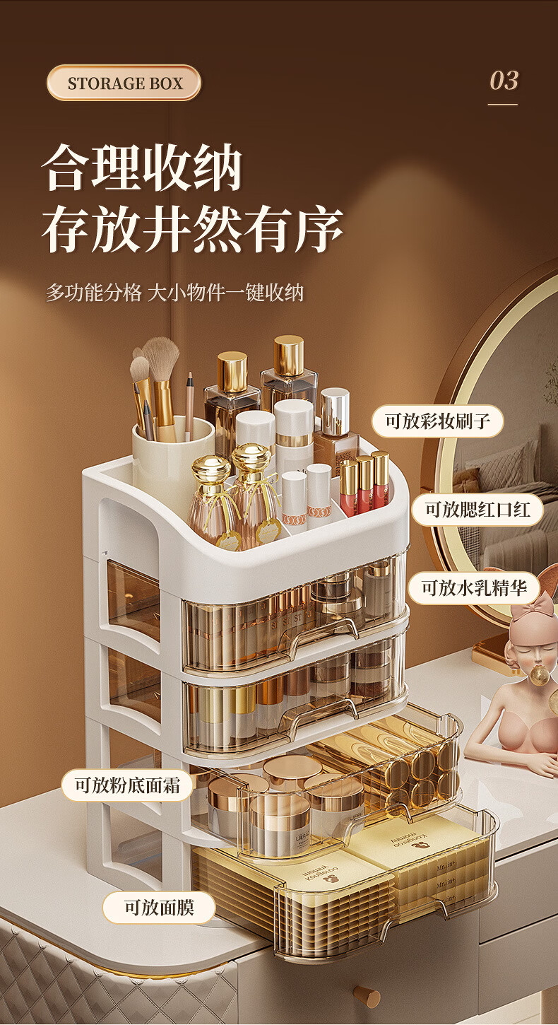 Strictly selected domestic products, light luxury cosmetics storage box, large capacity, dust-proof, skin care products, facial mask, lipstick, plastic comb, five-layer storage box (milk color)