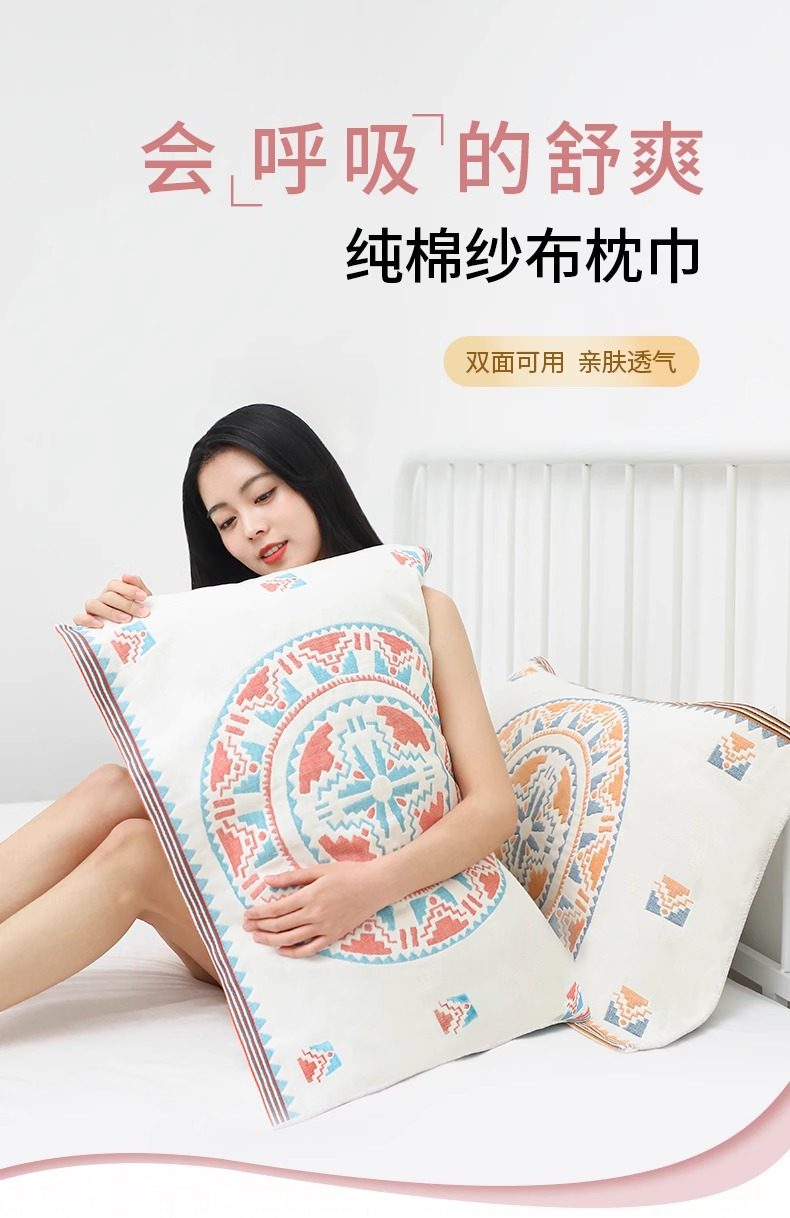LangSha pure cotton pillowcase single high-end cotton pillowcase men's oil-proof and sweat-proof enlarged 50x80cm pillow cushion Sun God yellow cotton fabric four layers of gauze 50cm*80cm one pack