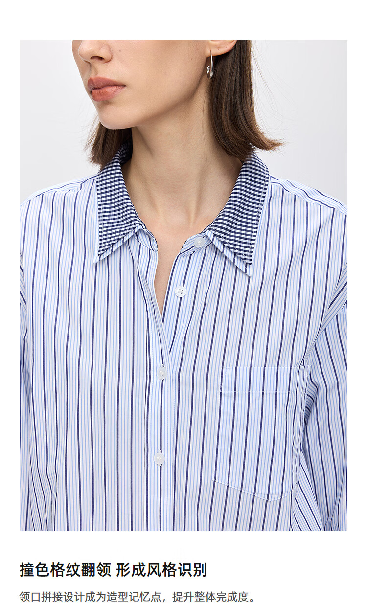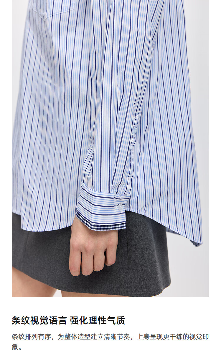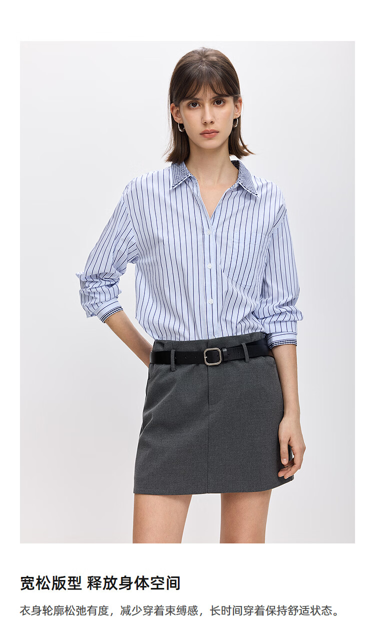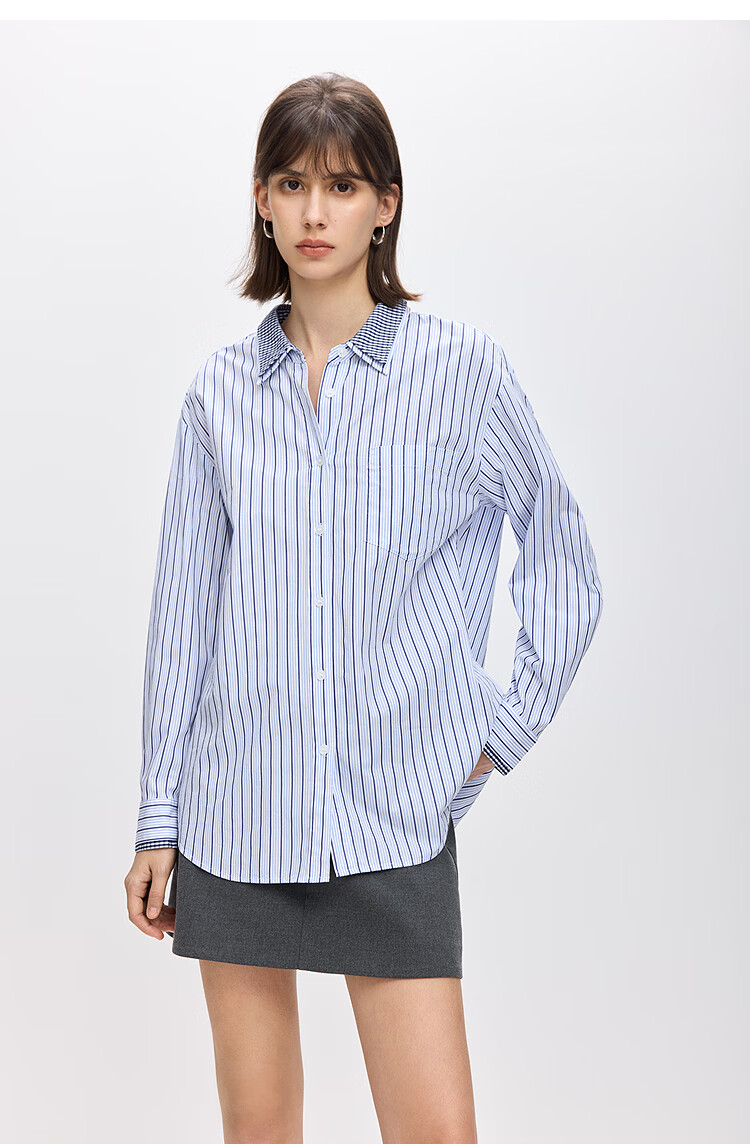 LILY2026 Spring New Pure Cotton Simple Lapel Striped Loose Casual Commuting Light Color Long Sleeve Shirt Jacket Women 424 Light Gray Blue S