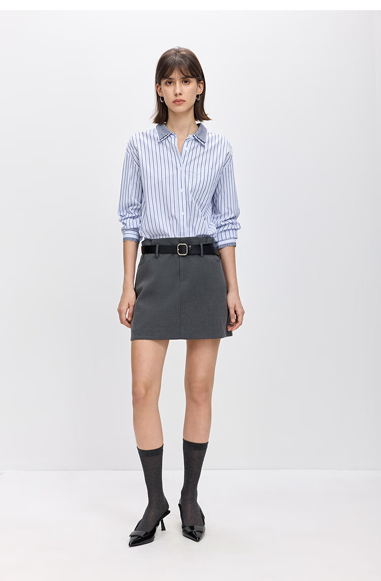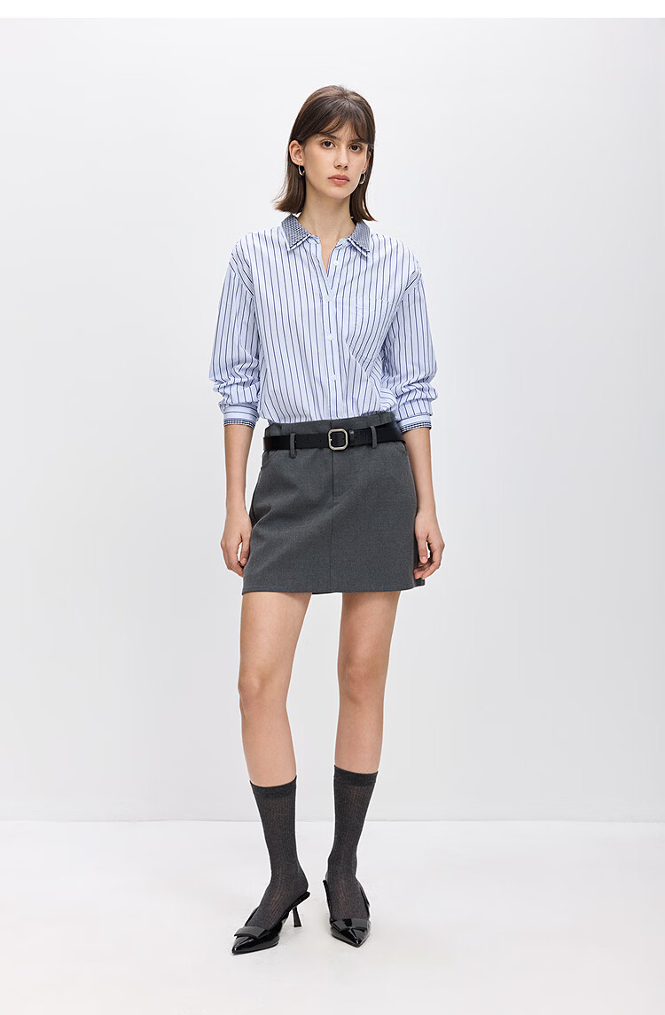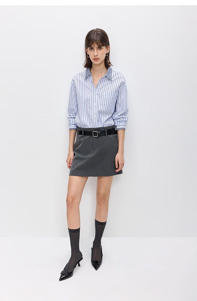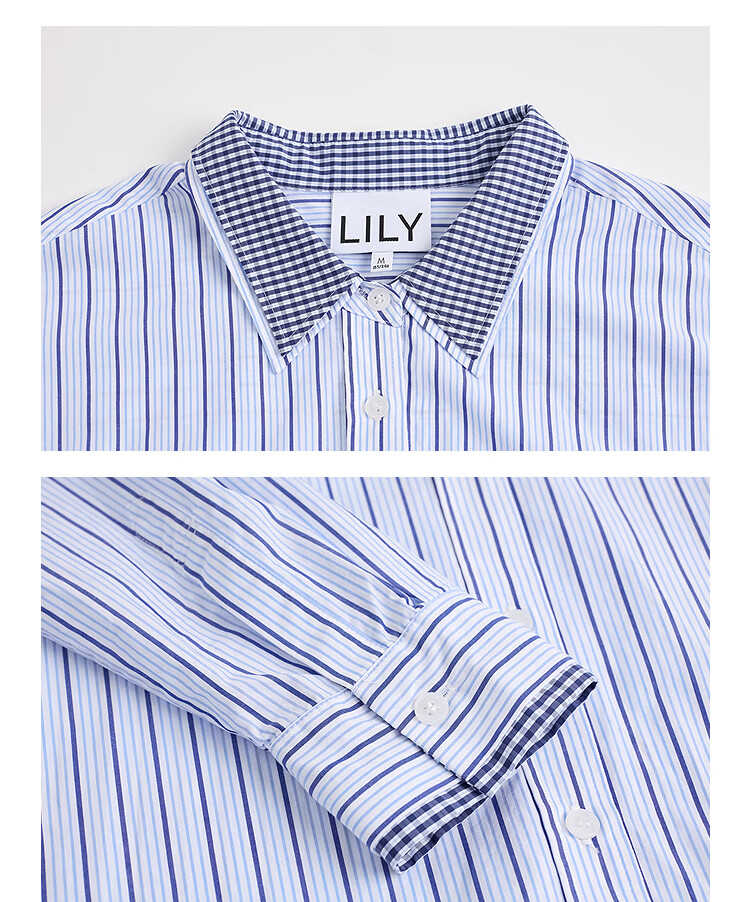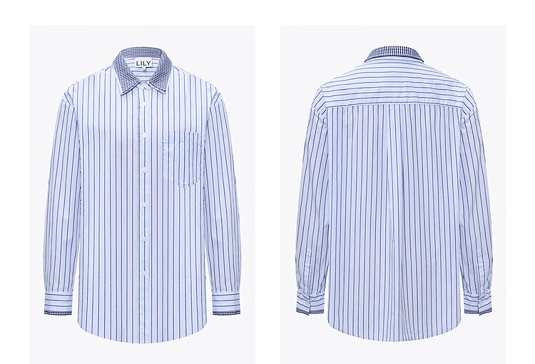 LILY2026 Spring New Pure Cotton Simple Lapel Striped Loose Casual Commuting Light Color Long Sleeve Shirt Jacket Women 424 Light Gray Blue S