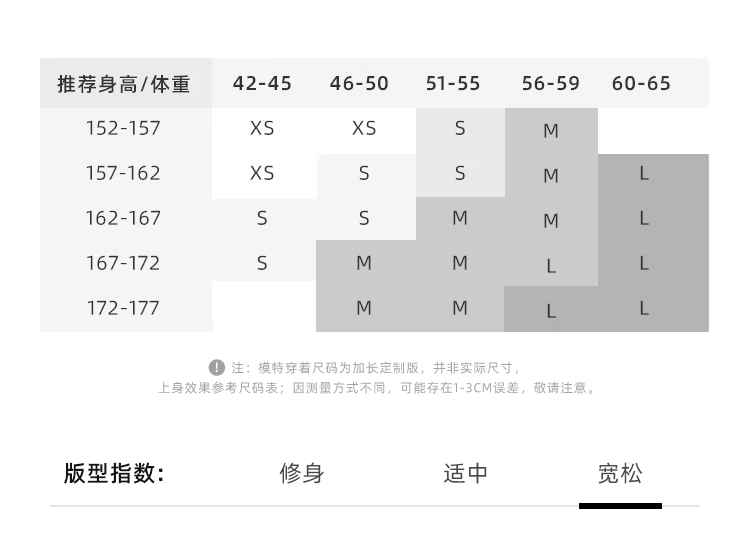 China (cm) 160-165/84-86 165-170 / 88-90 167-172 / 92-96 168-173 / 98-102 170-176 / 106-110