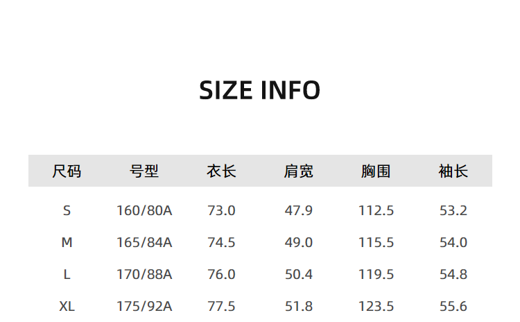 China(cm) 72-76 76-81 81-87 87-93 93-98