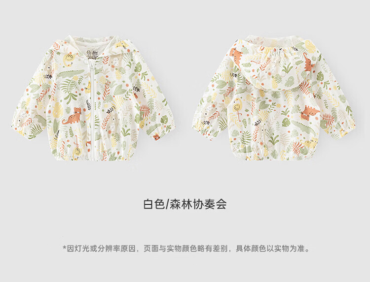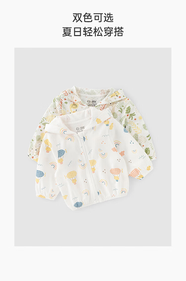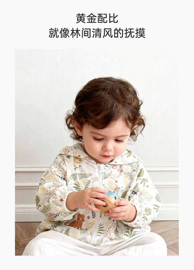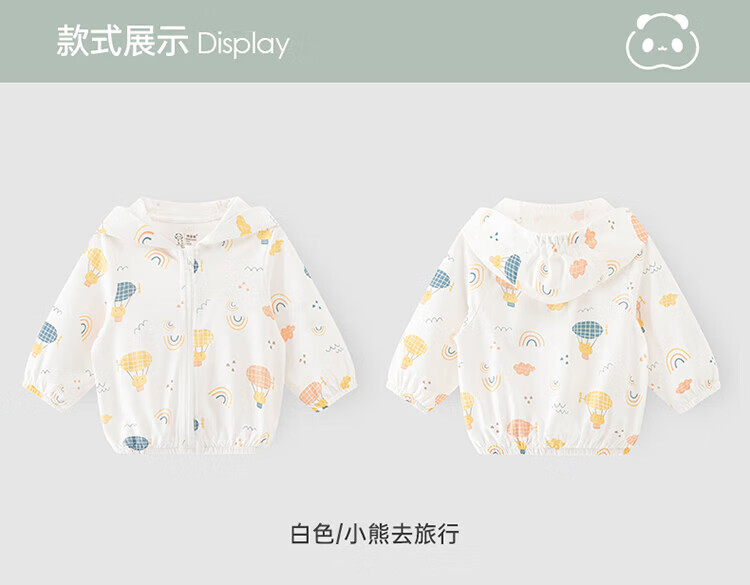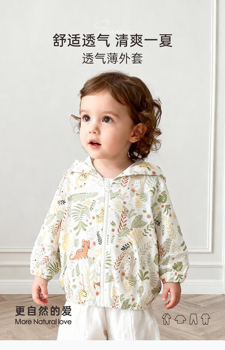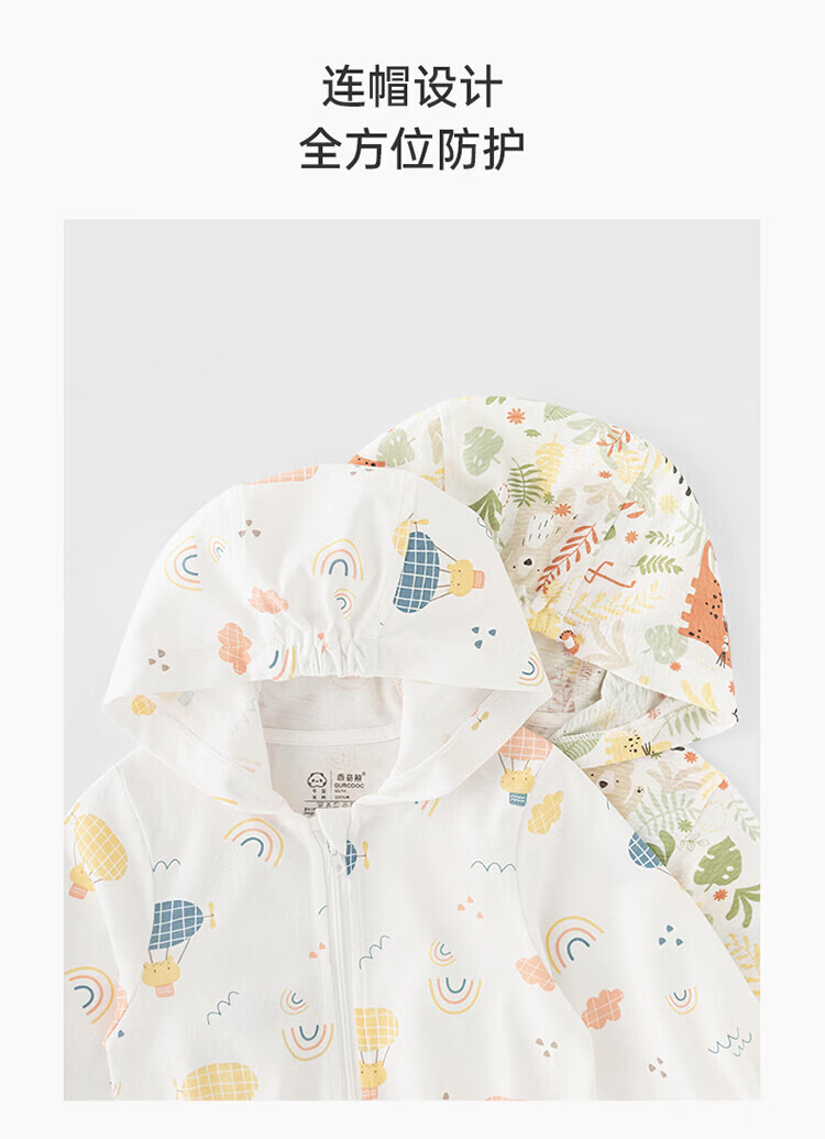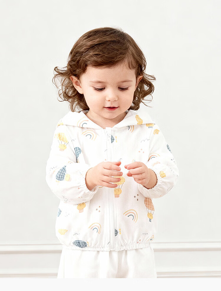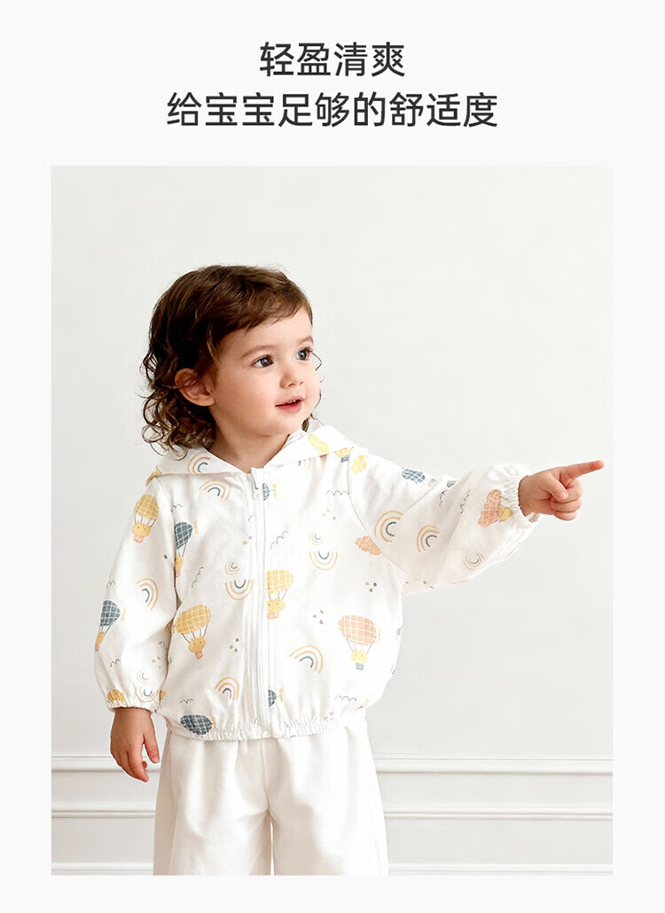 Guiqi Bear Bamboo Fiber Cooling Baby Sun Protection Clothes Thin Summer Long-Sleeved Air-conditioned Clothes Baby Tops Going Out Hooded Small Jacket White/Forest Concert (Bamboo Fiber) 100