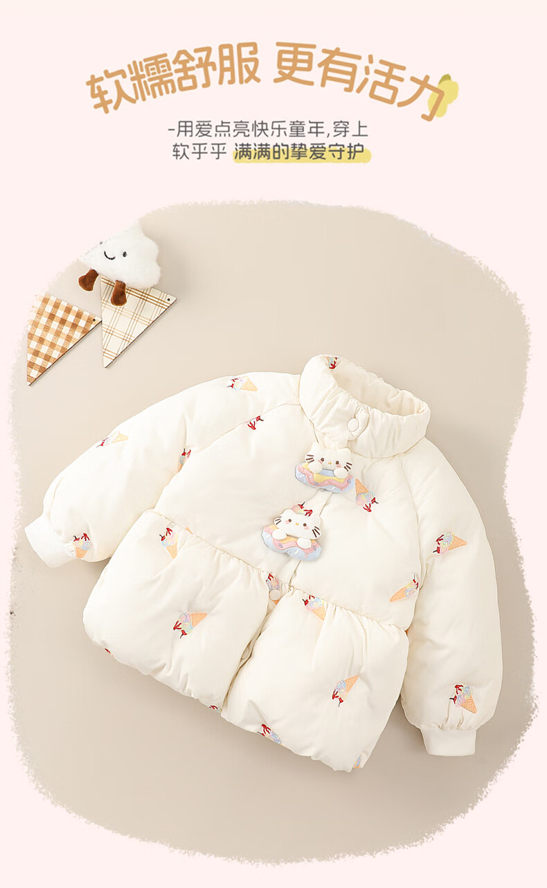 Mami Maca children's clothing girls' cotton clothing 2025 winter baby cute ice cream cat cotton clothing Mi Xing 100