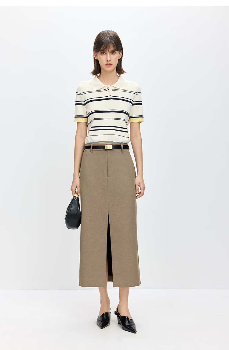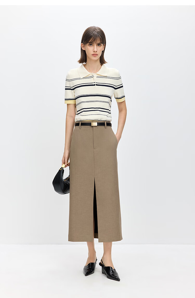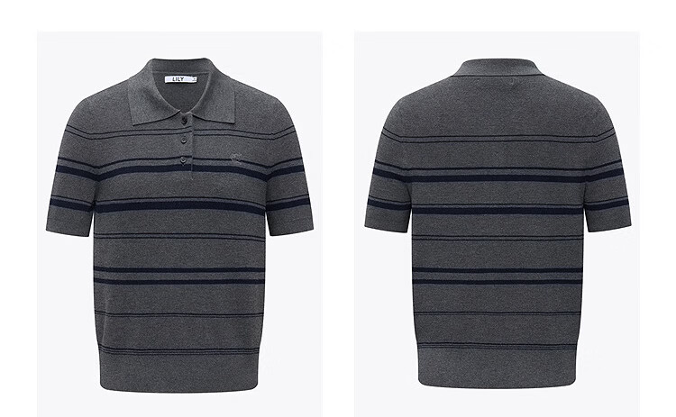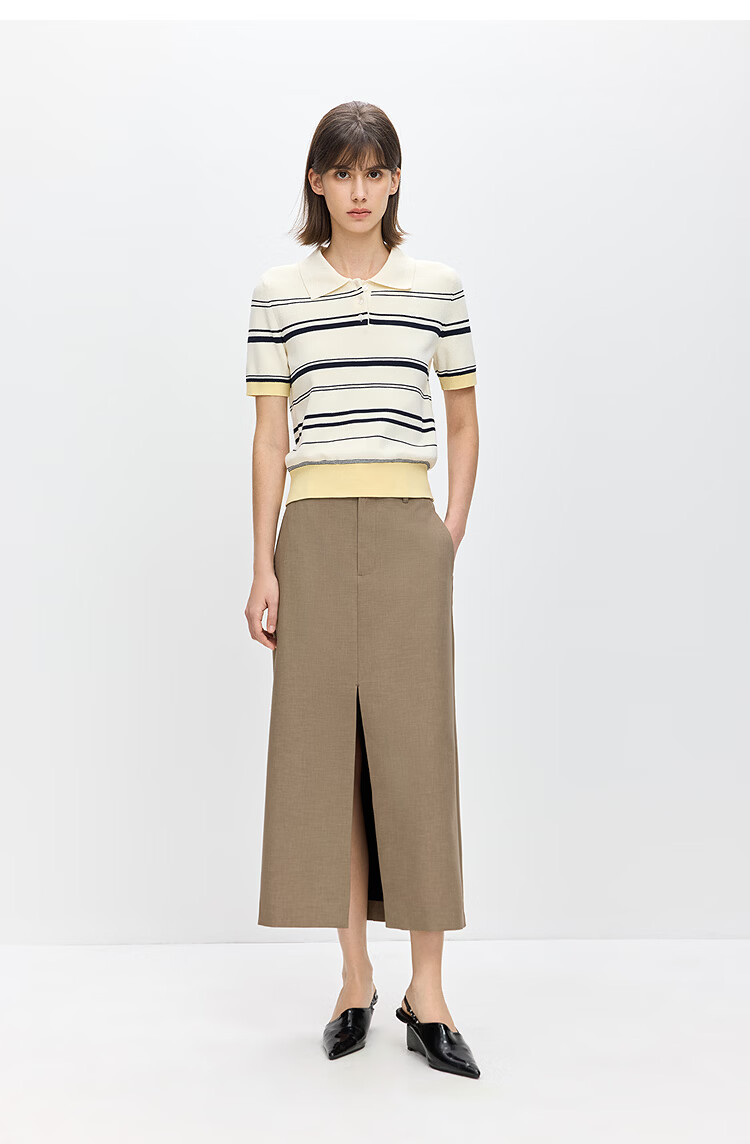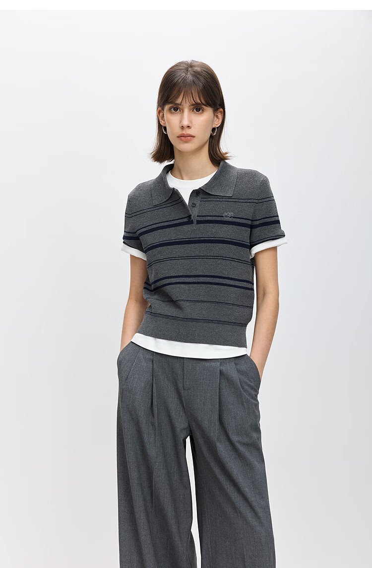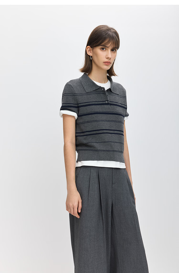 LILY2026 Spring New Fashionable Simple POLO Collar Contrast Color Stripes Casual Commuting Short-Sleeved Knitted Sweater Women's 703 Beige M