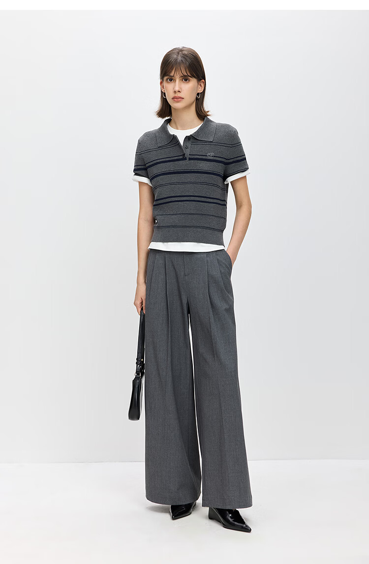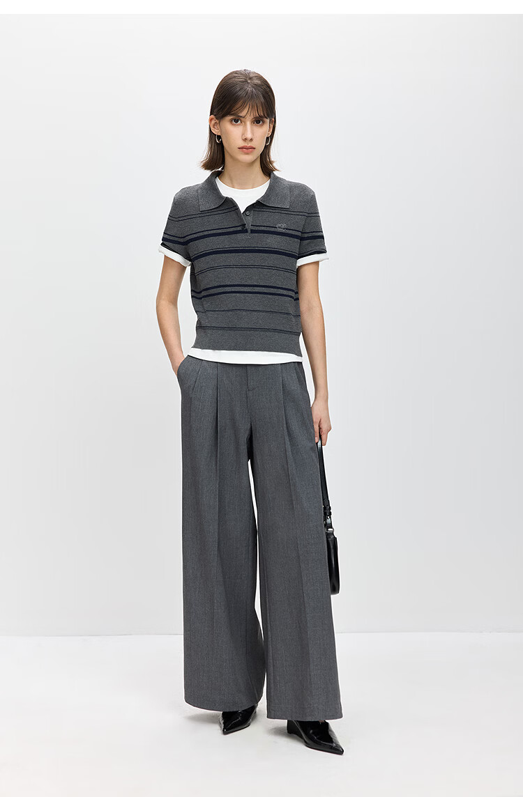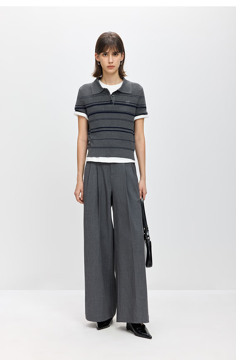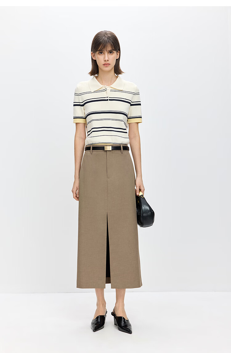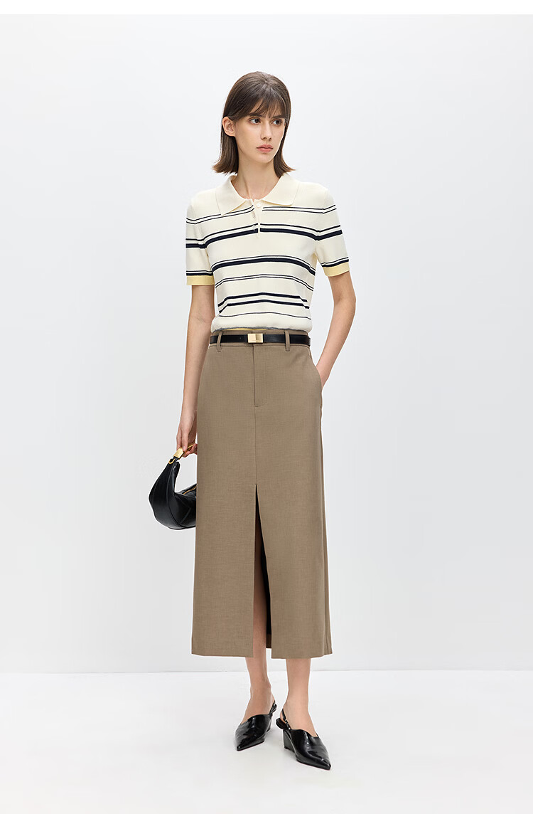 LILY2026 Spring New Fashionable Simple POLO Collar Contrast Color Stripes Casual Commuting Short-Sleeved Knitted Sweater Women's 703 Beige M