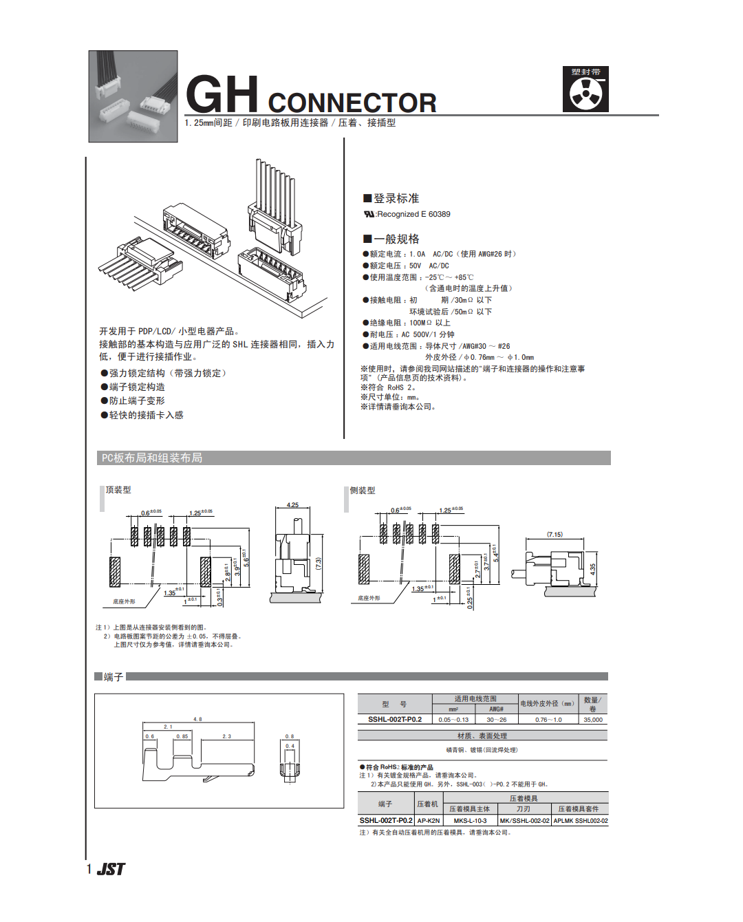JST connector GHR-05V-S