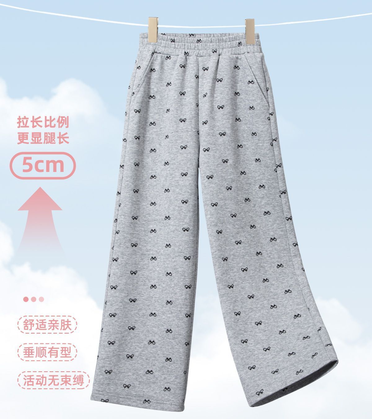 JeansWest children's clothing girls' pants spring and autumn breathable skin-friendly trousers girls bow wide-leg casual straight pants spring and autumn wick strip straight pants - black 170 recommended 100-120 Jin Jin equals 0.5 kg