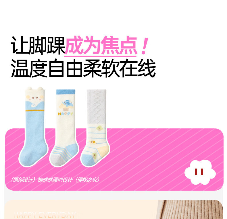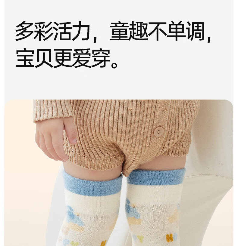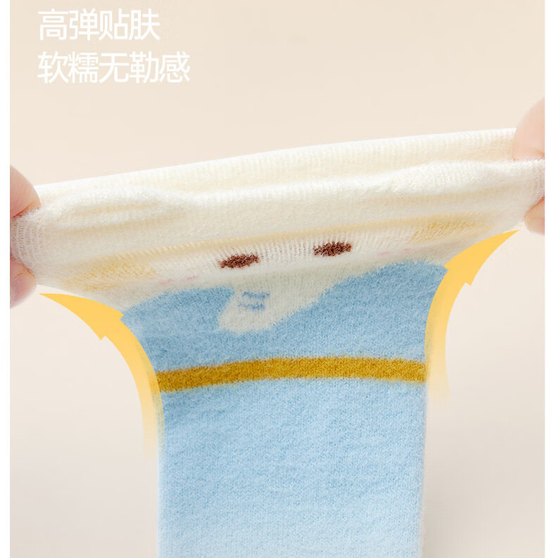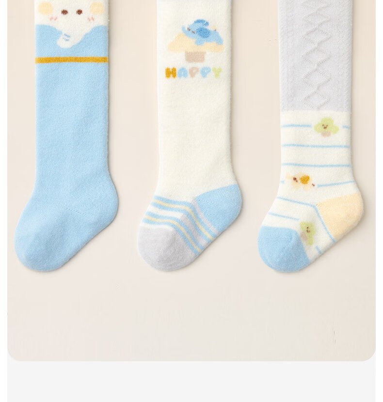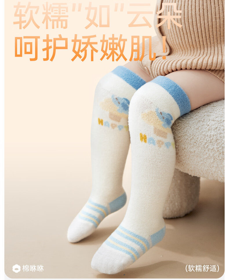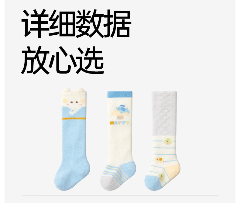 Cotton baby socks autumn and winter new thickened warm knee-high socks for boys and girls newborn cartoon cotton calf socks 3 pairs B5062-Happy Elephant-3 pairs of skin-friendly velvet knee-high calf socks 0-6 months - recommended foot length 8-10cm