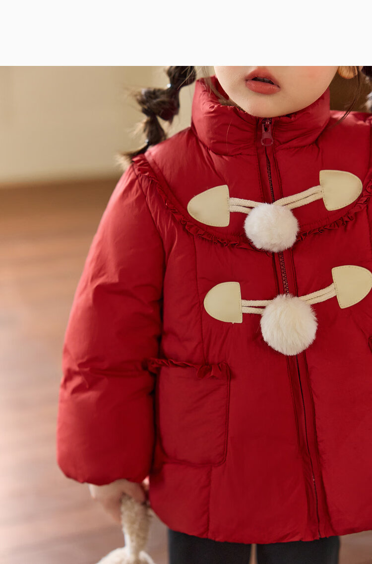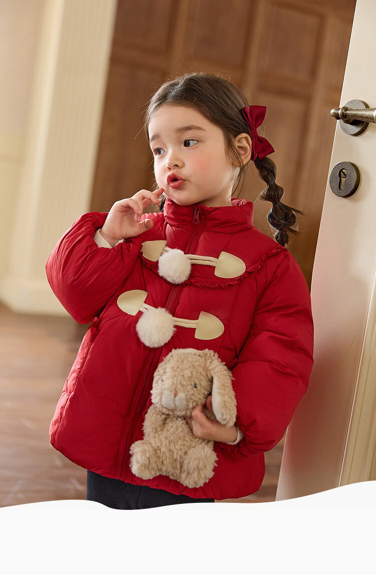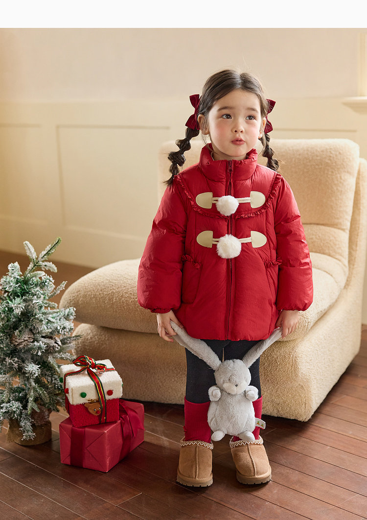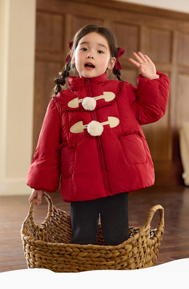 LUSON Children's Clothing Baby New Year Red Cotton Jacket Women 2026 New Girls Horn Button Padded Jacket Red 100