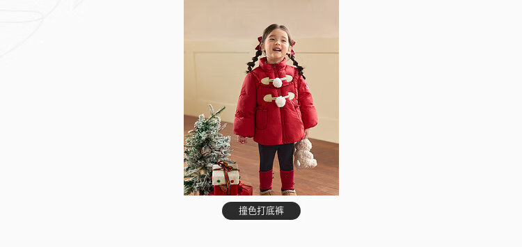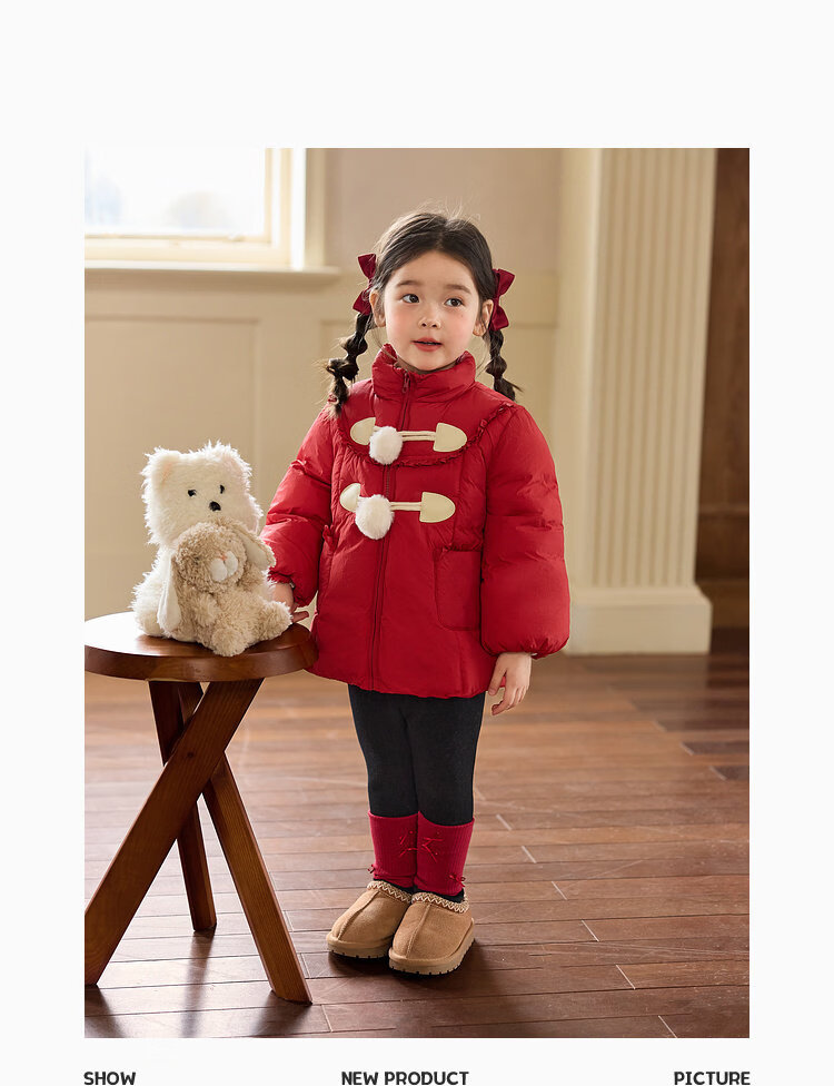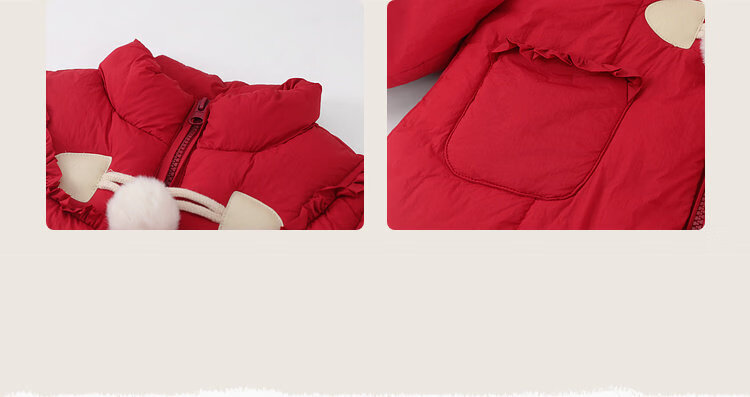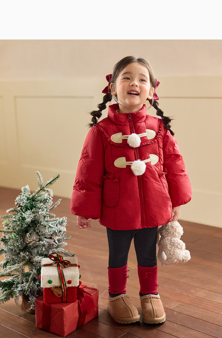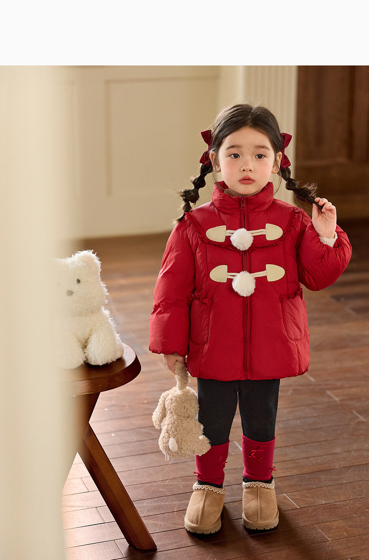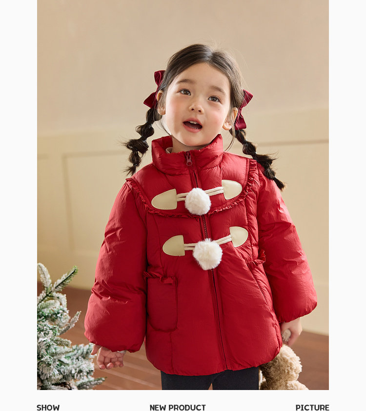 LUSON Children's Clothing Baby New Year Red Cotton Jacket Women 2026 New Girls Horn Button Padded Jacket Red 100