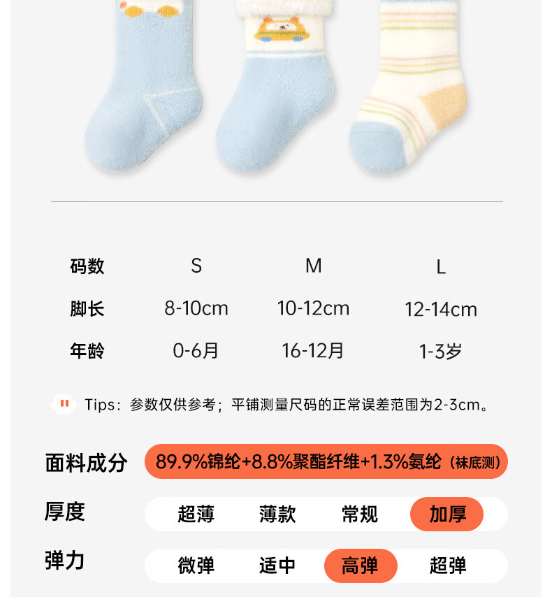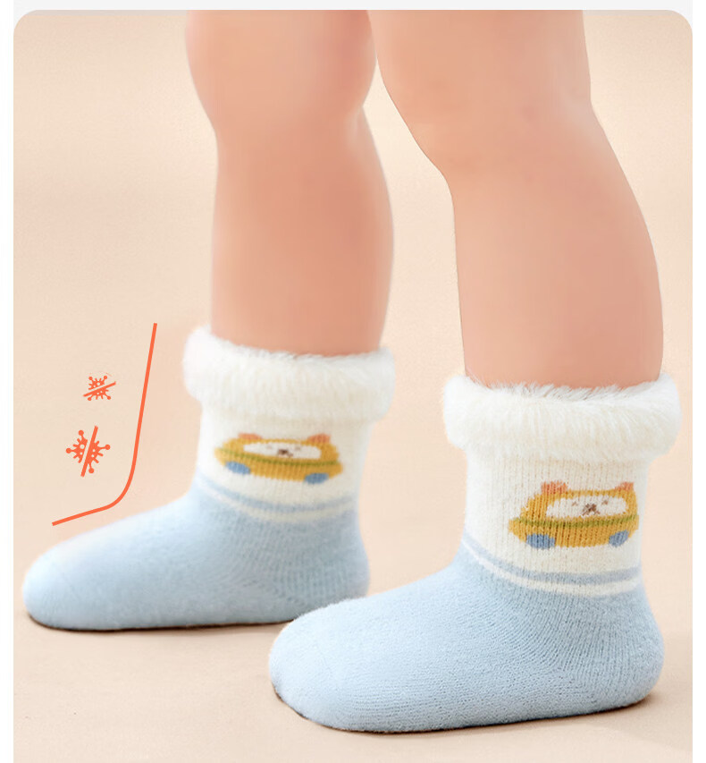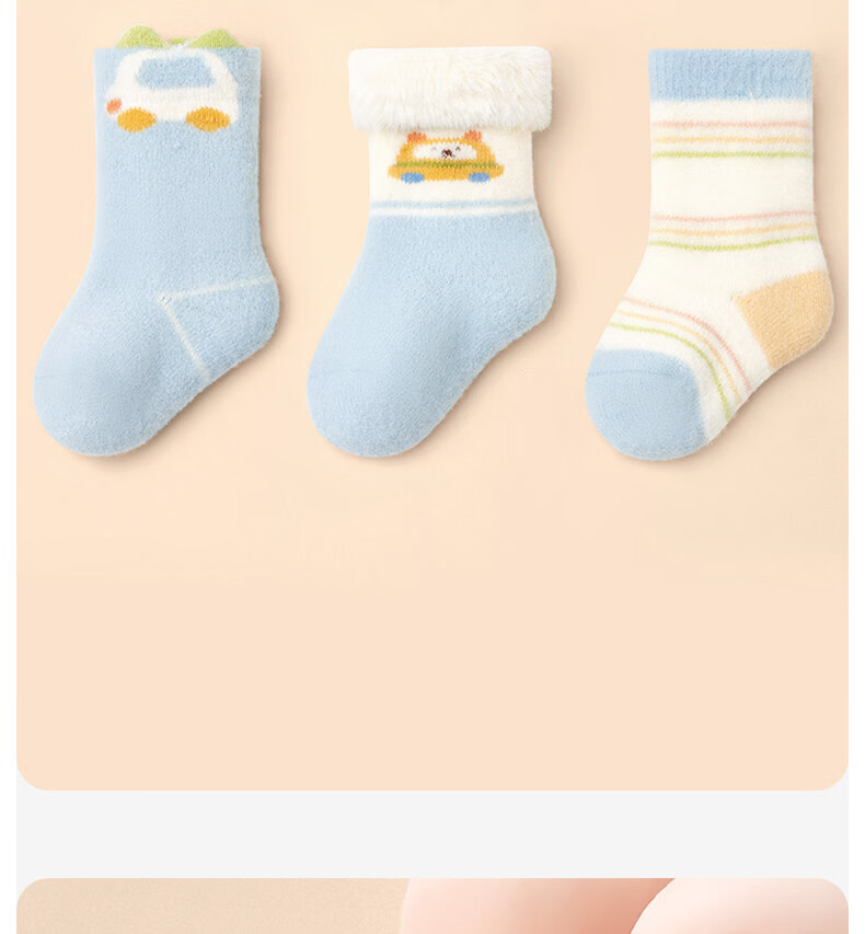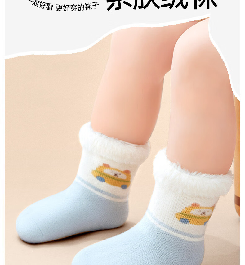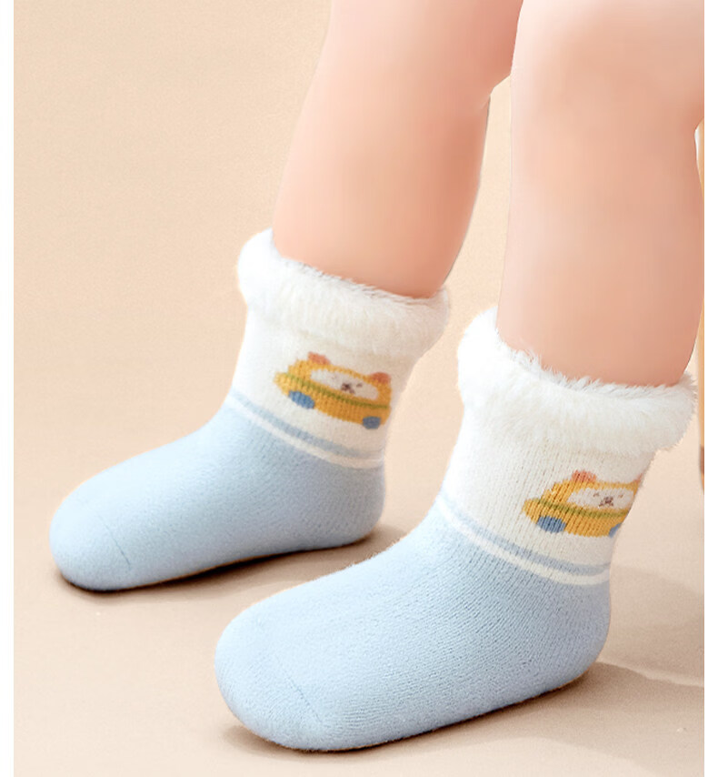 Cotton skin-friendly velvet socks for infants and children, cartoon autumn and winter new style, thickened velvet, warm and cold-proof, mid-calf socks for boys and girls, infants and young children B5065-Global Travel-3 pairs, skin-friendly velvet thickening, 0-6 months -S size socks, bottom length 8cm