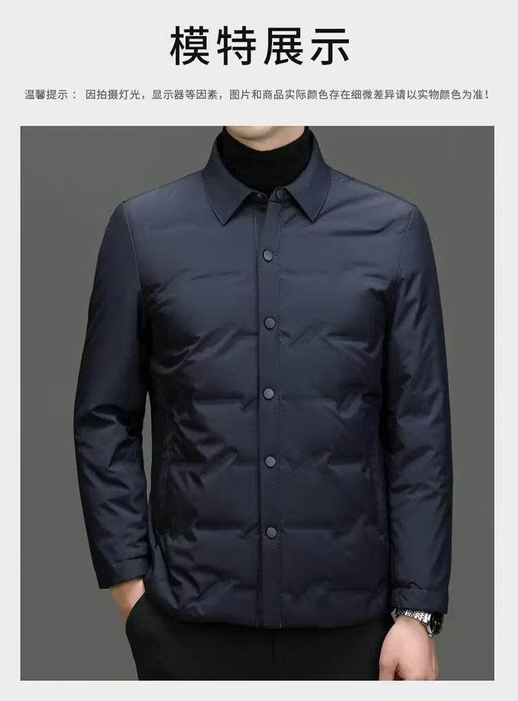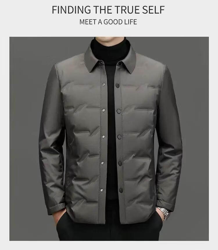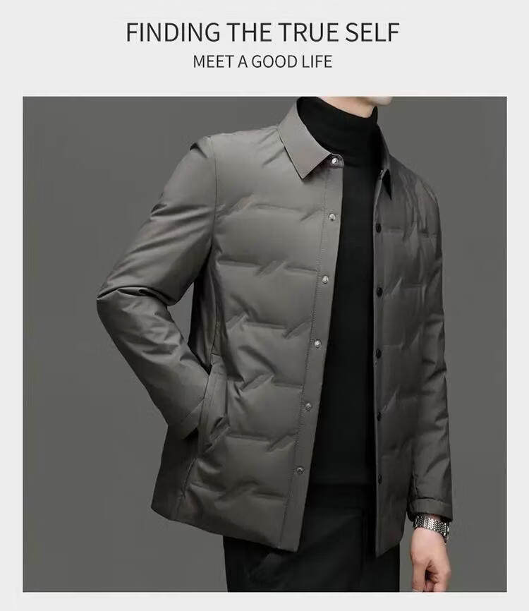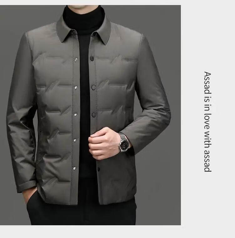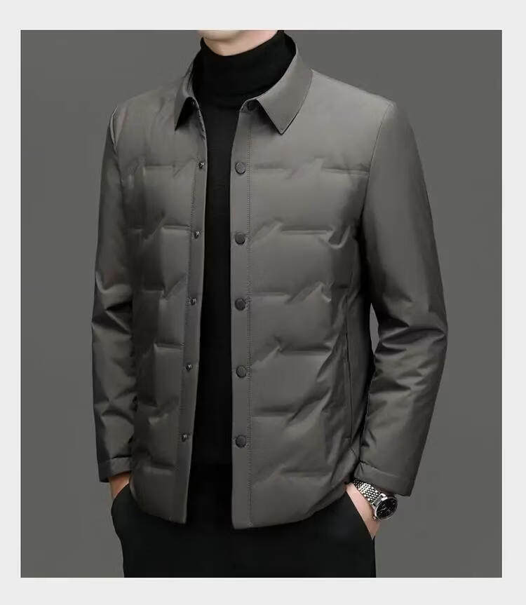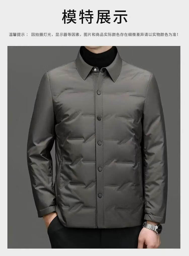 恒源祥轻薄羽绒服男士2026新款秋冬中年商务休闲翻领保暖夹克外套 灰色 M 【建议90-120斤】