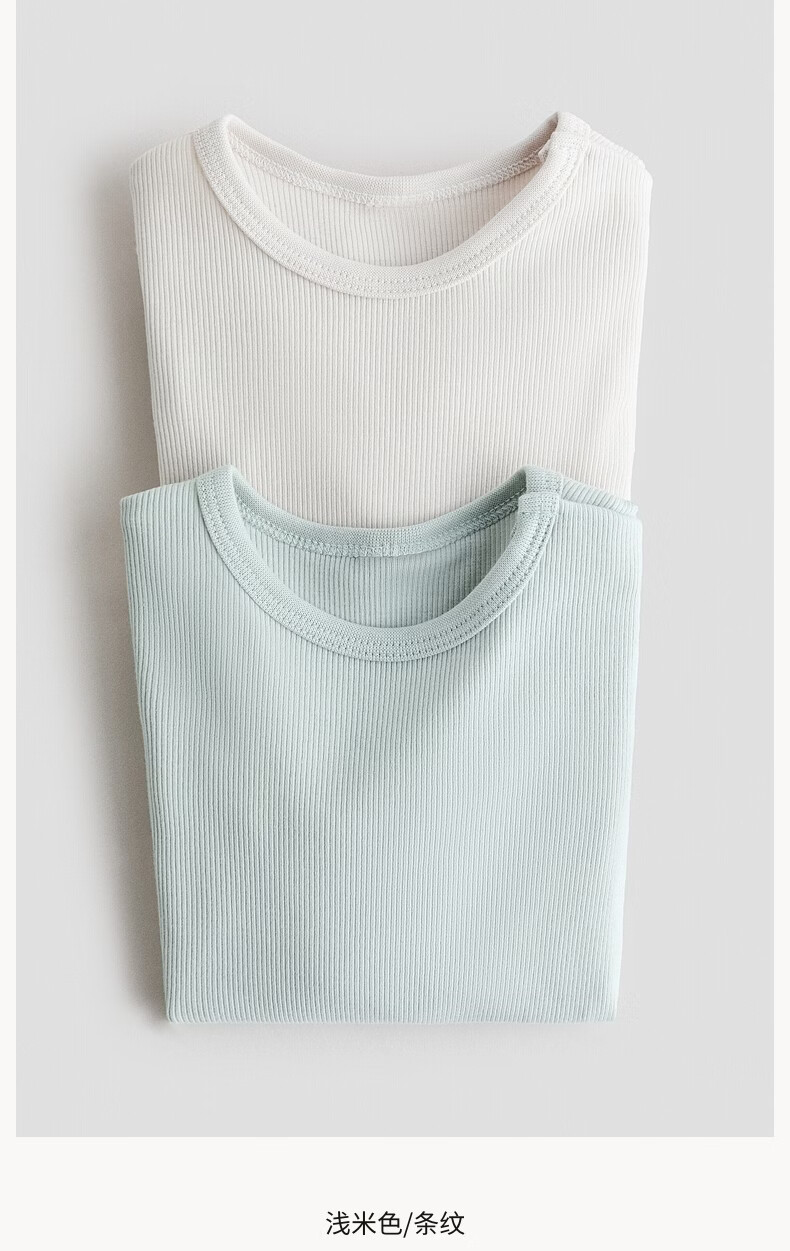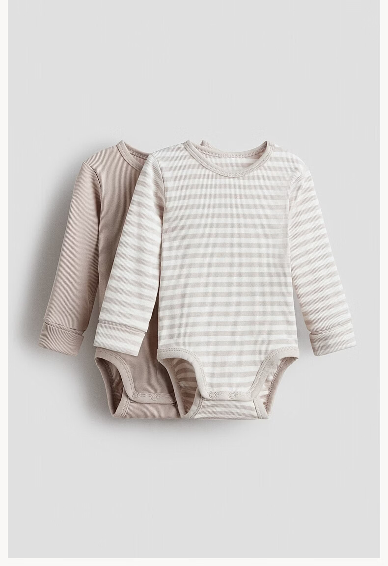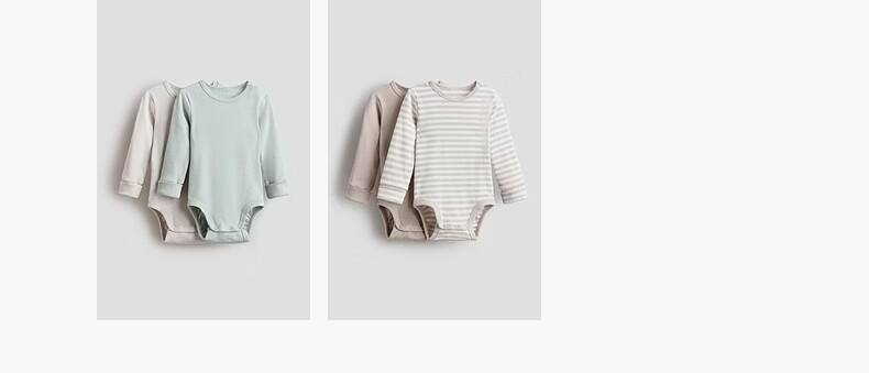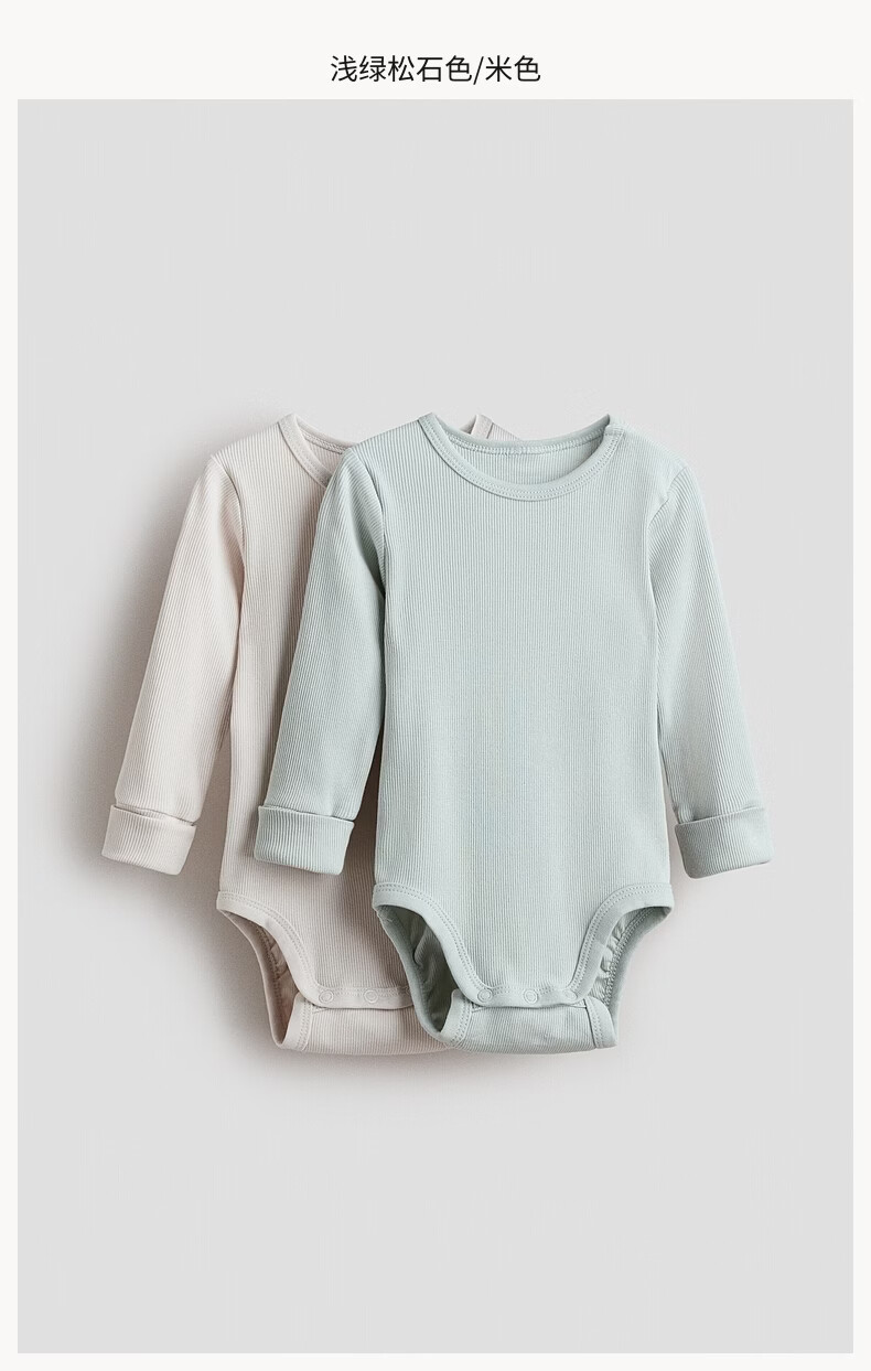 H&M children's clothing baby boy and girl jumpsuit romper 2-piece 2026 spring new long-sleeved robe 1107147 light turquoise/beige 90cm 90/48 (12-18M)