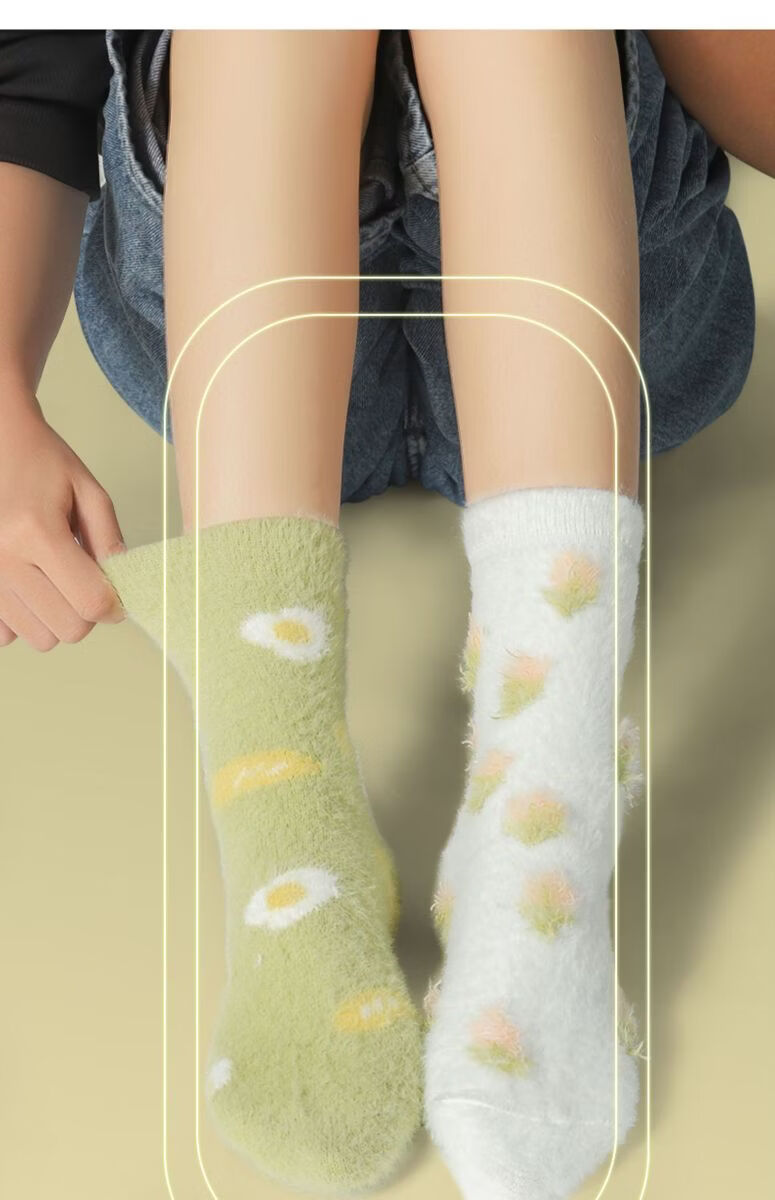 Postpartum bone-free confinement socks for women in autumn and winter, pregnant women who are postpartum and do not stretch their feet, mid-length coral velvet sleep socks, lemon fruit 2 small spots 2, one size fits all