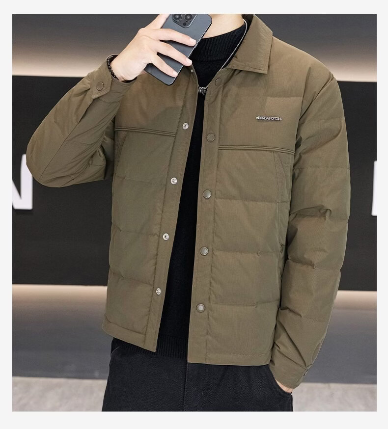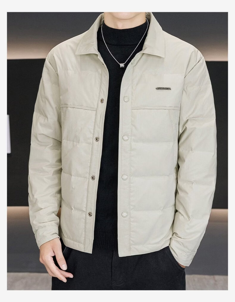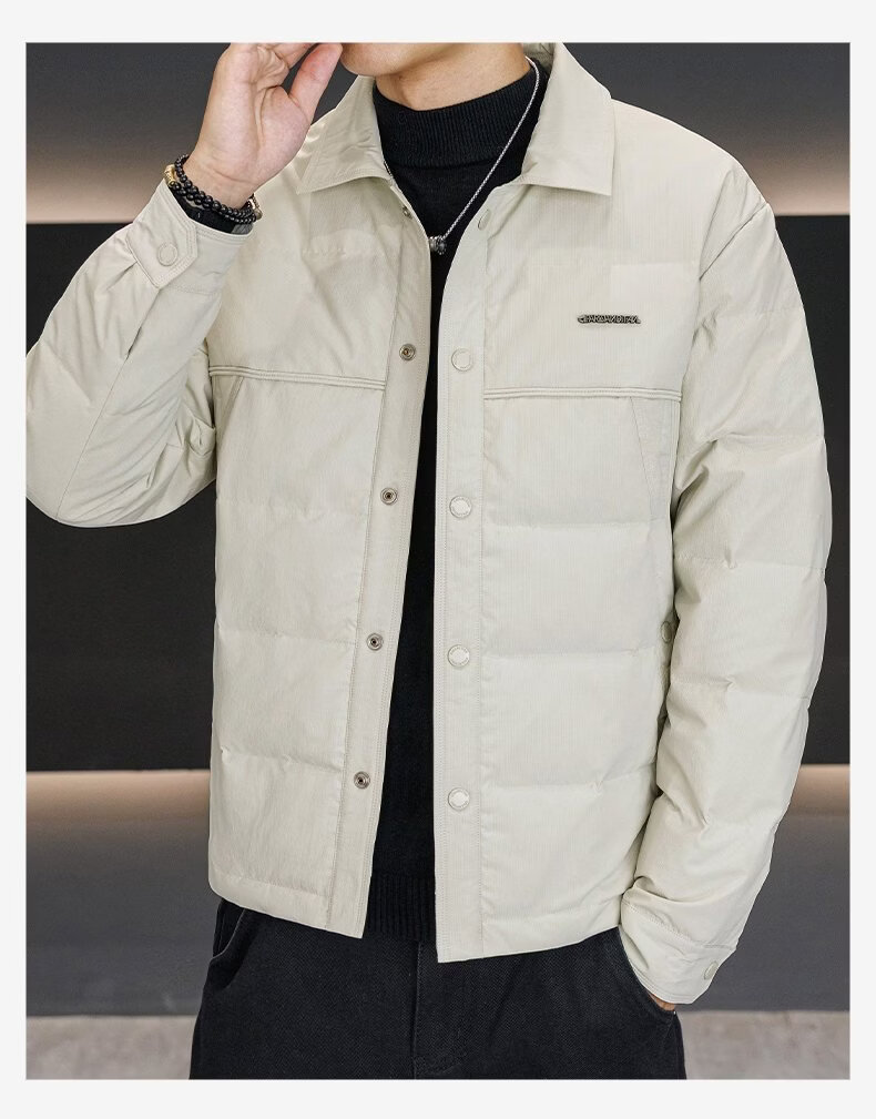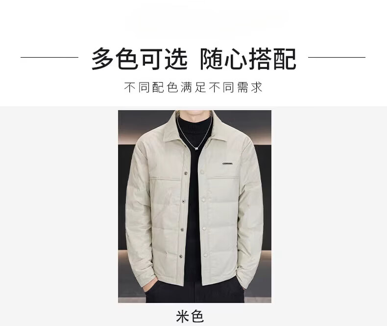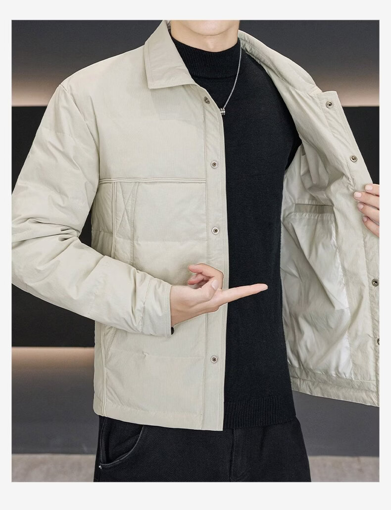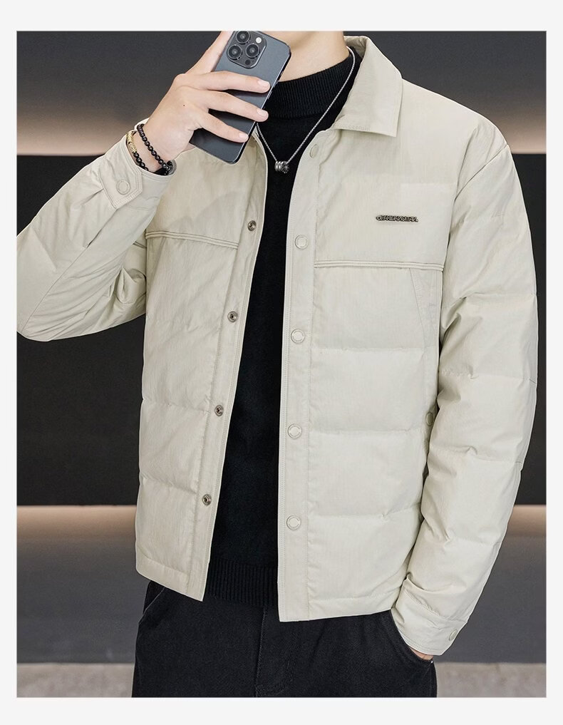 Luo Meng high-end men's down jacket 2025 winter new style lapel duck down warm and cold-proof clothing trendy casual jacket for men 9923 beige 2XL recommended 141-160
