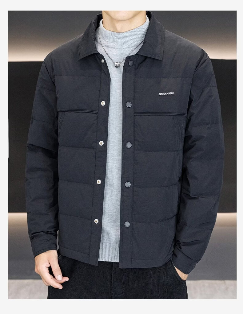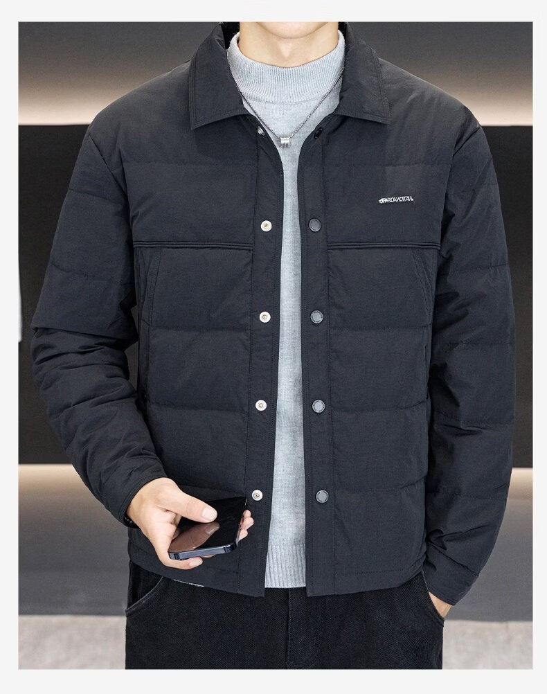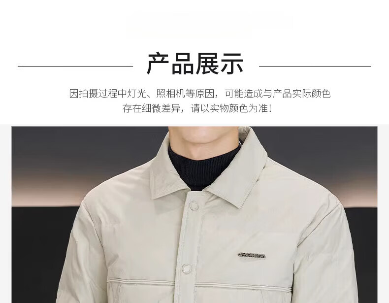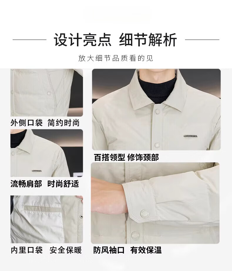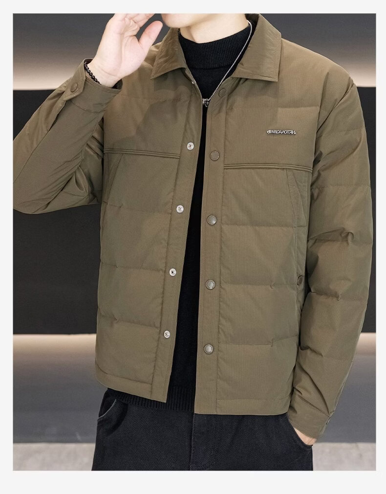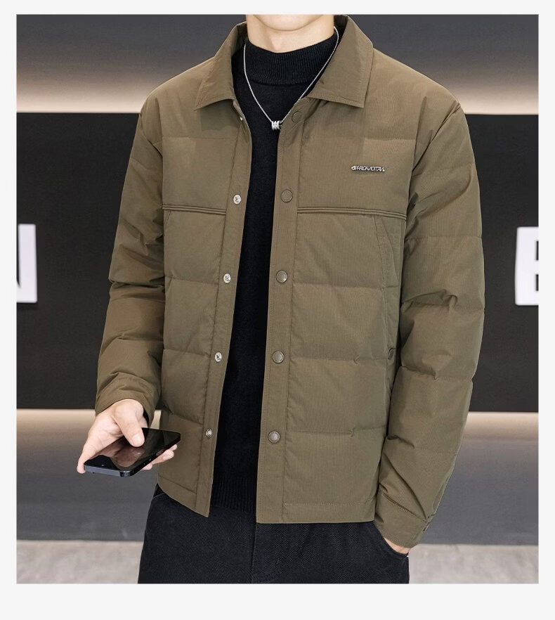 Luo Meng high-end men's down jacket 2025 winter new style lapel duck down warm and cold-proof clothing trendy casual jacket for men 9923 beige 2XL recommended 141-160