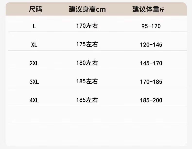 China (cm) 165 / 88-90 170 / 96-98 175 / 108-110 180 / 118-122 185 / 126-130