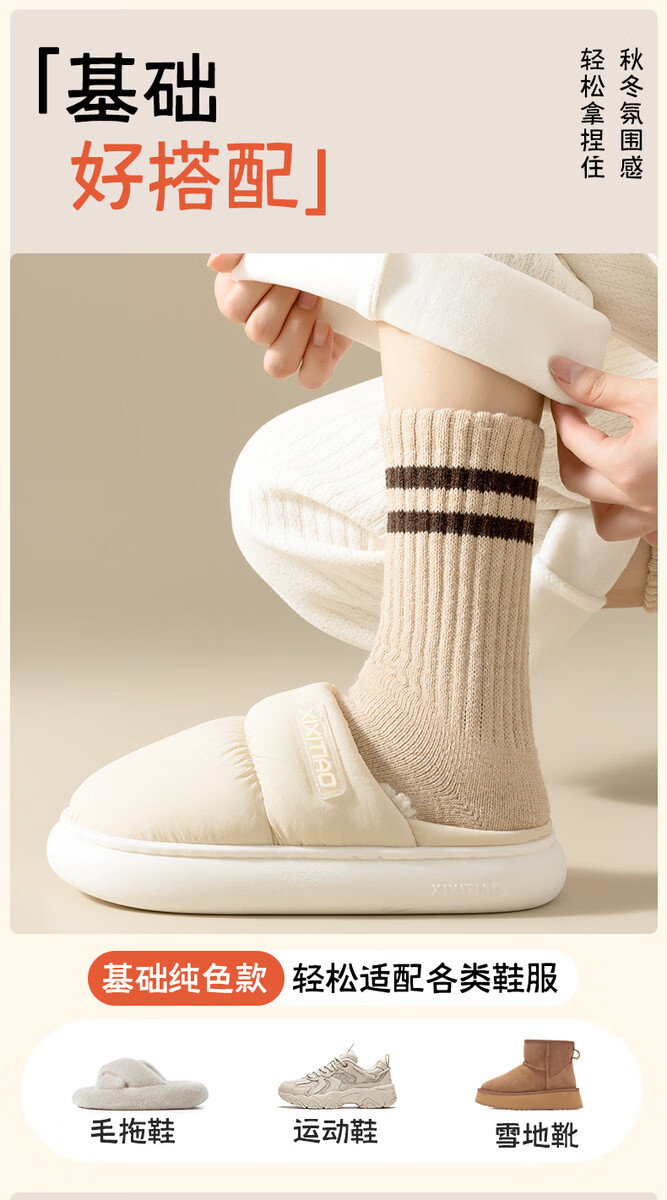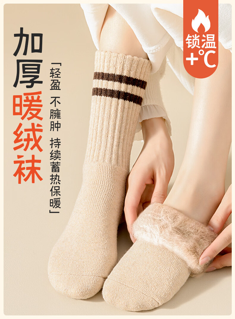 Extra thick cashmere socks for women, autumn and winter mid-calf socks with velvet and thickened warm cotton socks, striped long towel stockings, huge thick velvet, white, off-white, light gray, khaki, dark brown, black, one size fits all, one size fits all (thick velvet/super warm cashmere socks/will be sent first if you add to your collection)