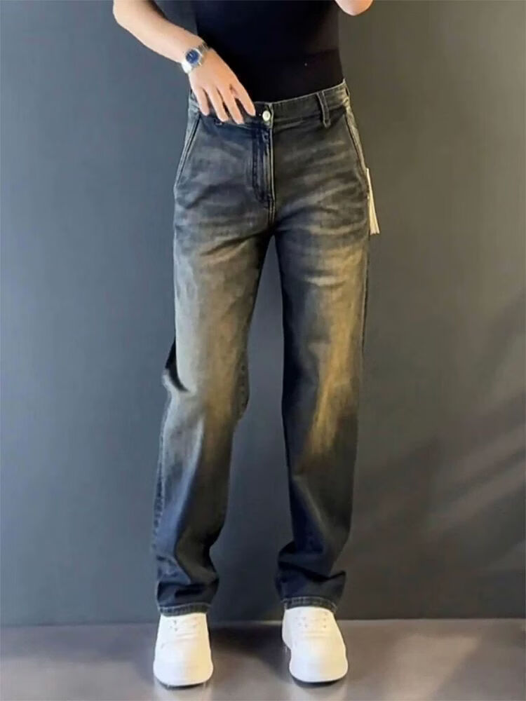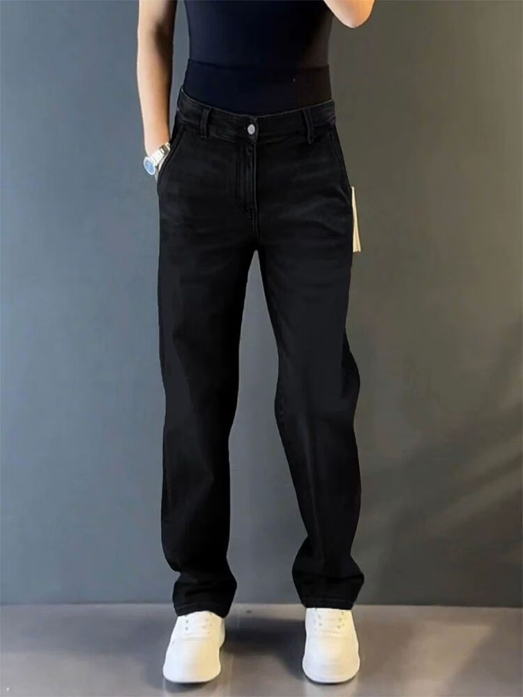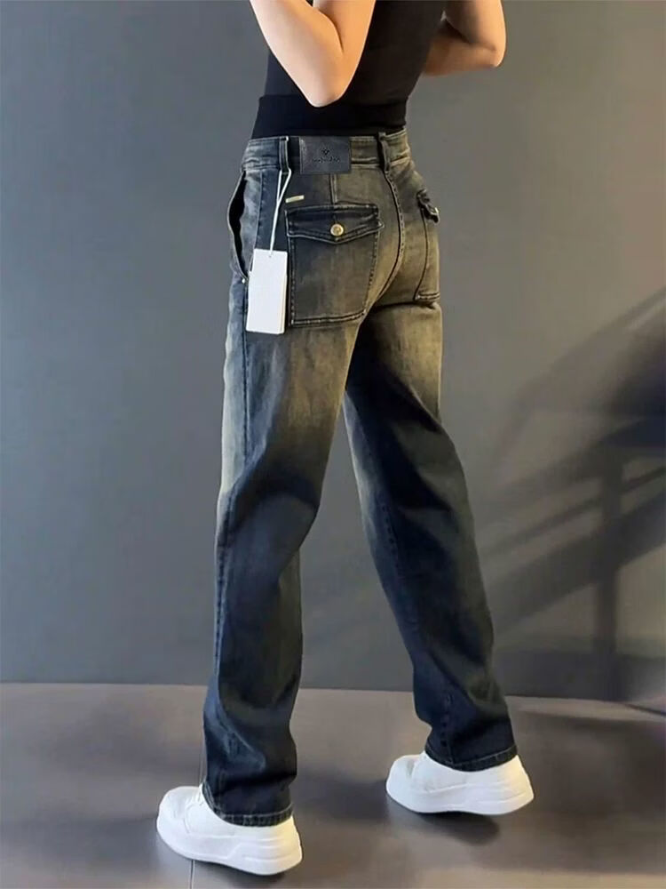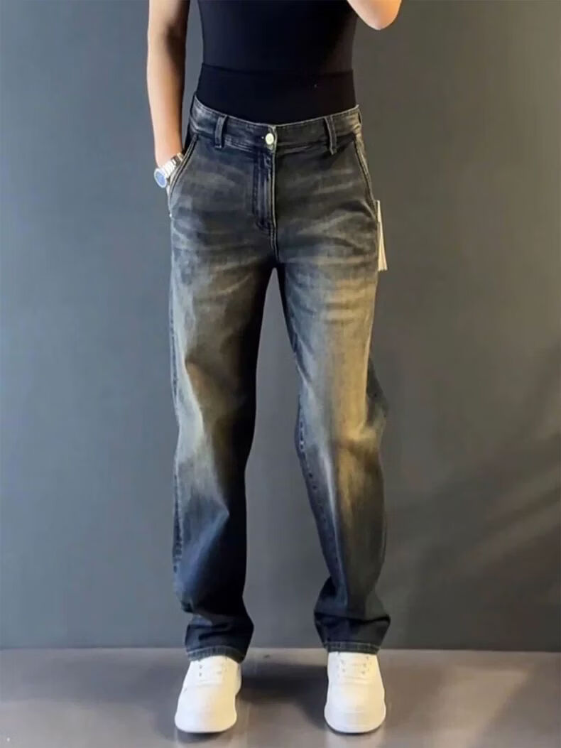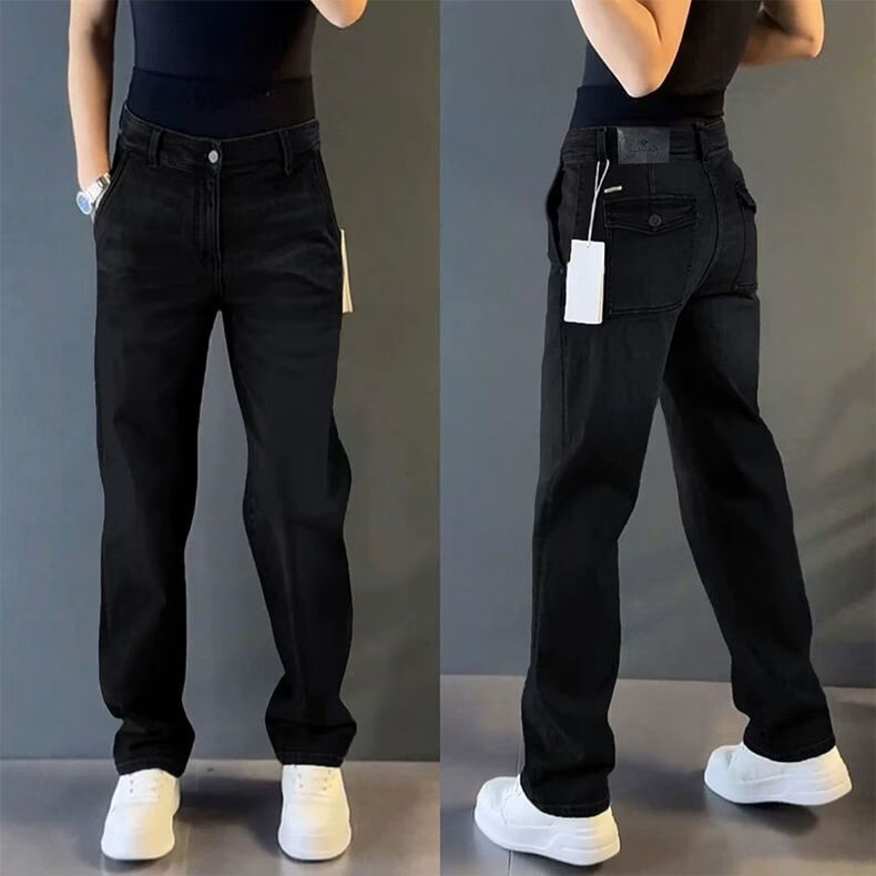 High-end light luxury new light luxury straight jeans men's autumn and winter versatile loose drape European casual pants blue 33 recommended 145-155 Jin Jin equals 0.5 kg