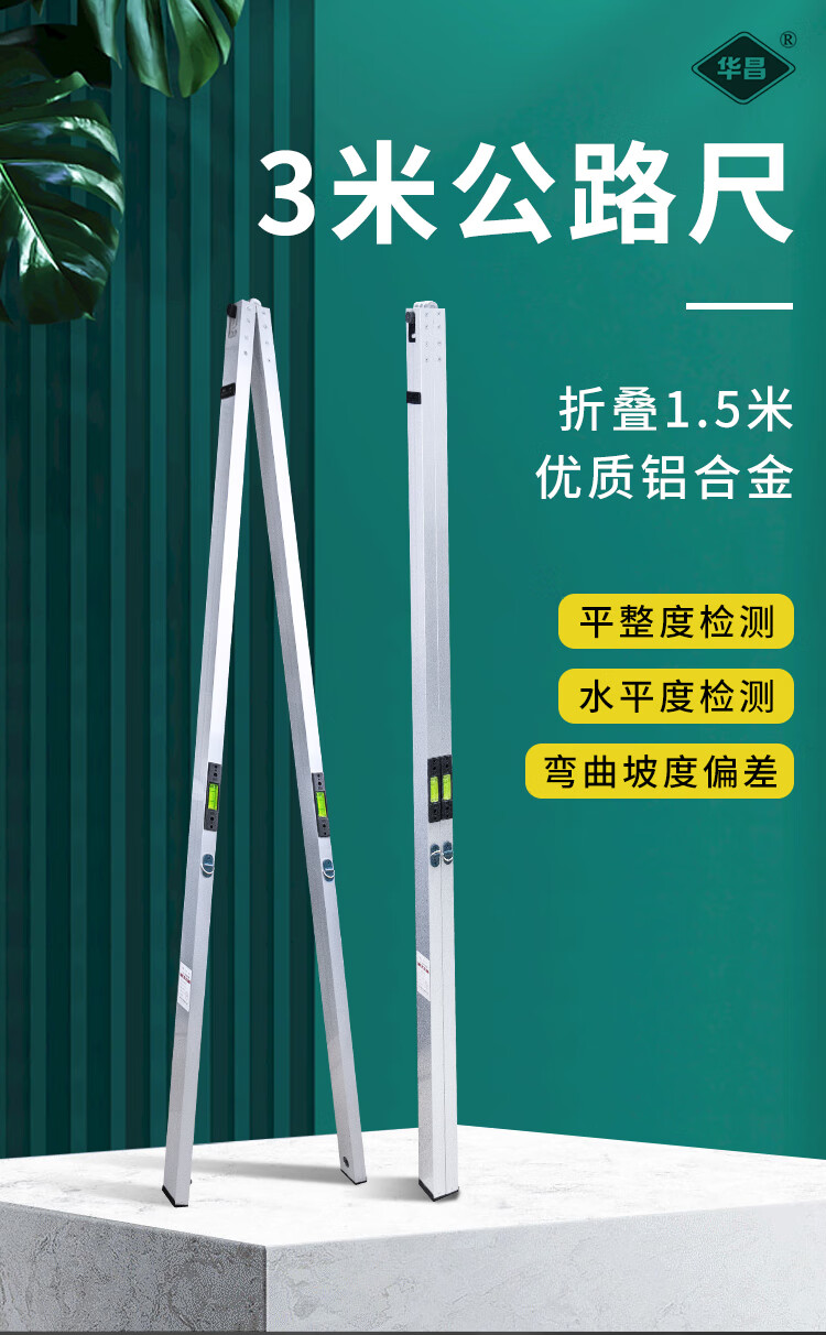 Huachang 3-meter highway ruler, three-meter ruler, aluminum alloy ruler, folding horizontal ruler, plug engineering highway flatness detection ruler Huachang 3-meter highway ruler + right-angle ruler + feeler ruler A