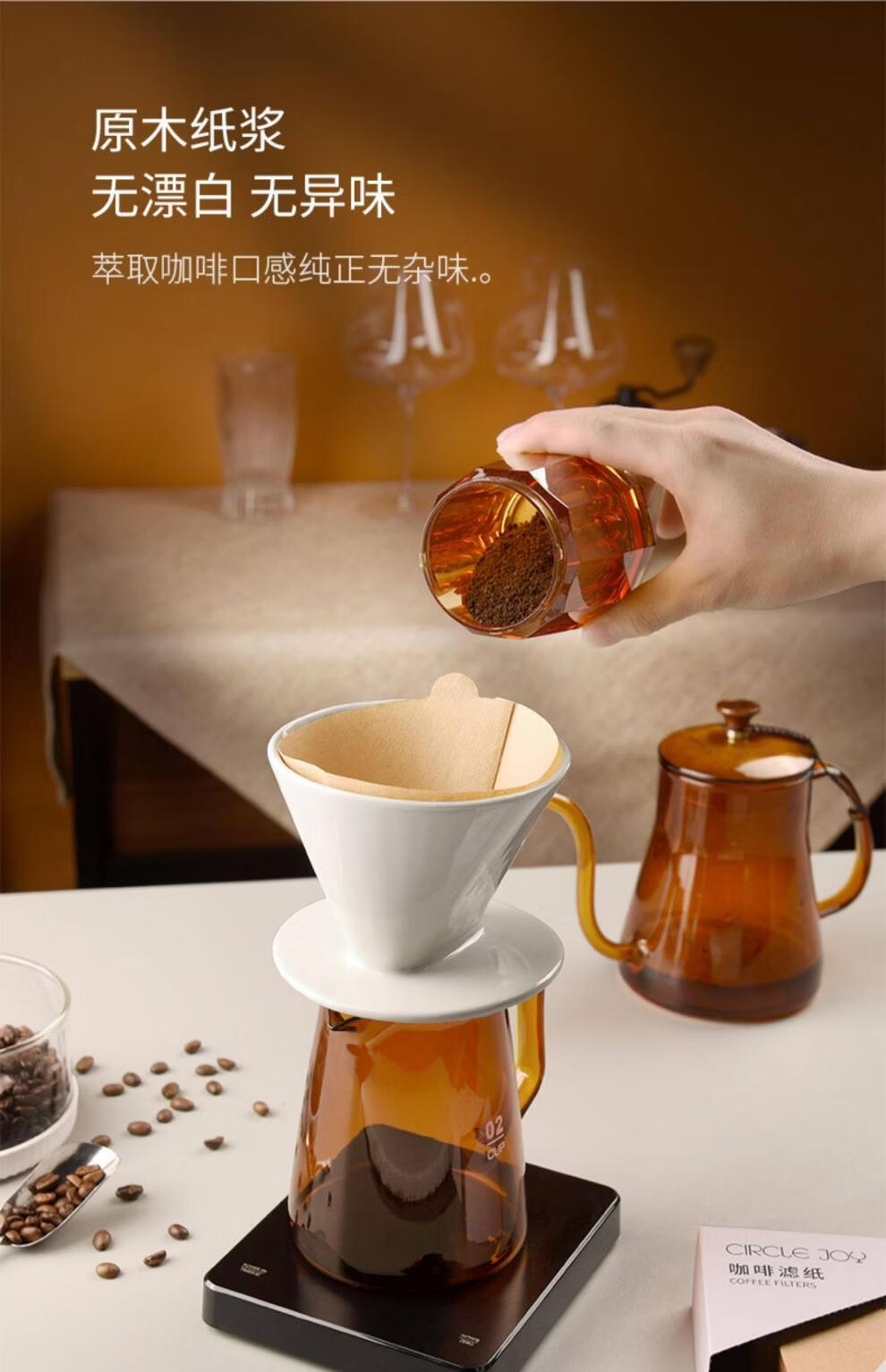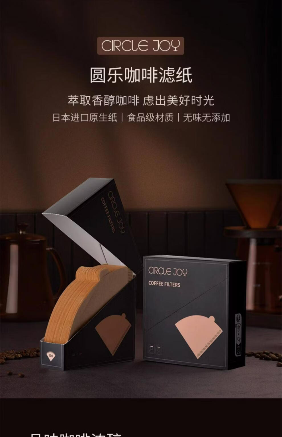 Circle joy Japan imported coffee filter paper hand-pour filter paper drip hanging V-shaped 60 filter paper bag original color V01 filter paper-(1-2 people) 100 sheets