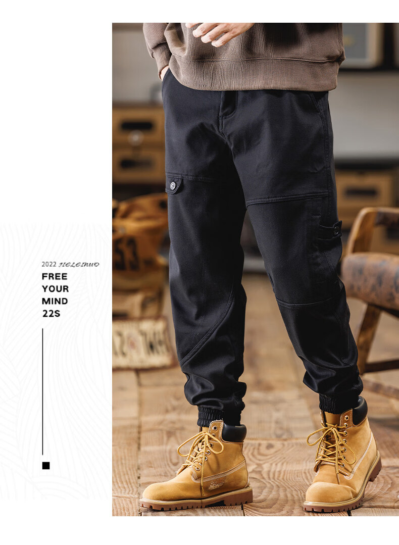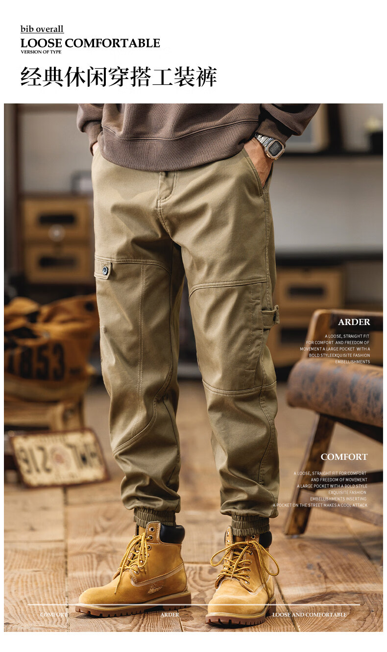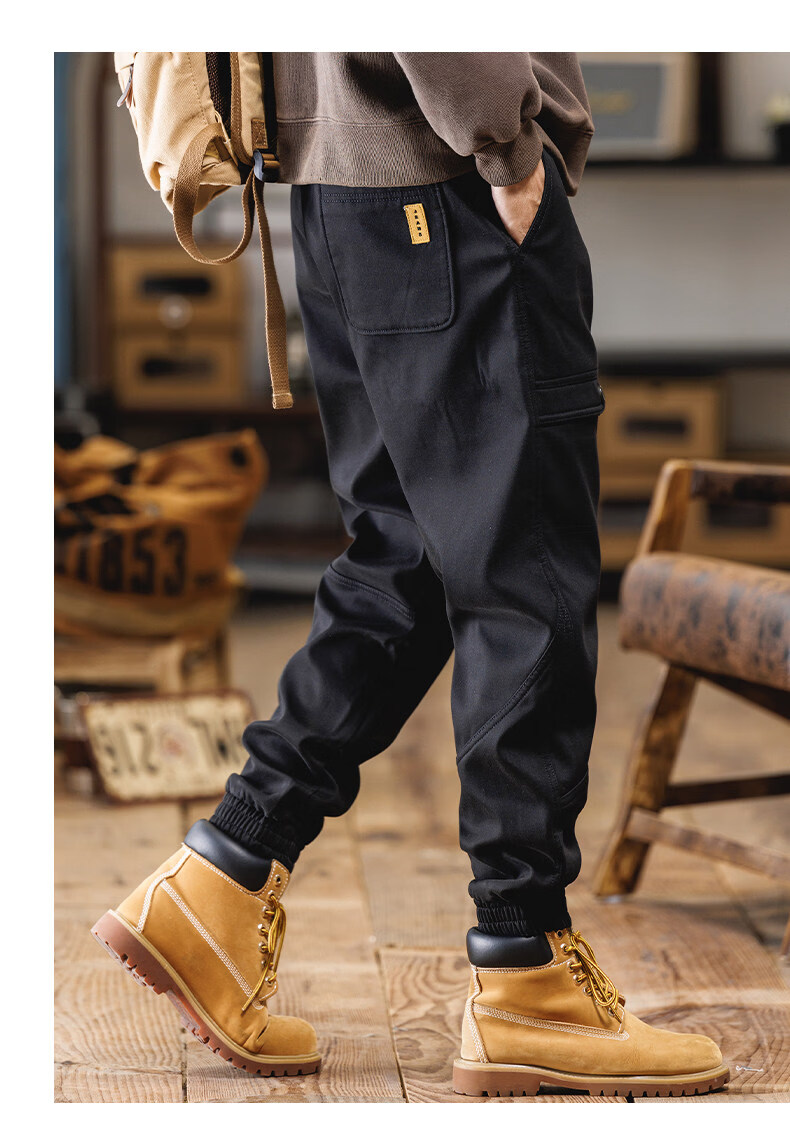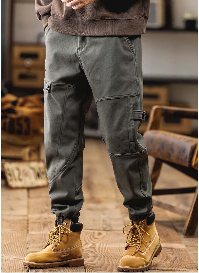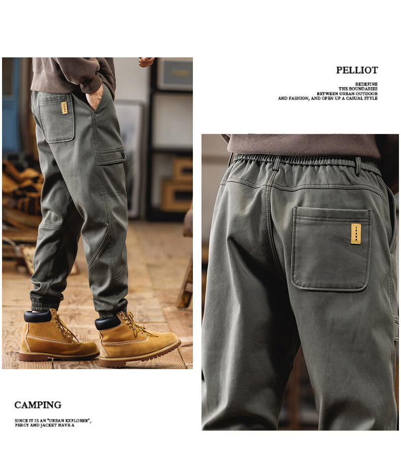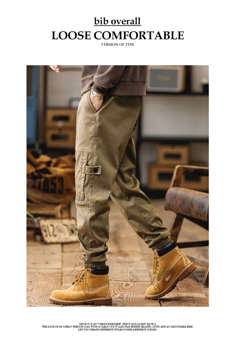 JEEP SPIRIT American overalls men's 2025 autumn and winter new loose velvet thickened casual pants retro men's trousers black winter velvet 4XL (180-200Jin Jin equals 0.5 kg)
