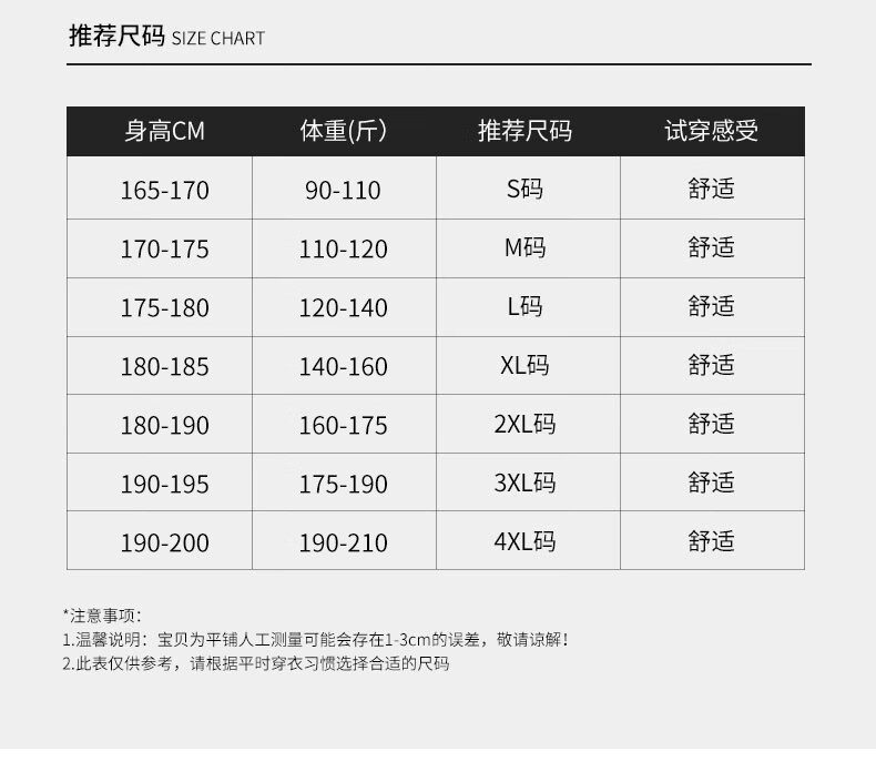 China (cm) 165 / 88-90 170 / 96-98 175 / 108-110 180 / 118-122 185 / 126-130