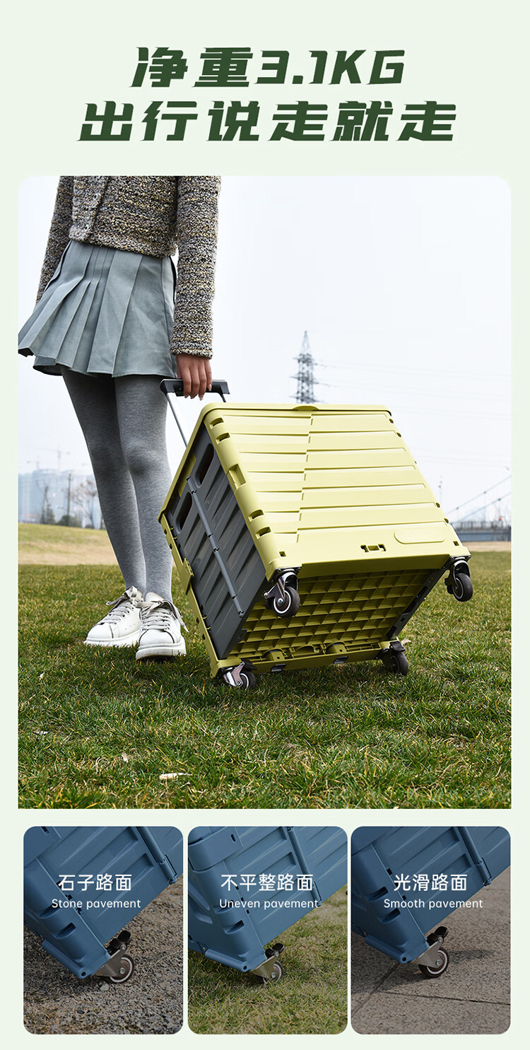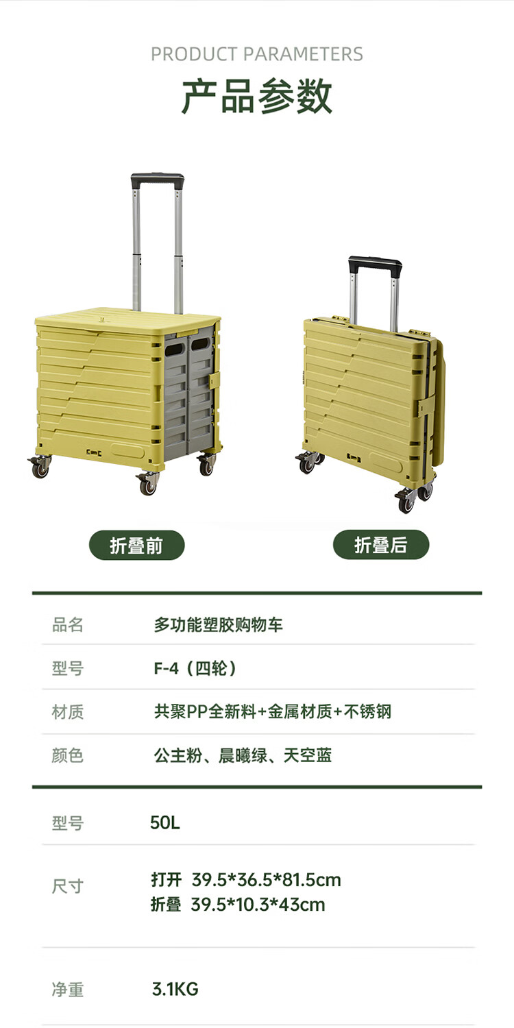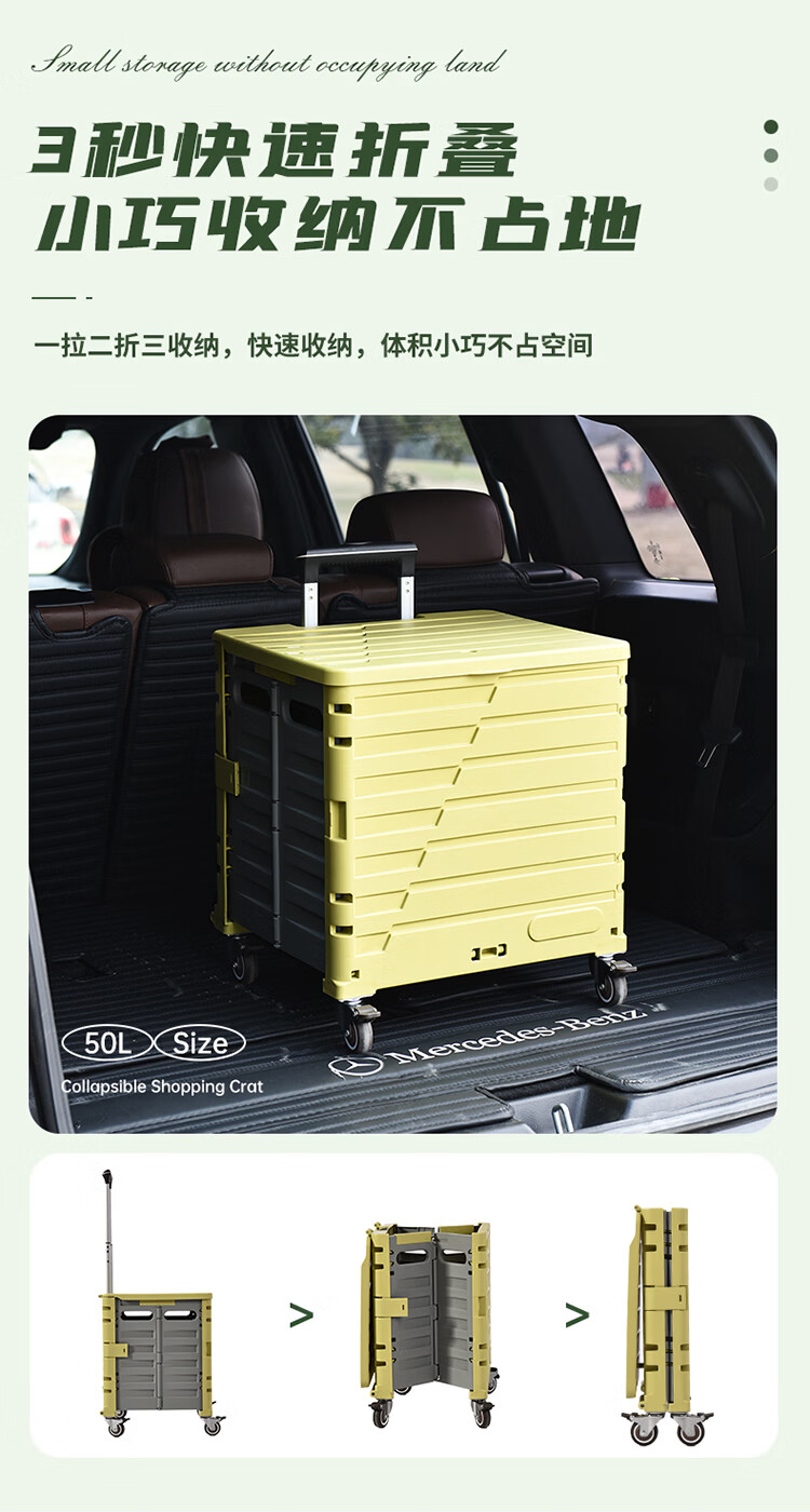 Yusenyi vegetable shopping cart, portable folding shopping cart, courier cart, travel trolley, Yunchuhuang 50L, upgraded and thickened, four-wheel silent universal wheels, load bearing 150