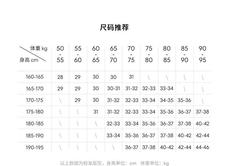 China (cm) 160-165/84-86 165-170 / 88-90 167-172 / 92-96 168-173 / 98-102 170-176 / 106-110