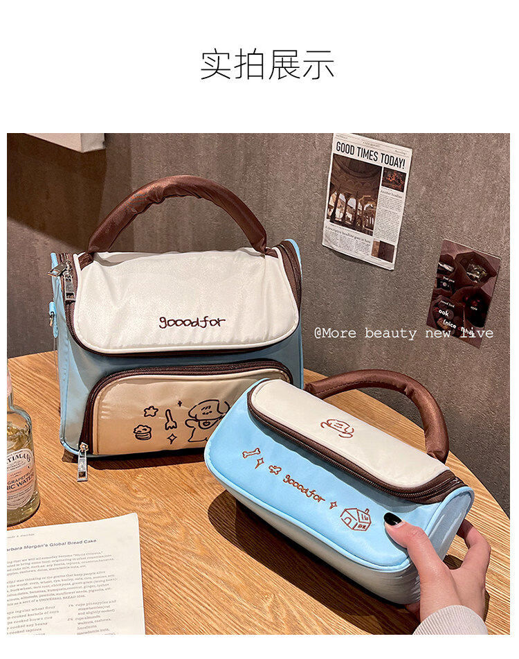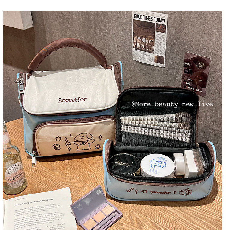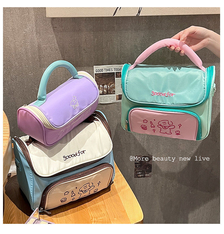 Yusenyi bag women's large capacity portable travel skin care product partition storage bag large mint green double bag combination