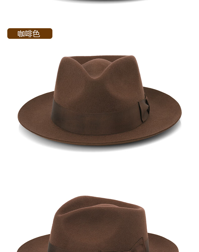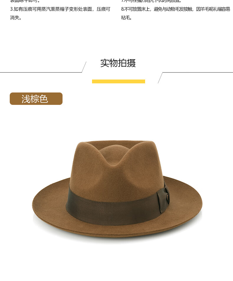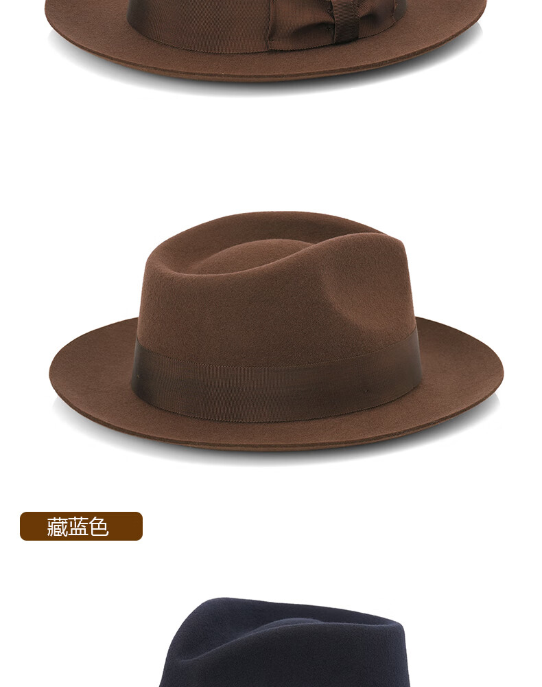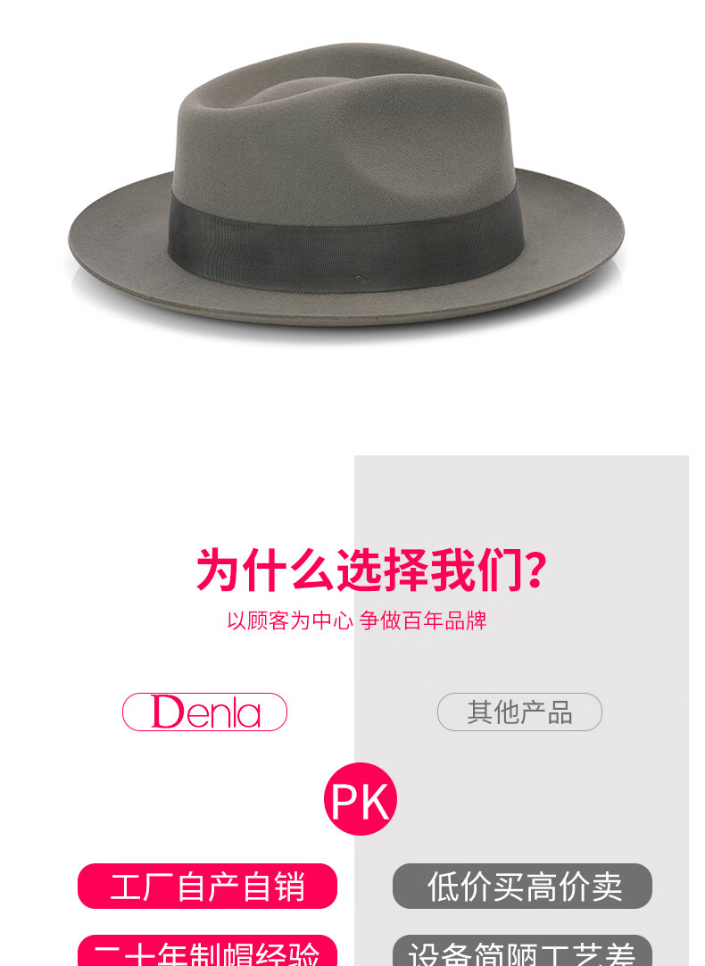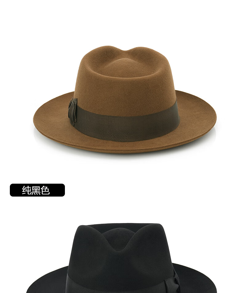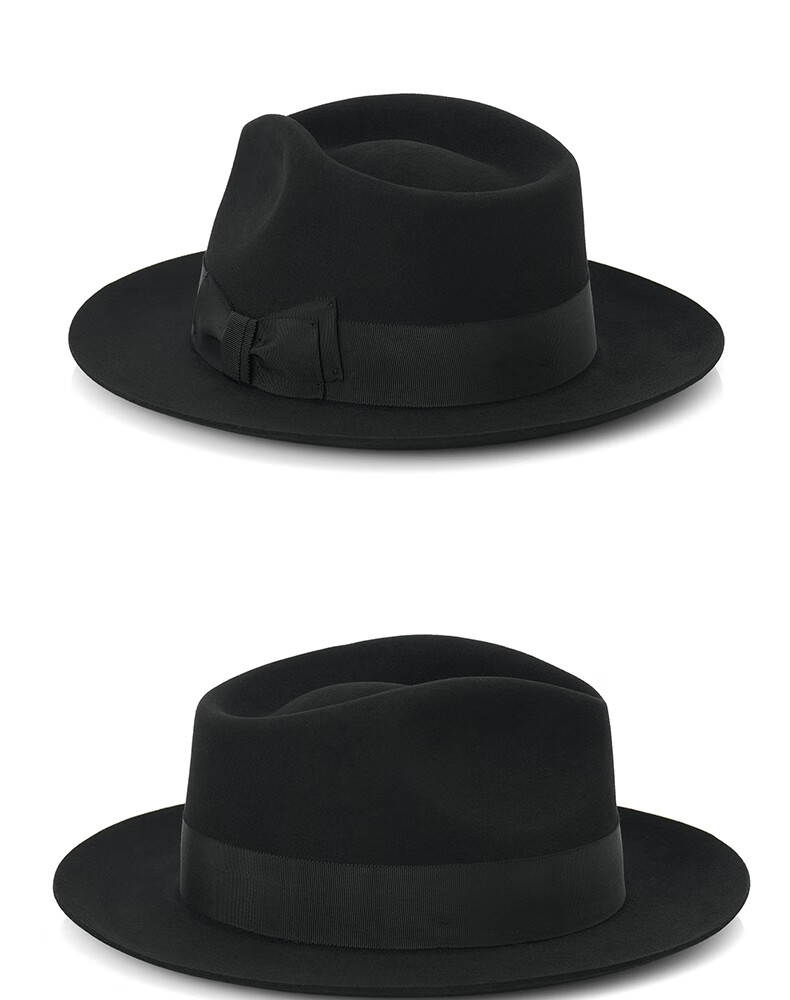 ZNMW denla autumn and winter casual all-match hat pure wool fashion gentleman hat women's big brim British jazz black S (54-55CM)