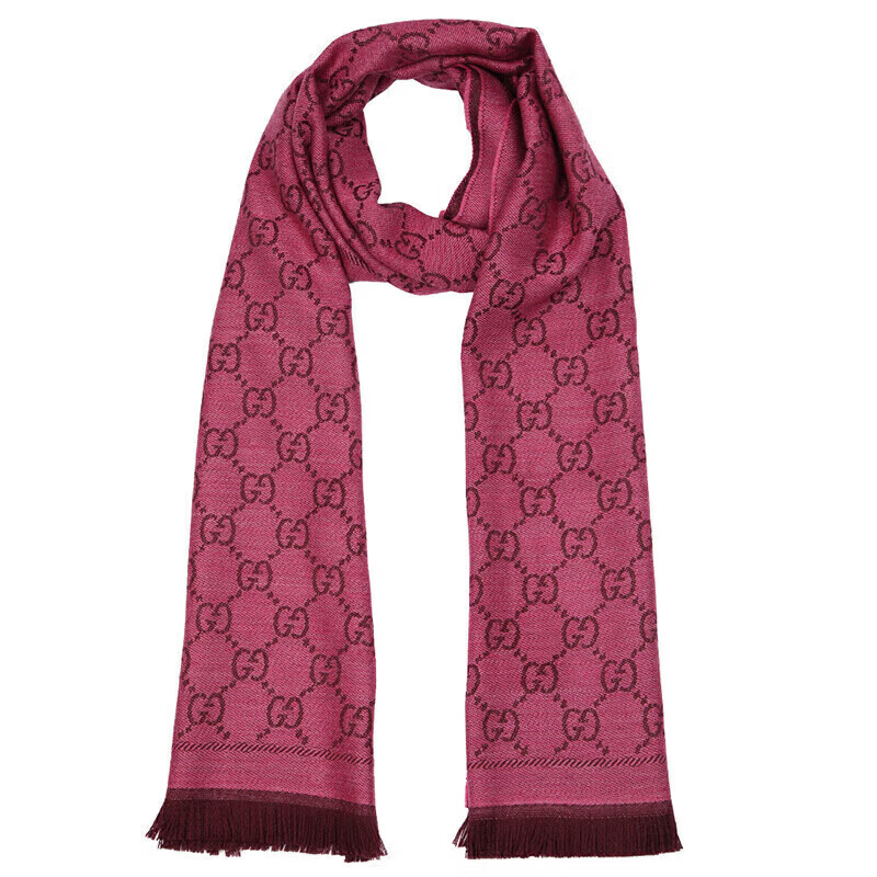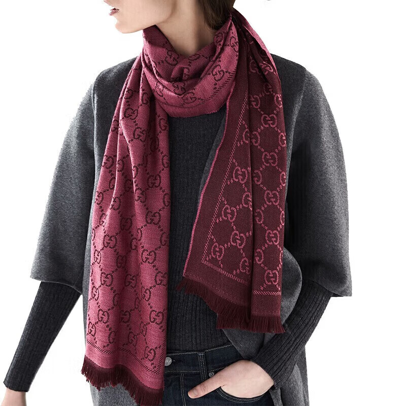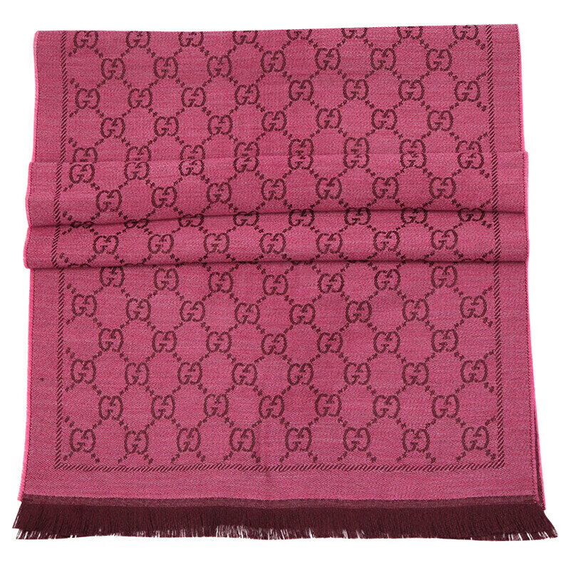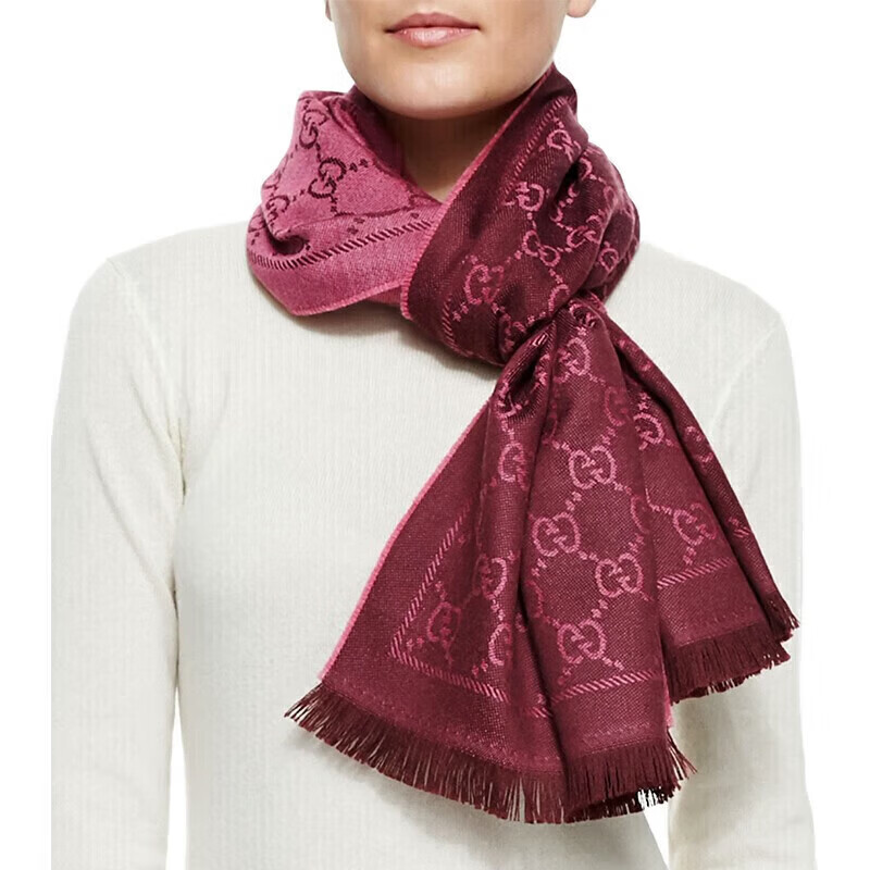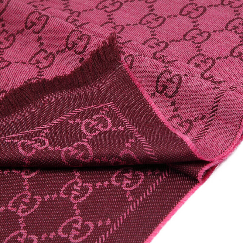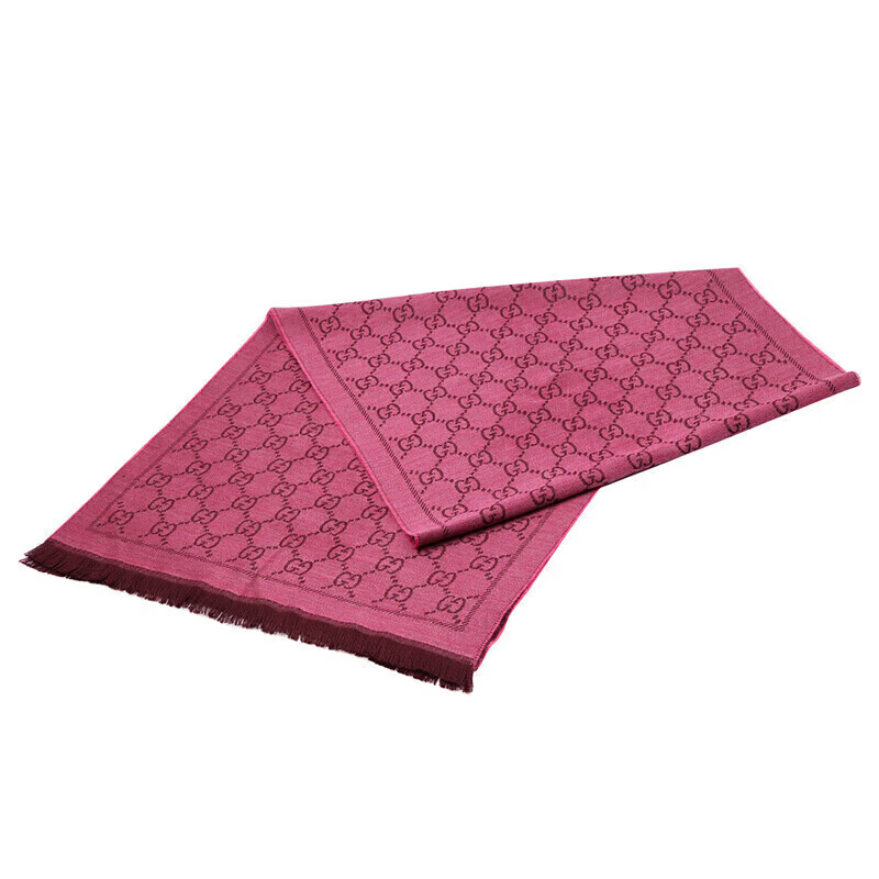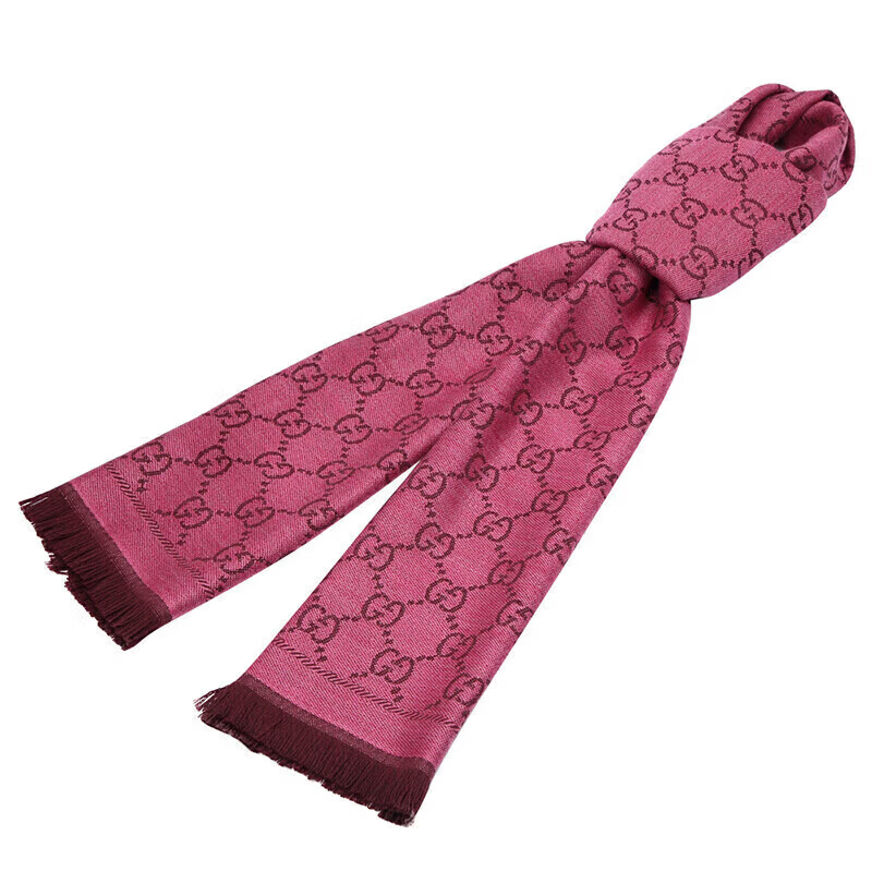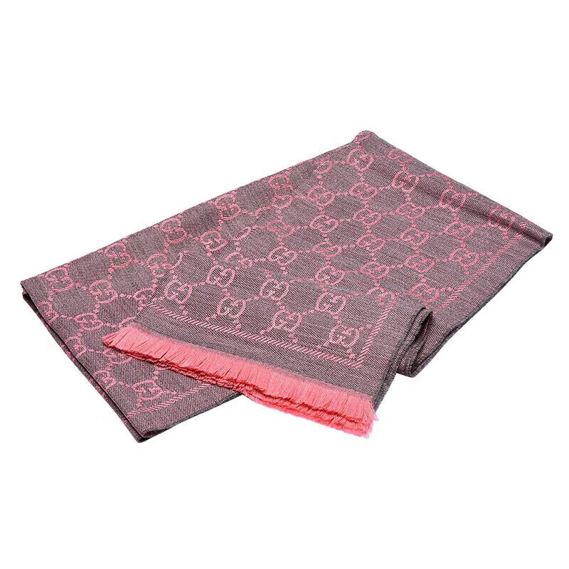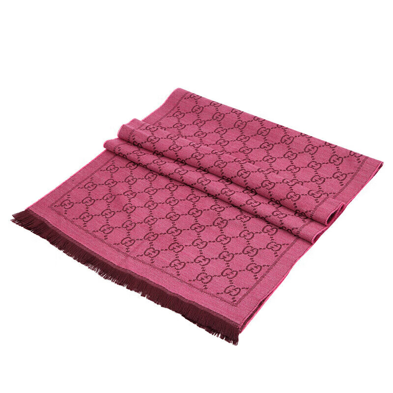 Gucci (GUCCI) Fashion Women's GG Jacquard Scarf Double G Wool Tassel Shawl Knitted Scarf New Year's Gift Pink Gray 133483(1272) One Size Size 180*48cm