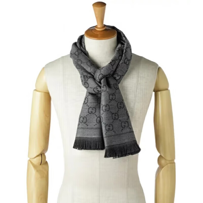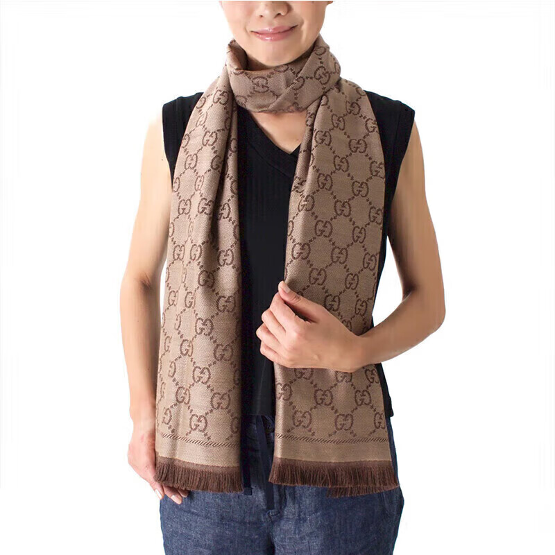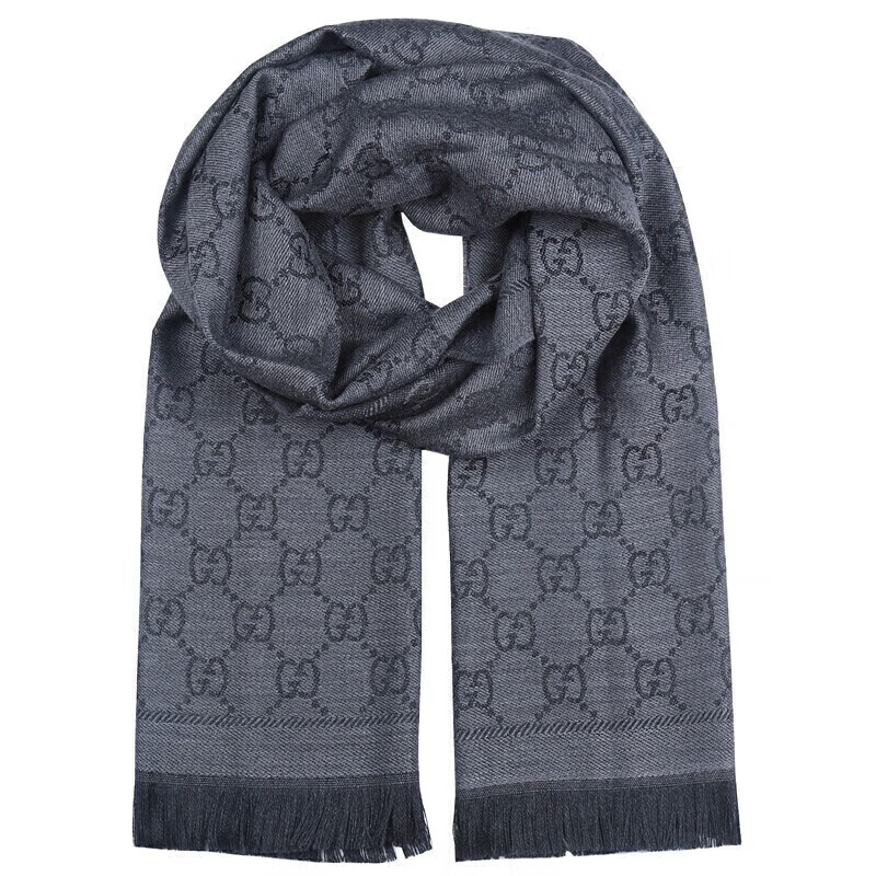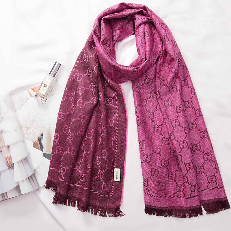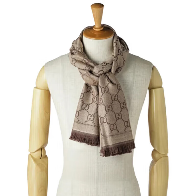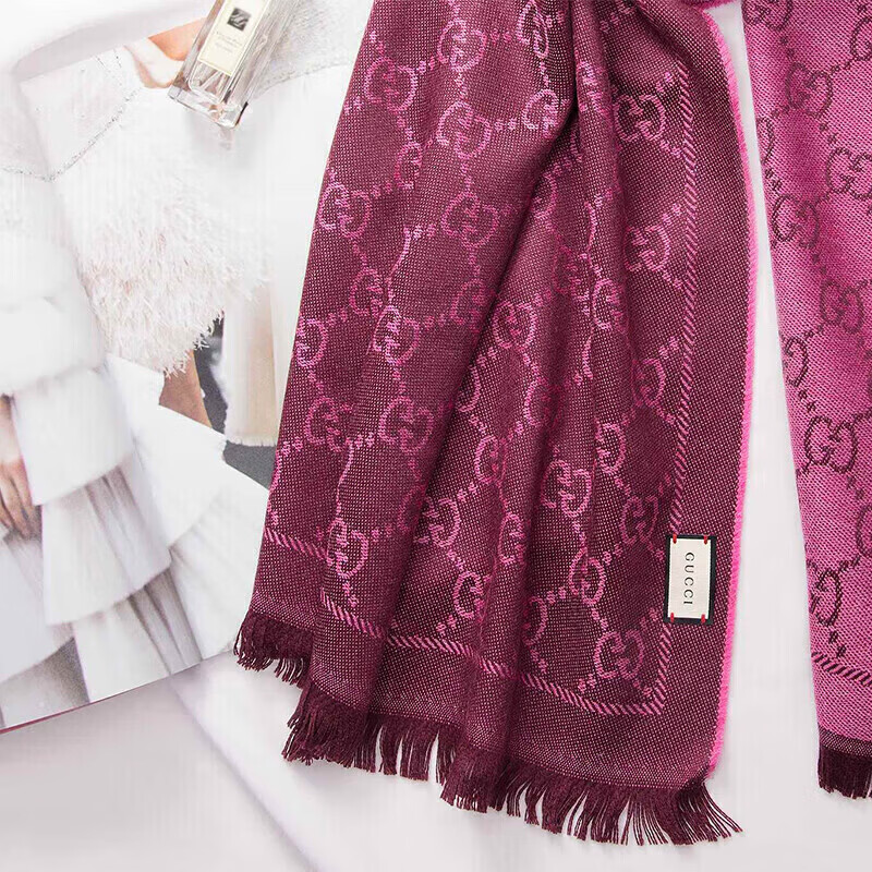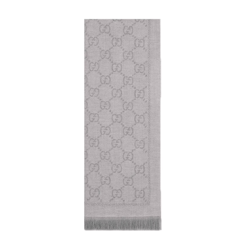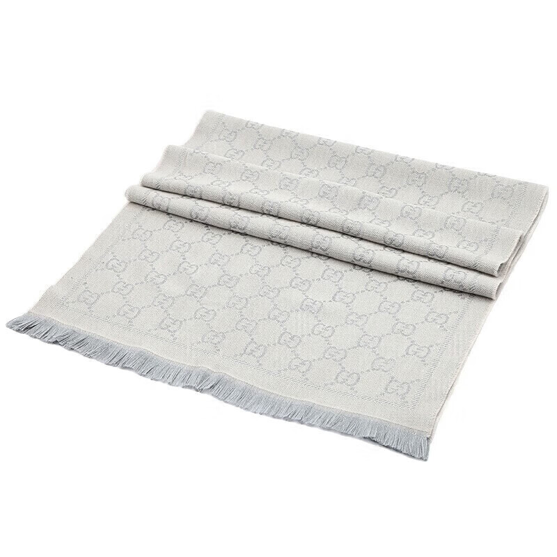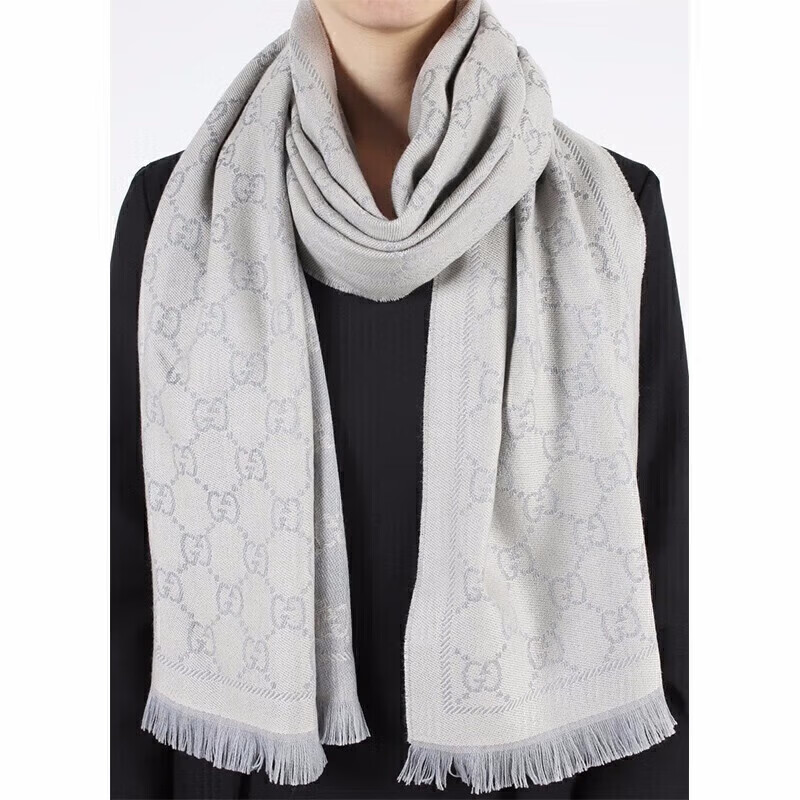 Gucci (GUCCI) Fashion Women's GG Jacquard Scarf Double G Wool Tassel Shawl Knitted Scarf New Year's Gift Pink Gray 133483(1272) One Size Size 180*48cm