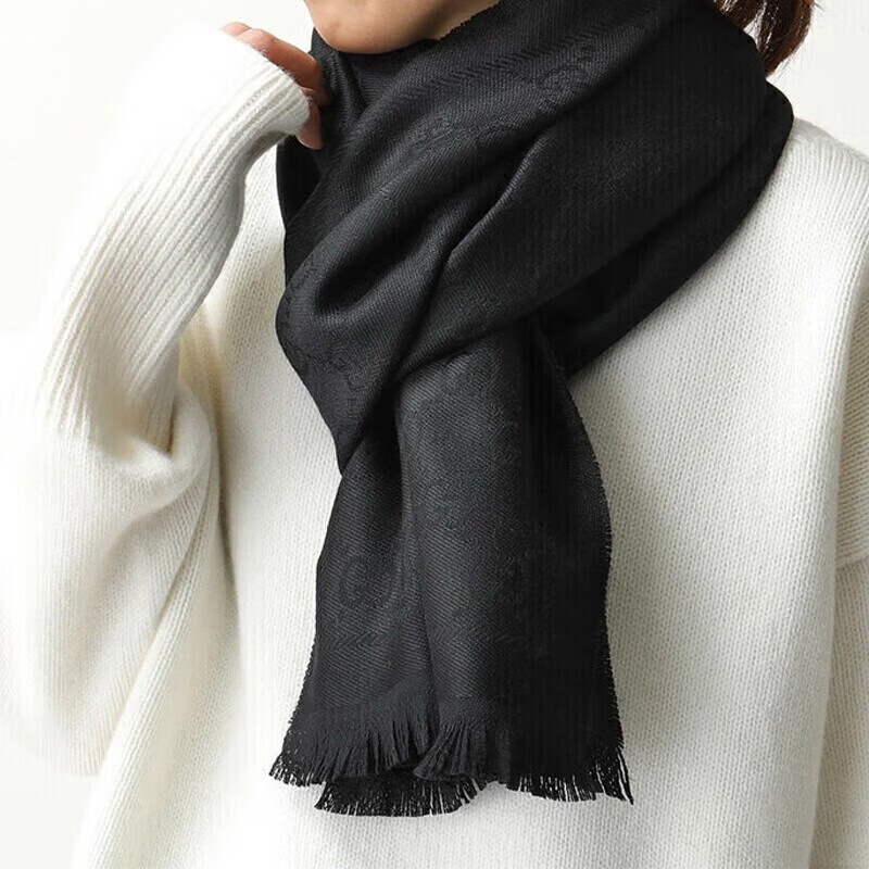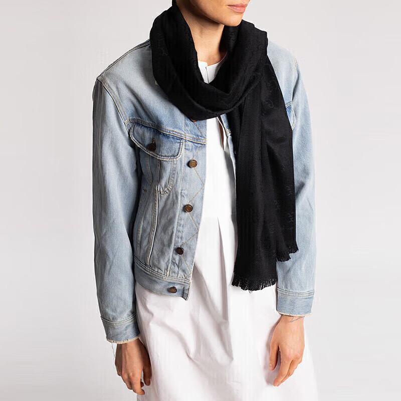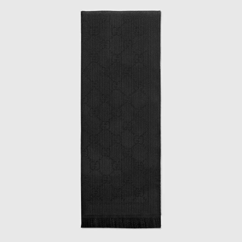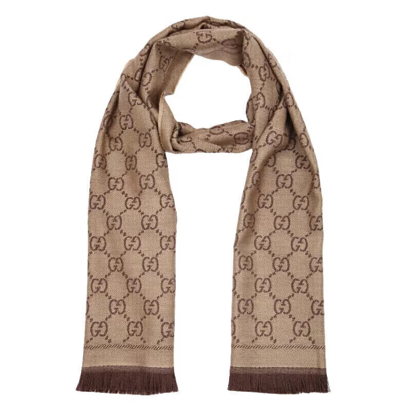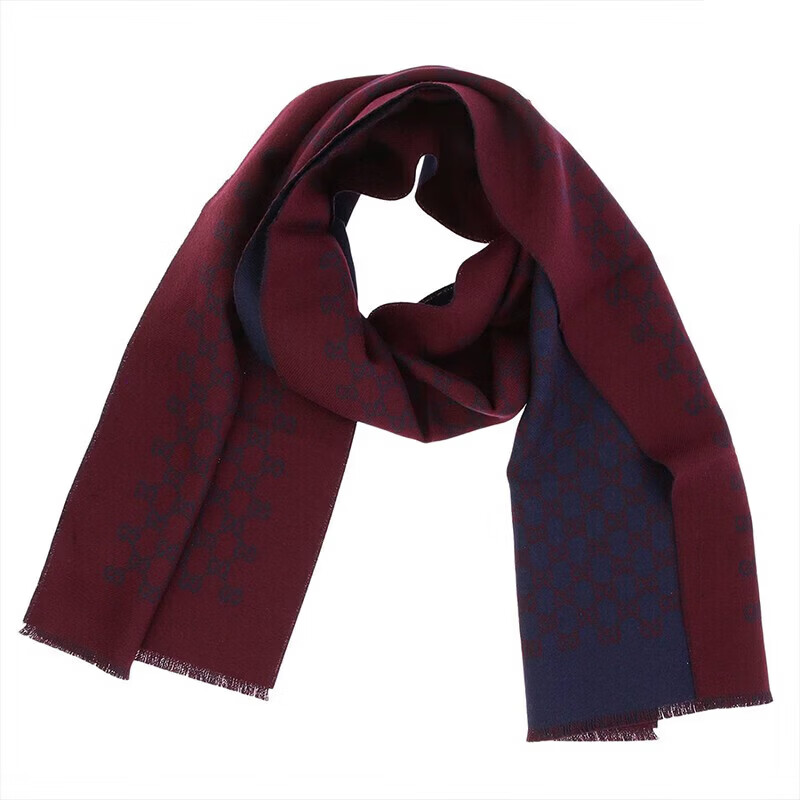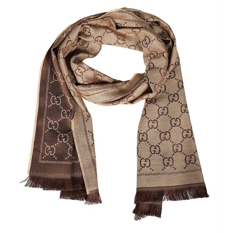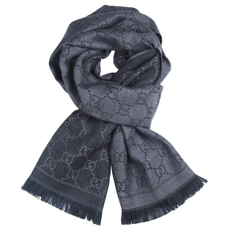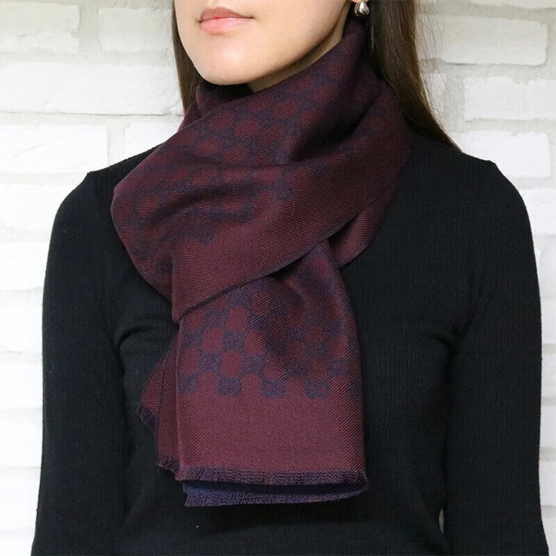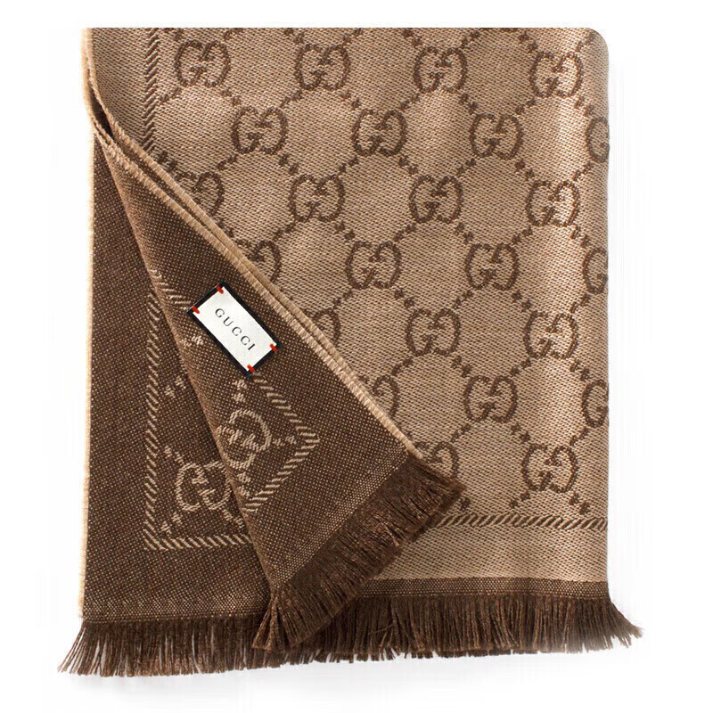 Gucci (GUCCI) Fashion Women's GG Jacquard Scarf Double G Wool Tassel Shawl Knitted Scarf New Year's Gift Pink Gray 133483(1272) One Size Size 180*48cm