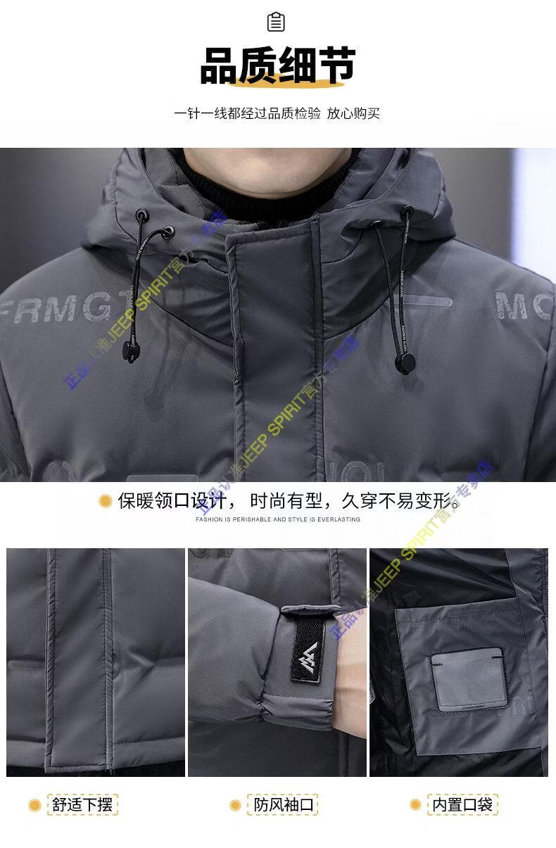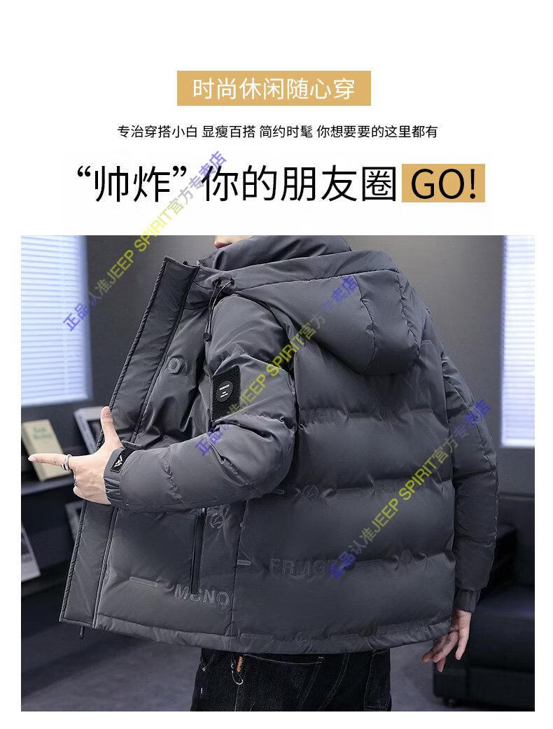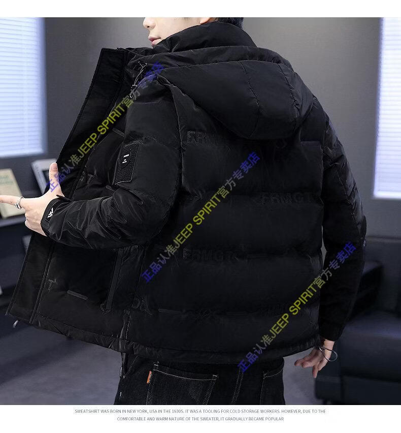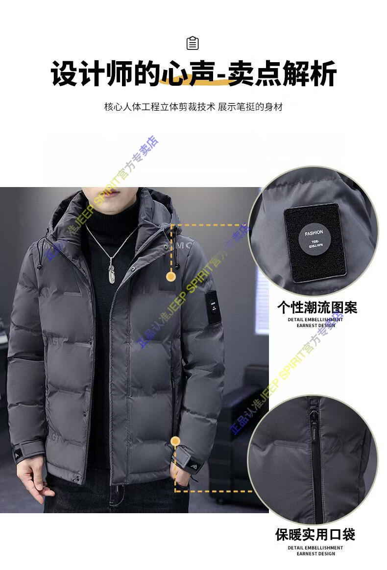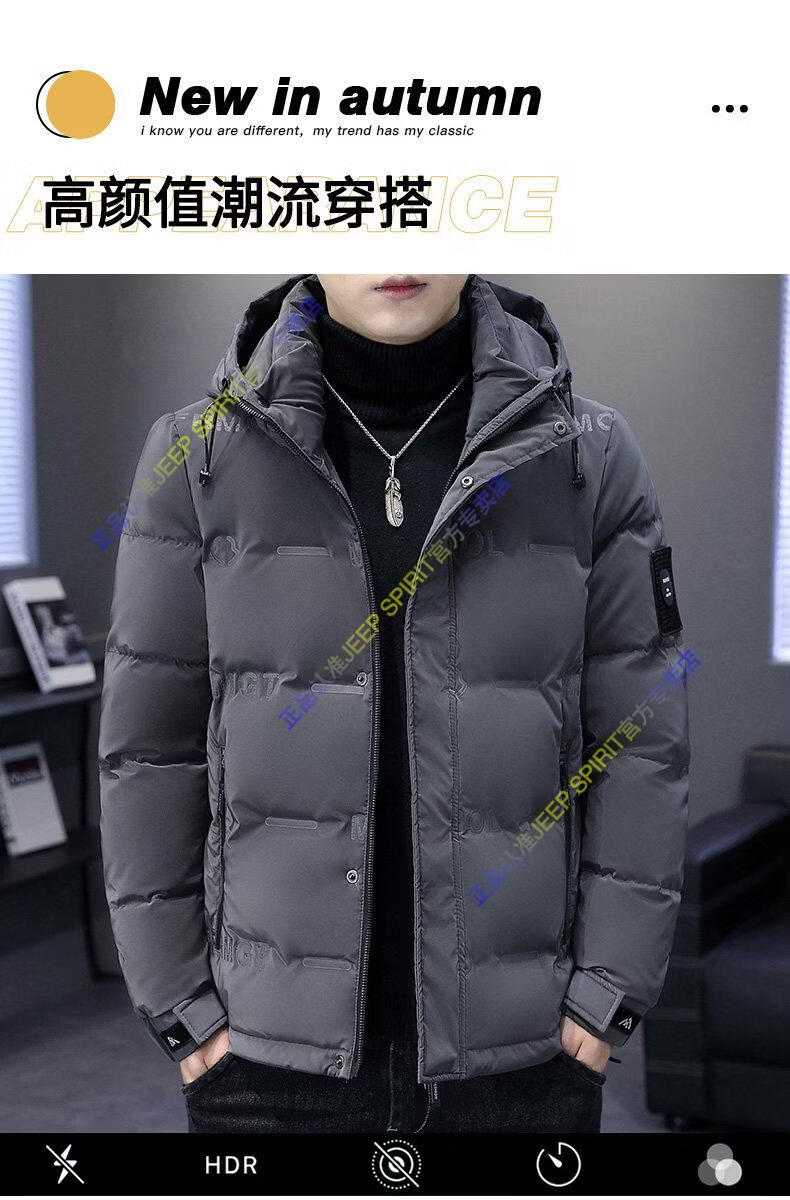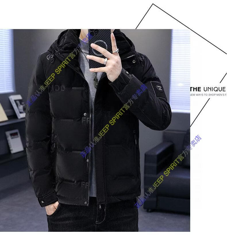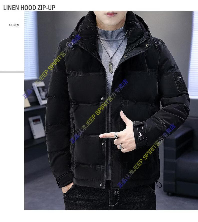 JEEP SPIRIT Jeep Thin Down Jacket Men's 2025 Winter Trend Versatile Warm White Duck Down Thickened Stand Collar Casual Outerwear 215 Black L