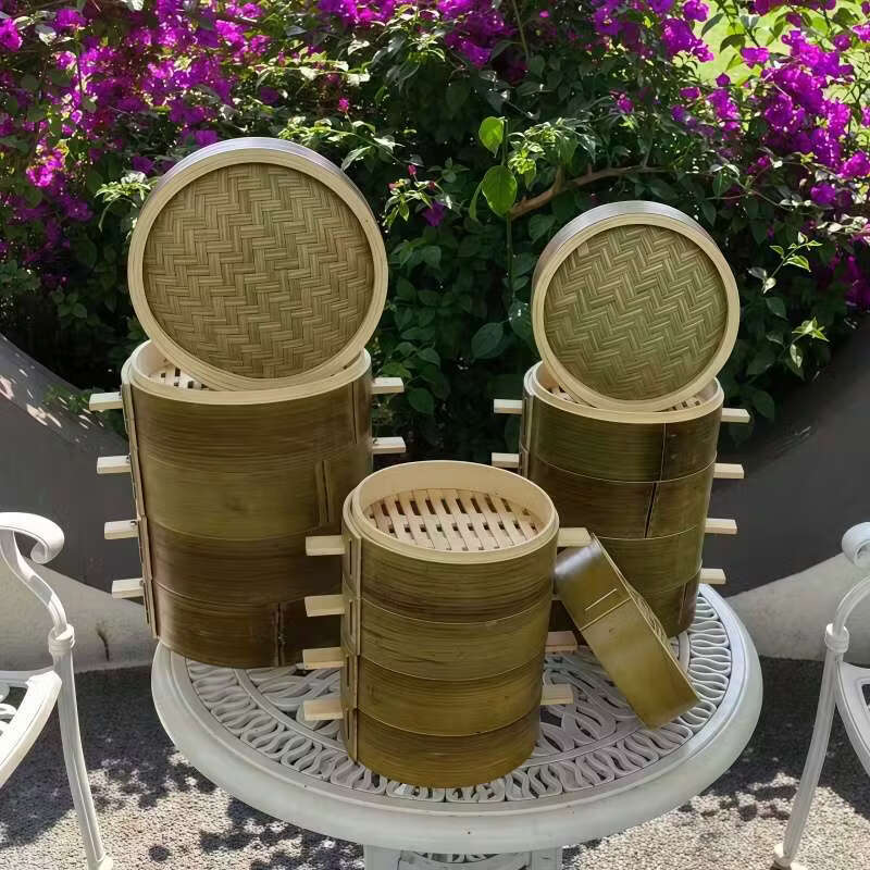 Yusenyi all-bamboo green leather glue-free handmade small steamed bun rack deepens and heightens the bamboo steamer tableware basket household steamer bamboo steamer outer diameter 45 cm 1 cage 1 cover (steaming cloth included)