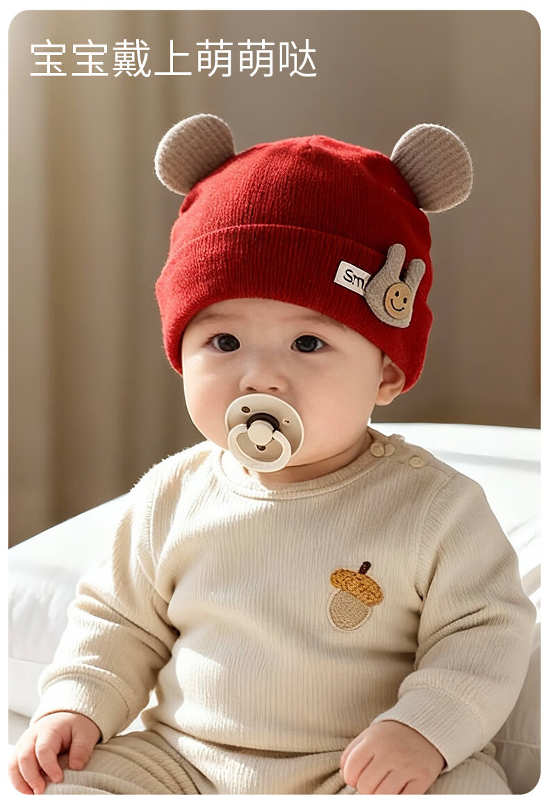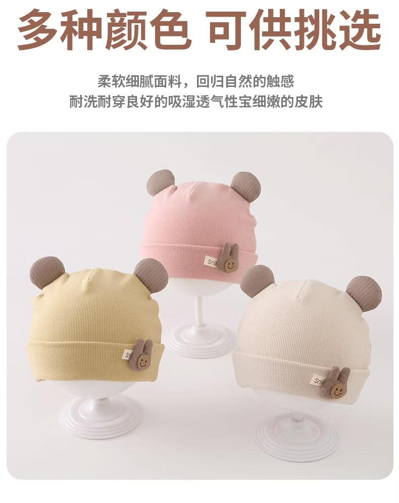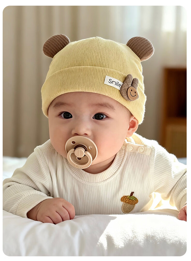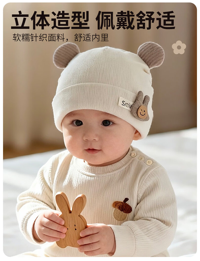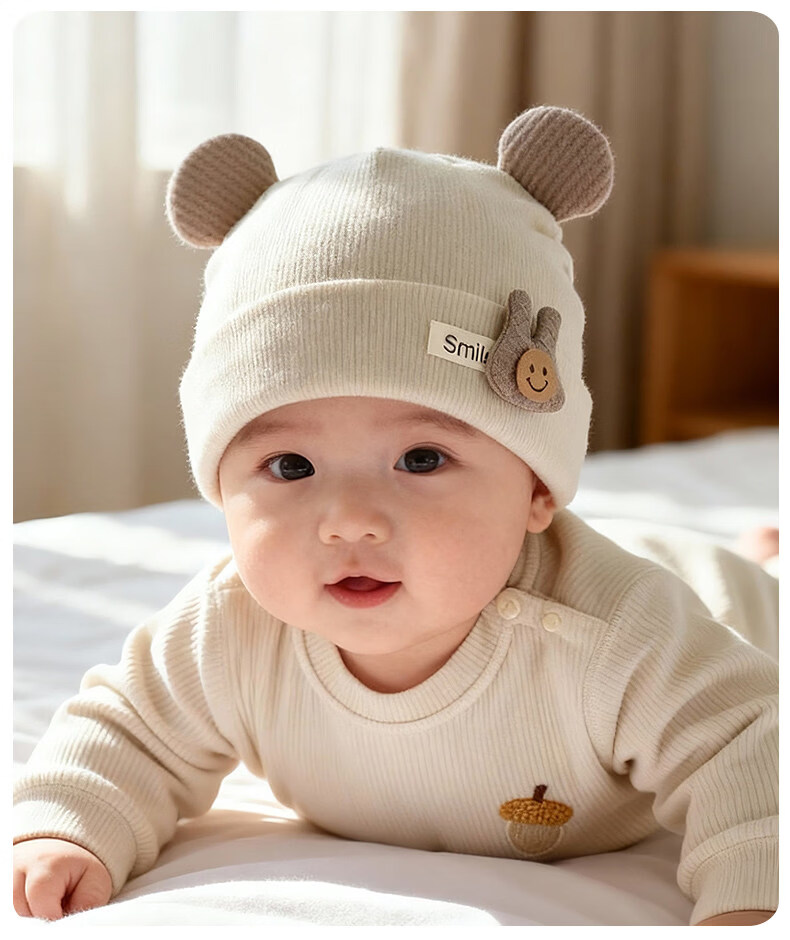 Disney baby hats for autumn and winter, warm and thickened fontanel newborn pure cotton fetal caps for male and female babies, small-month-old pullover hats, SMi rabbit fetal hats, beige, hat circumference 42-46cm/reference age 6-12 months, one size fits all