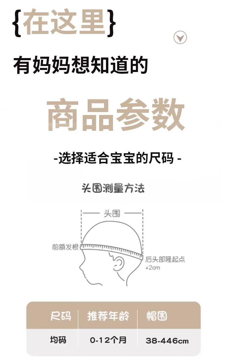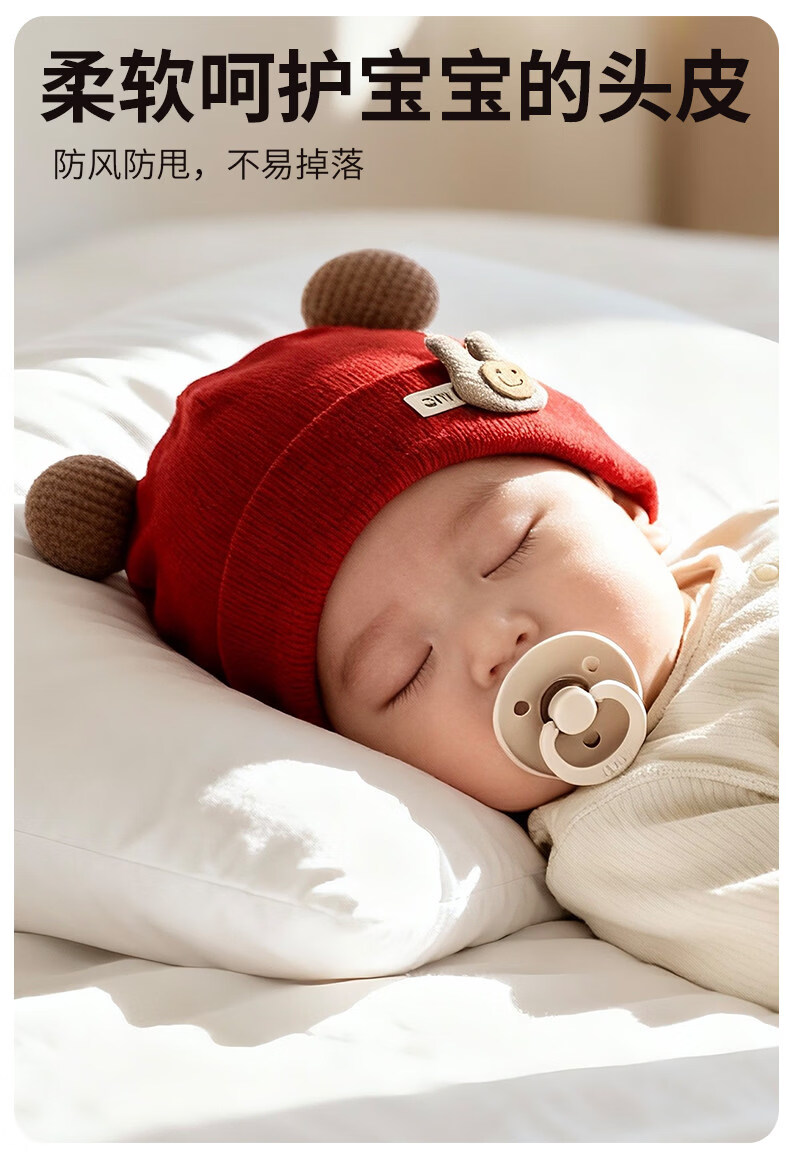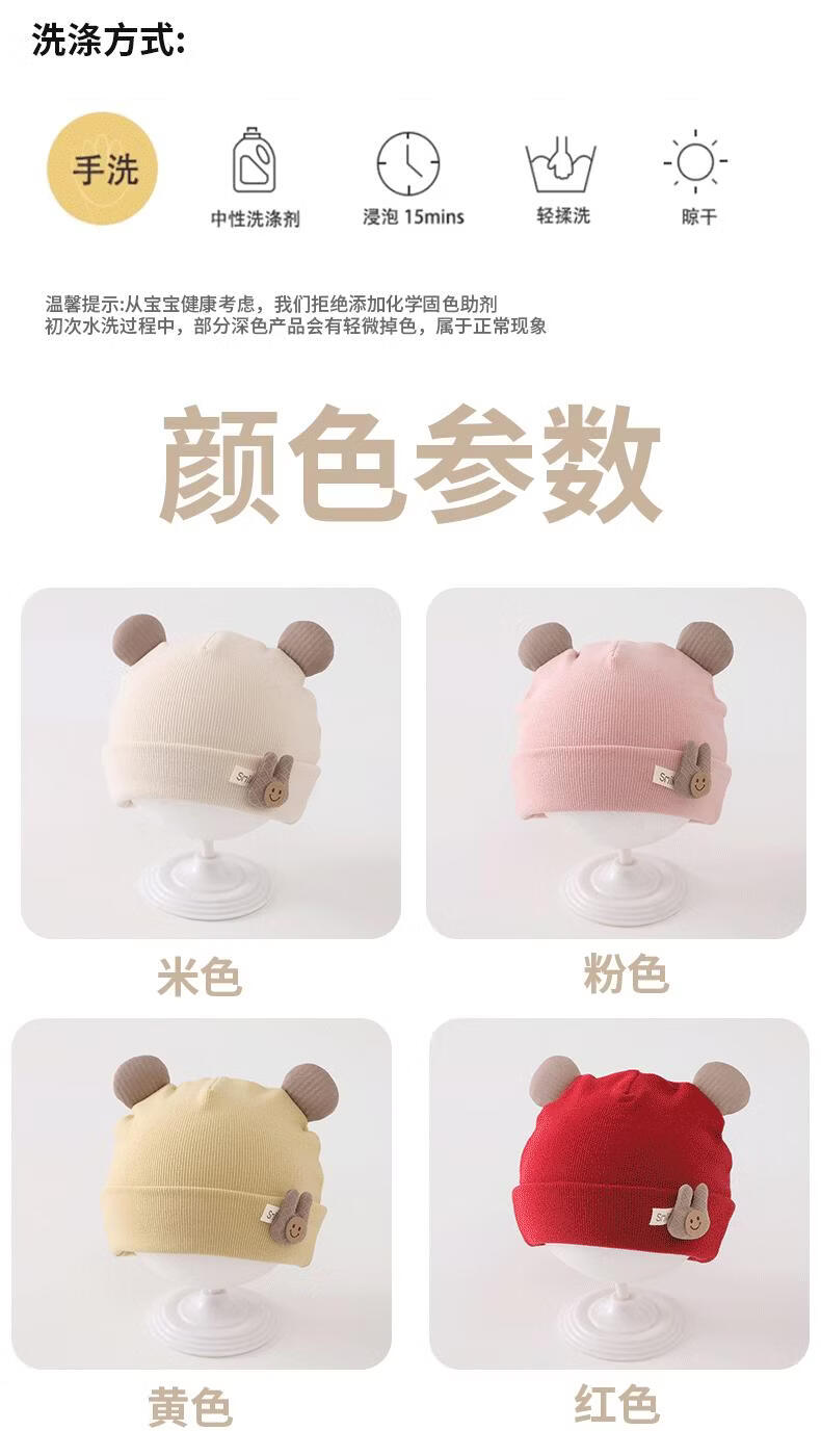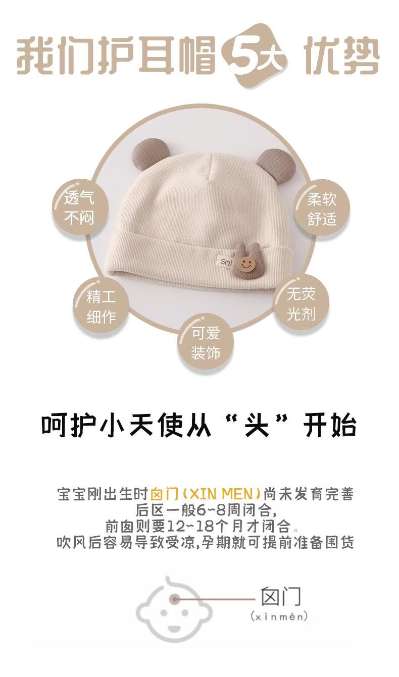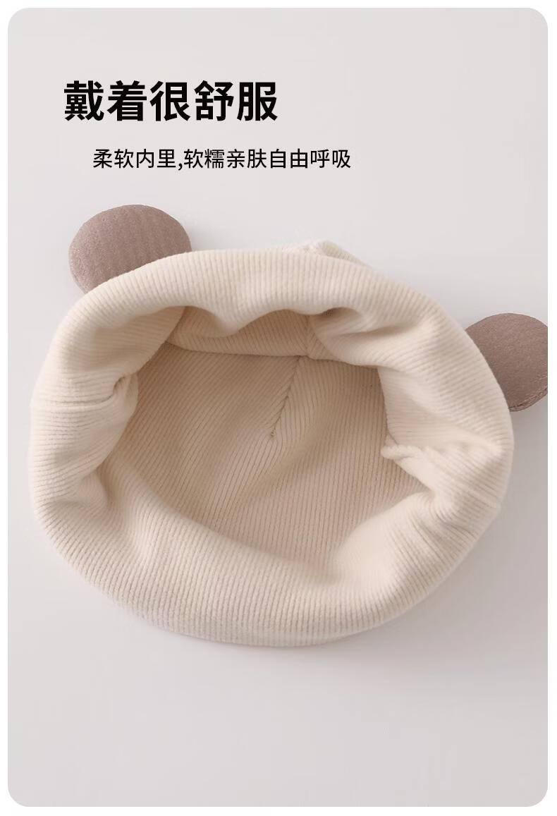 Disney baby hats for autumn and winter, warm and thickened fontanel newborn pure cotton fetal caps for male and female babies, small-month-old pullover hats, SMi rabbit fetal hats, beige, hat circumference 42-46cm/reference age 6-12 months, one size fits all