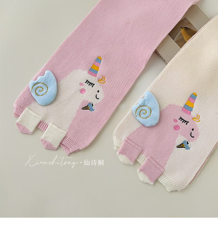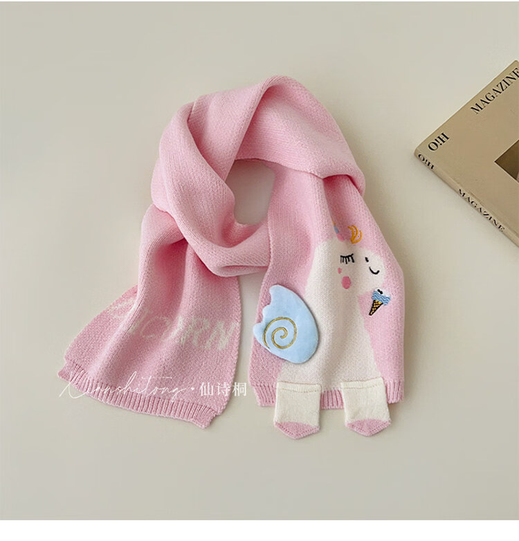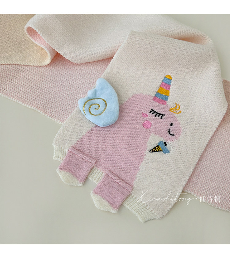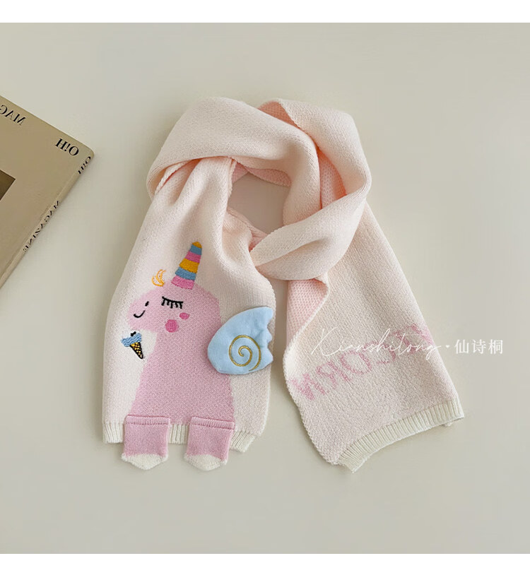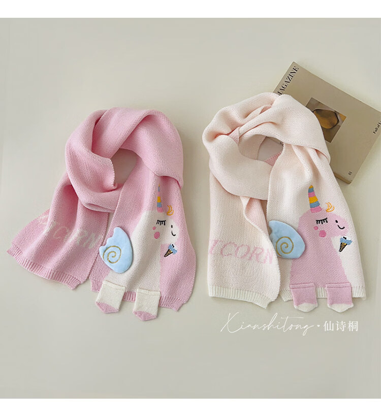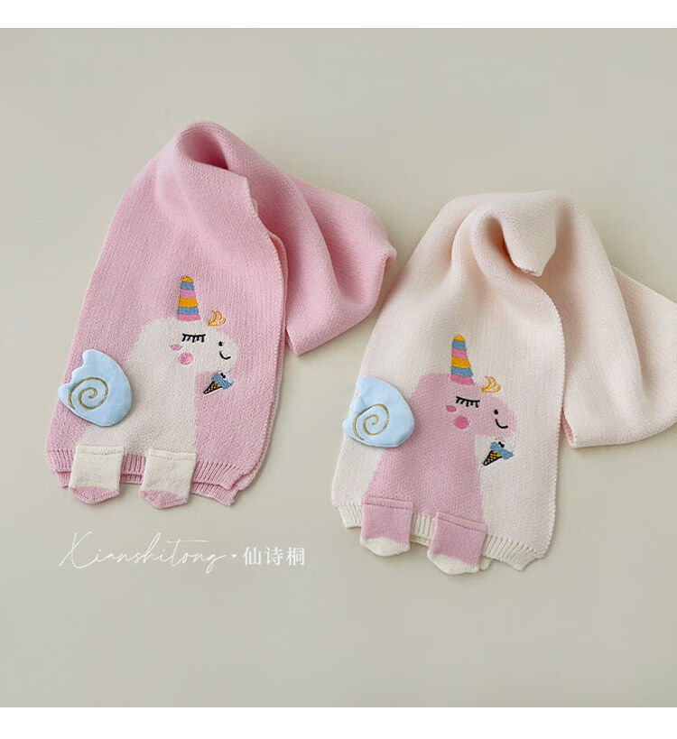 Disney baby scarf autumn and winter cartoon unicorn knitted neck warmer for children winter windproof cute girls neck scarf beige 2-12 years old