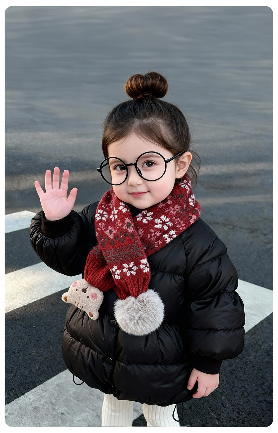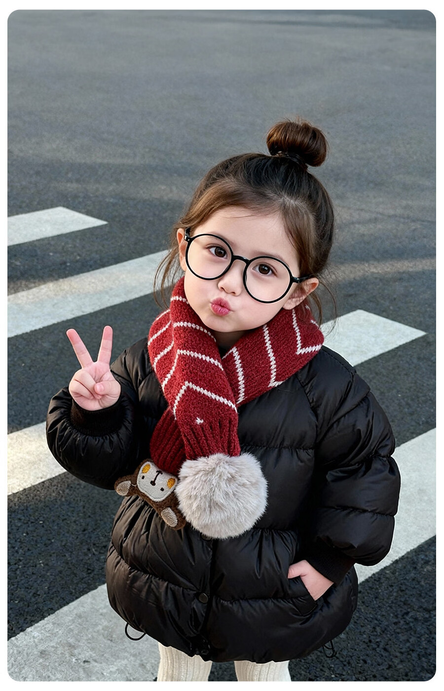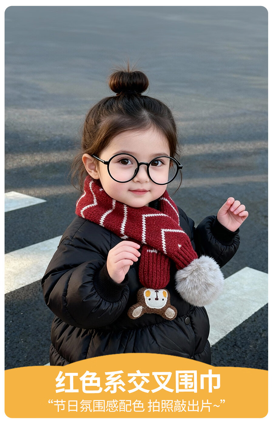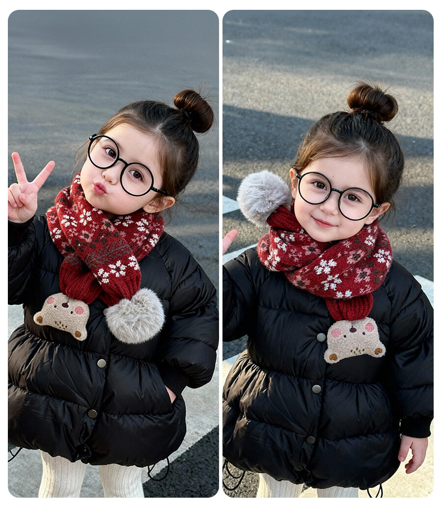 HAL.DUCK Children's Scarf Girls Winter Baby Scarf Red Fashionable Girls Cross Neck Sleeve Boys Neck Protector Warmth Autumn and Winter 3778-Red Pinstripes About 1-8 years old