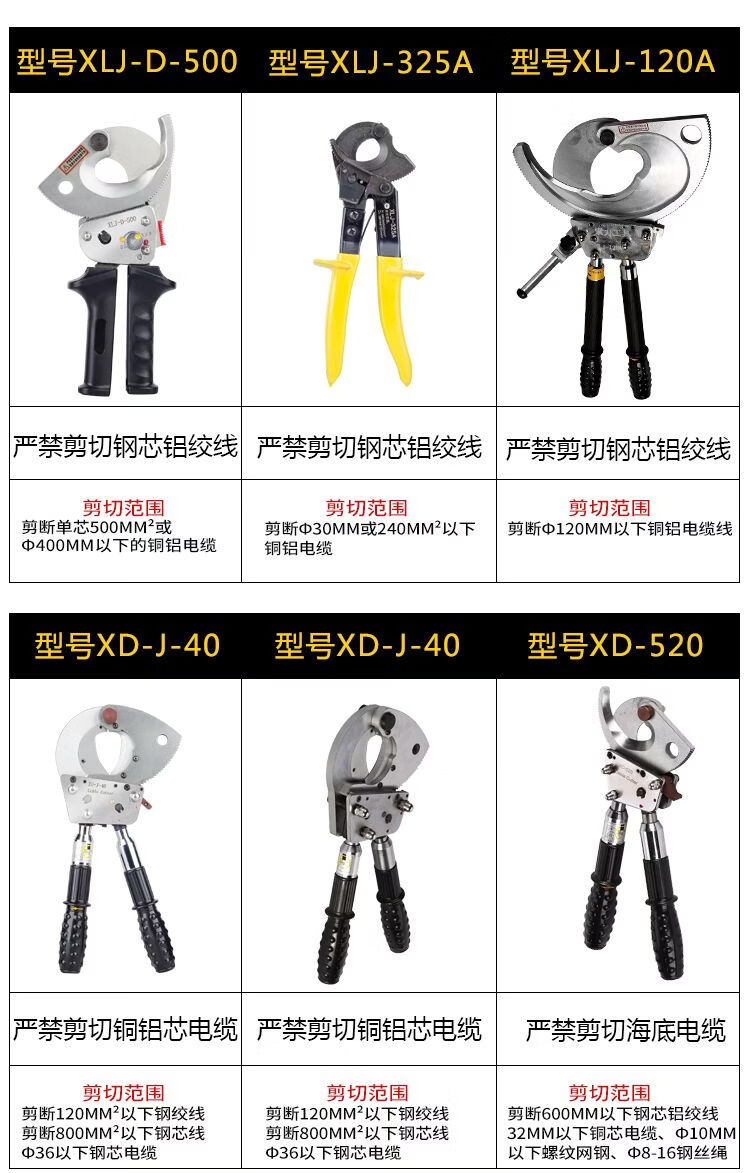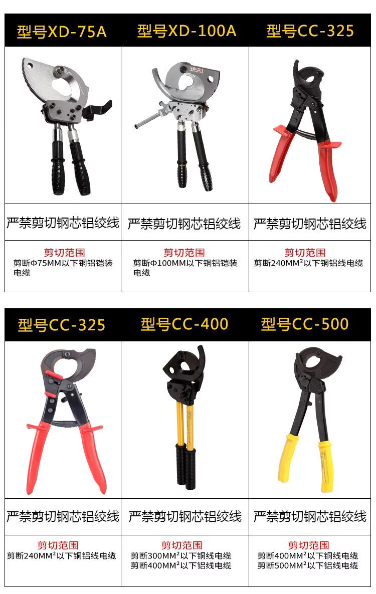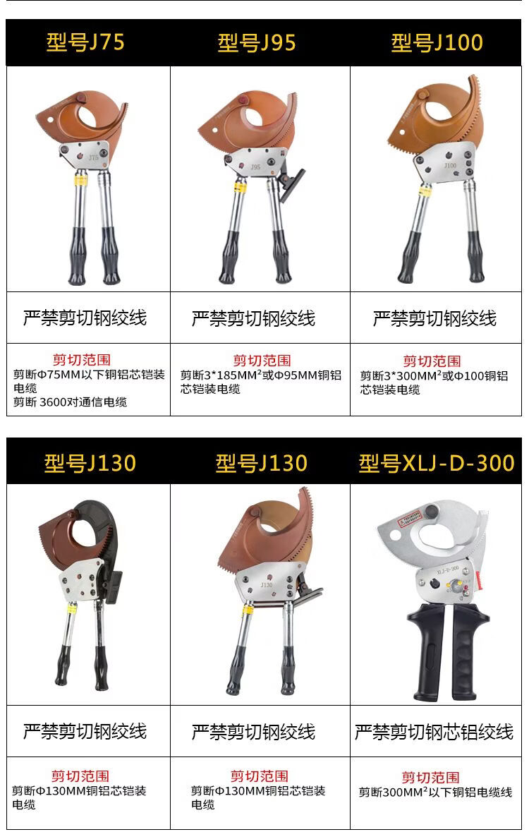 Yusenyi ratchet-type cable scissors J40J52J75J95J100 manual gear steel strand wire cutter cable shear J70 scissors