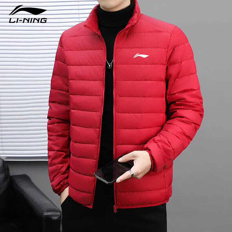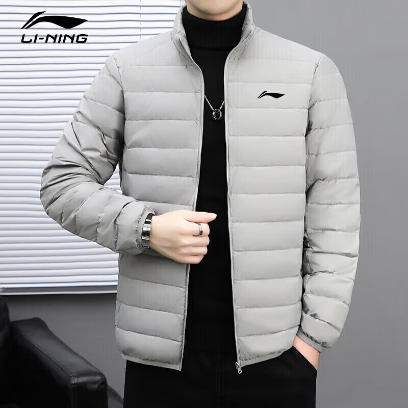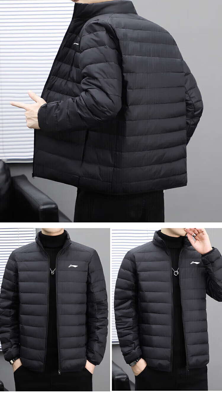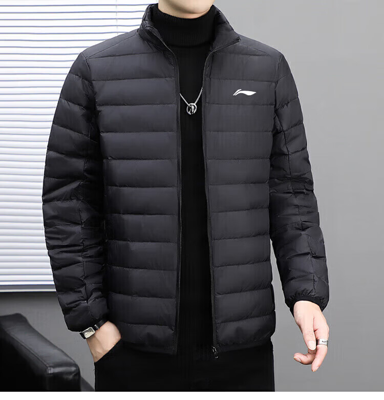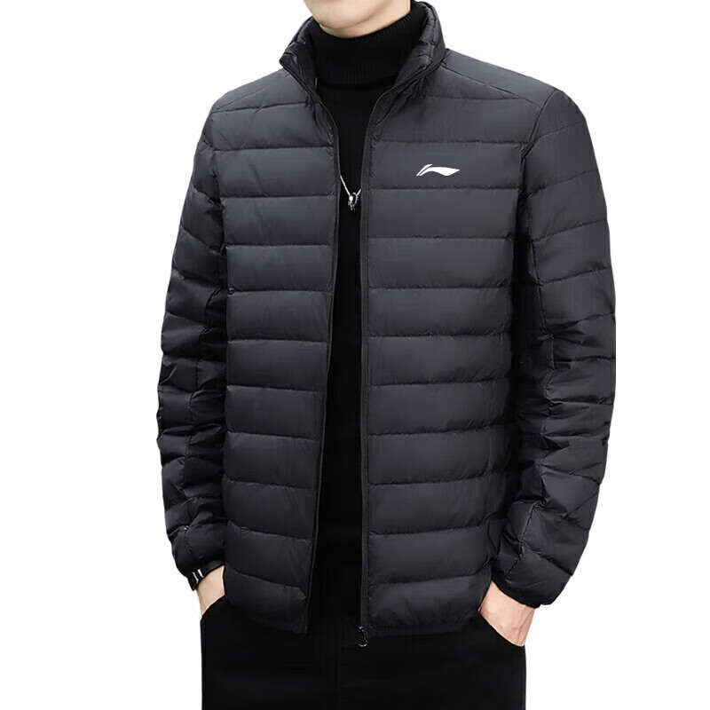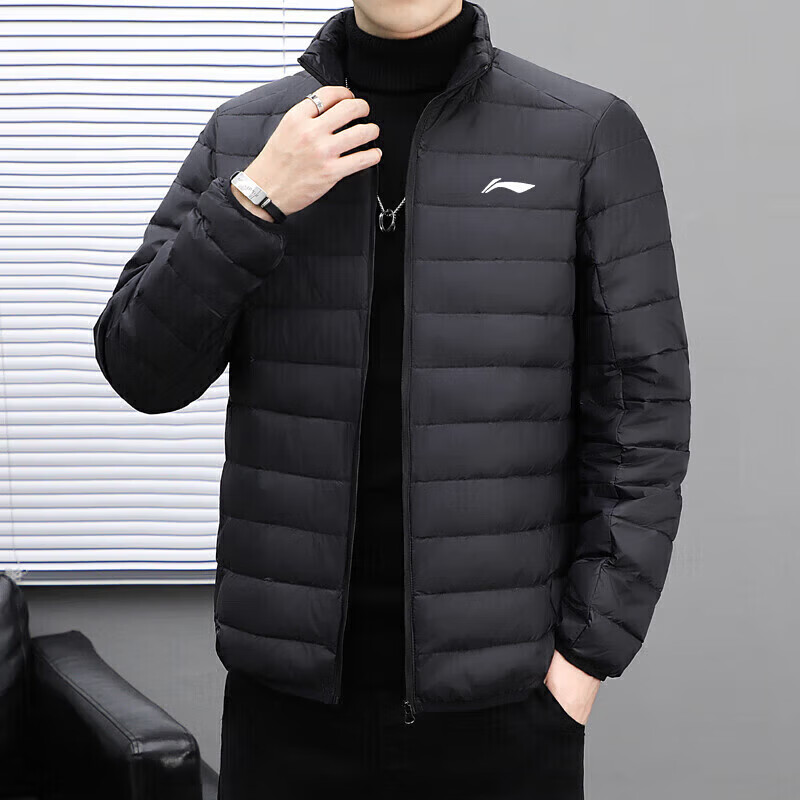 LI-NING SINCE 1990 Li Ning Men's Lightweight Winter New White Duck Down Stand Collar Jacket Outdoor Sports Short Clothing Men Black M 95115Jin Jin is equal to 0.5 kg